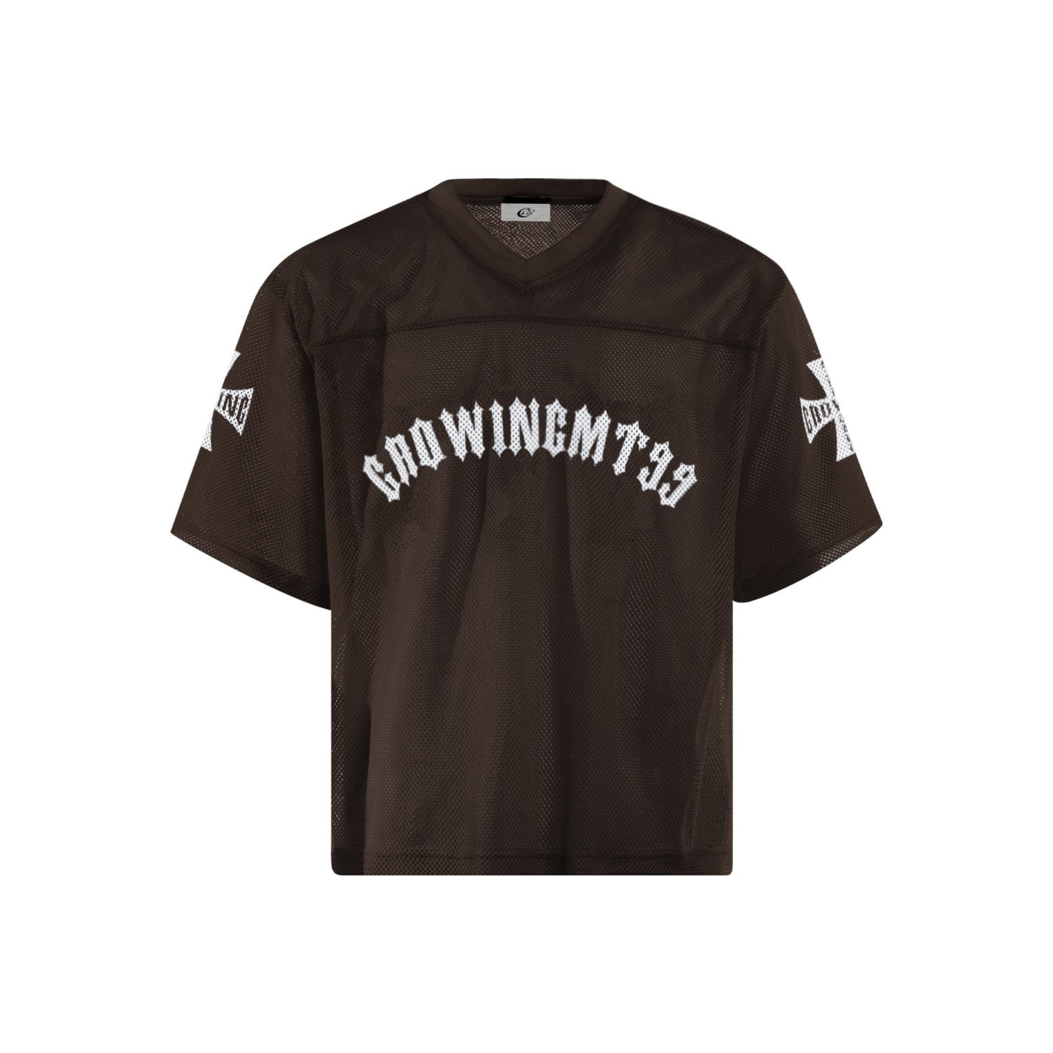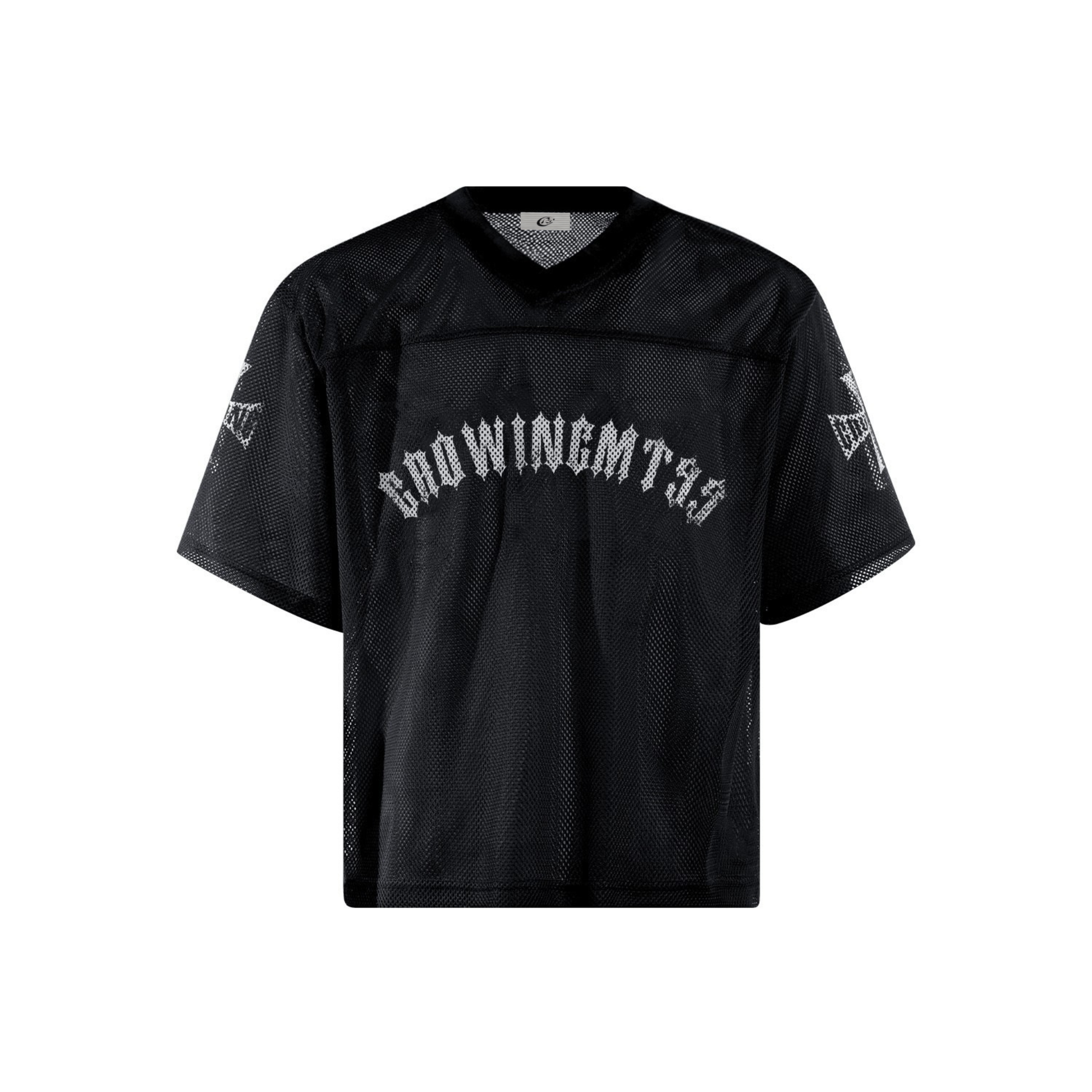 The Omirad Mesh Graphic Jersey Tee brings bold street energy through a breathable 100% polyester mesh build. The oversized fit pairs with gothic-style front lettering and a striking cross graphic on the back for a strong visual statement. Patch-style prints on the sleeves complete the look, giving this jersey a perfect balance of comfort, airflow, and attitude.