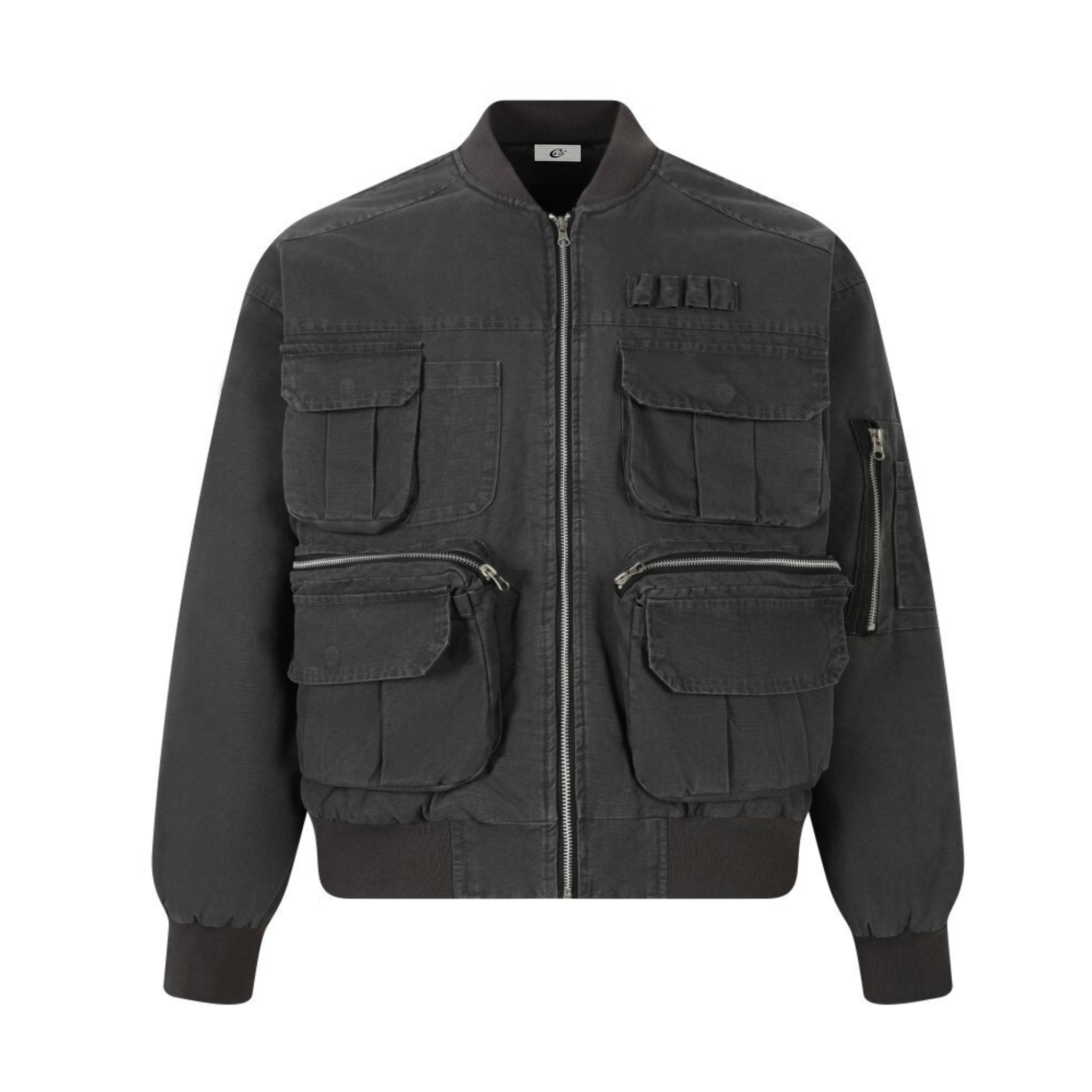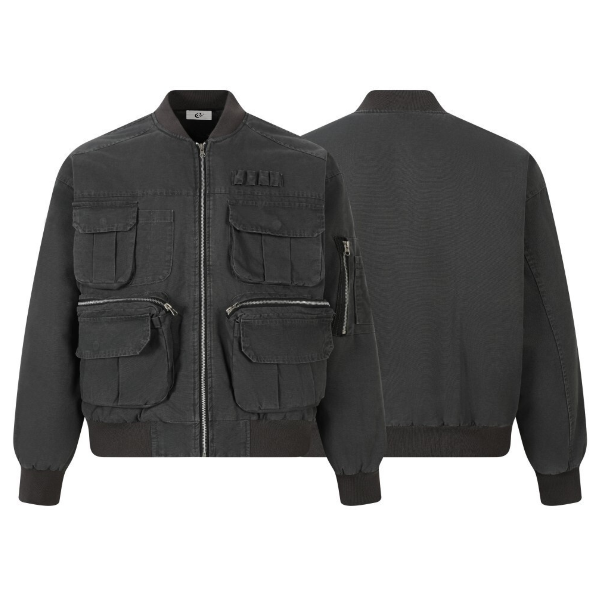 The Omirad Utility Pocket Bomber Jacket channels a rugged, tactical streetwear vibe. Made from durable cotton fabric, it features a multi-pocket front design with both flap and zip compartments for functional storage. Ribbed cuffs and hem enhance comfort and shape retention, while the classic bomber silhouette keeps it versatile for everyday wear.