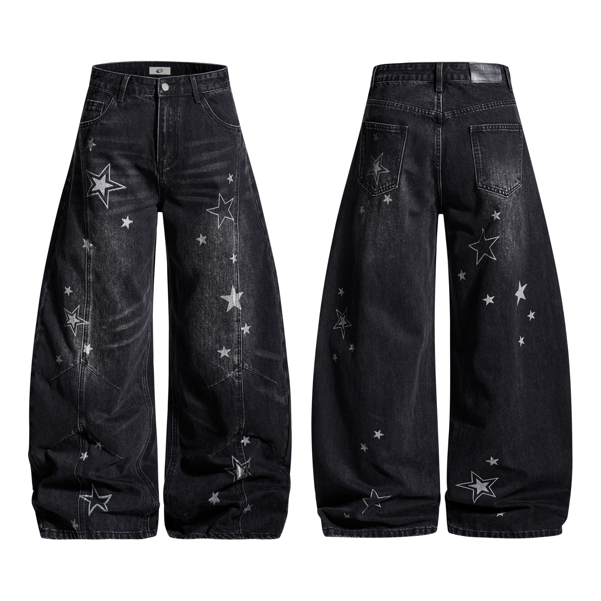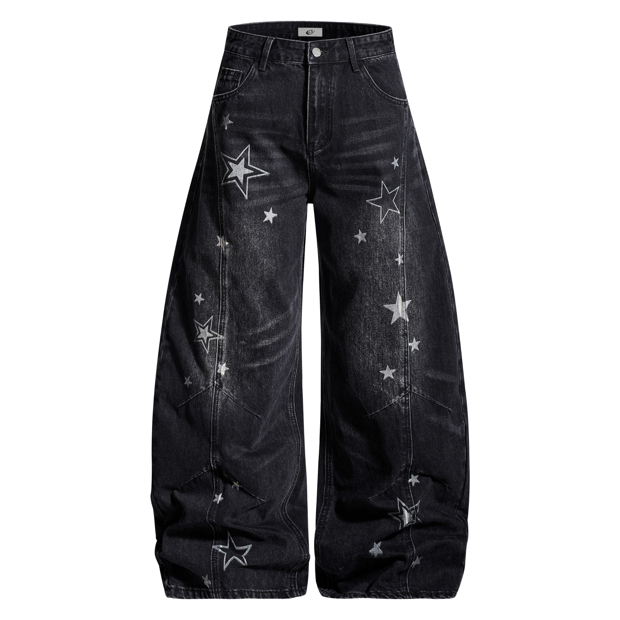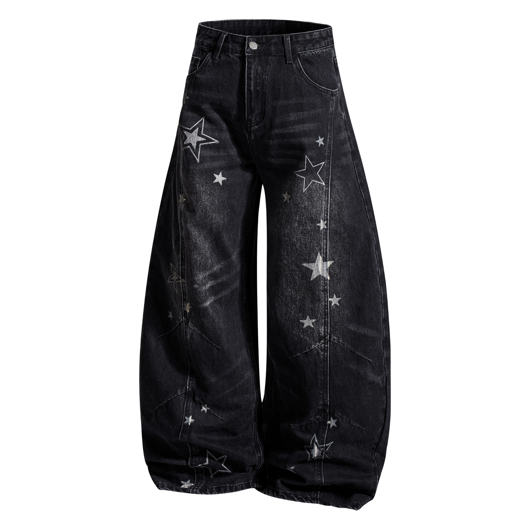The Omirad Star Washed Barrel Jeans blend vintage denim texture with standout streetwear graphics. Made from premium cotton denim with a touch of stretch, these jeans feature a unique faded wash and all-over star print that creates a dynamic, worn-in look. The signature barrel silhouette enhances volume and flow, giving the pants a distinctive sculpted shape. A perfect fusion of comfort, individuality, and attitude — ideal for bold street styling.
