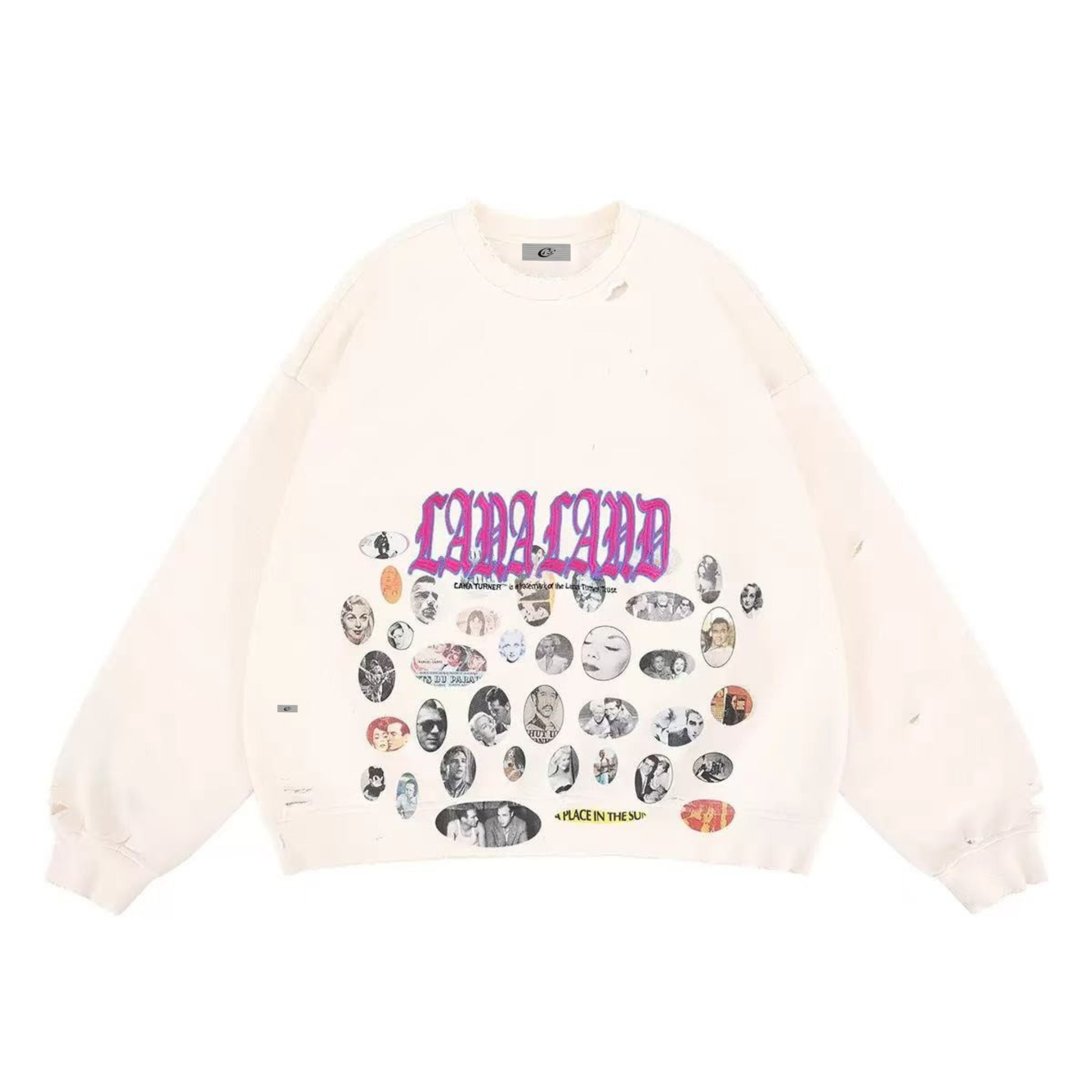 The Omirad Retro Faces Graphic Sweatshirt combines nostalgic print design with modern streetwear comfort. Made from a soft cotton-poly blend (60% cotton, 40% polyester), it features a large front collage of vintage-style portraits and distressed detailing for an authentic worn-in look. The oversized fit, ribbed edges, and heavyweight fabric deliver both durability and a relaxed urban vibe.