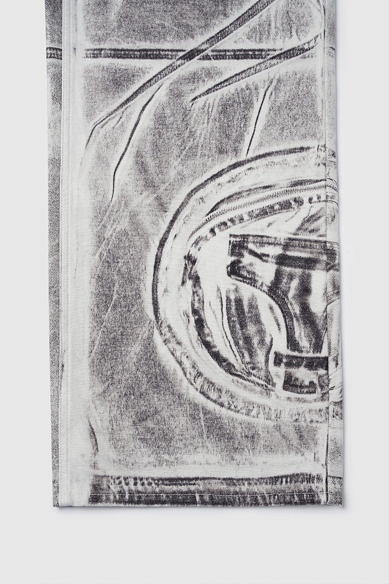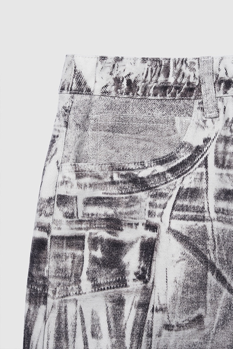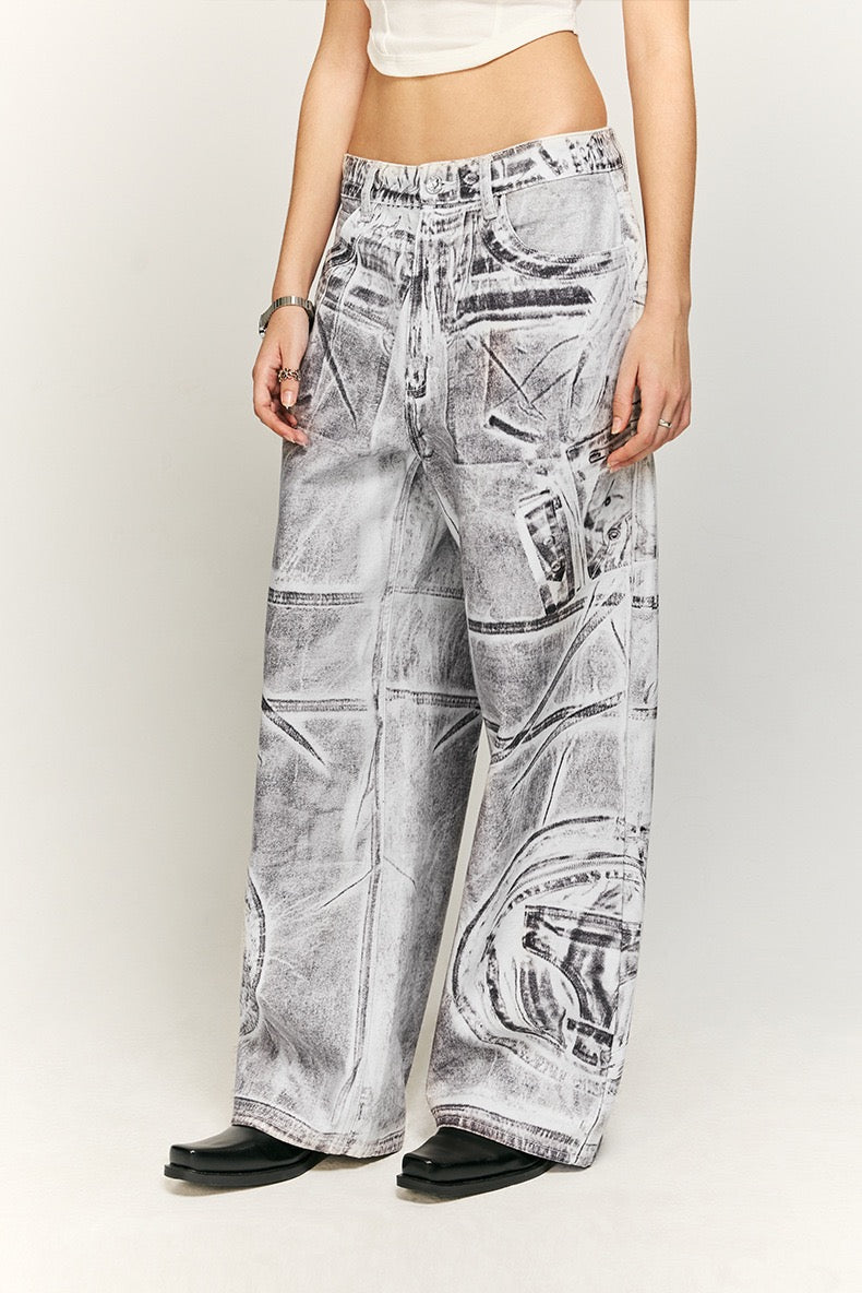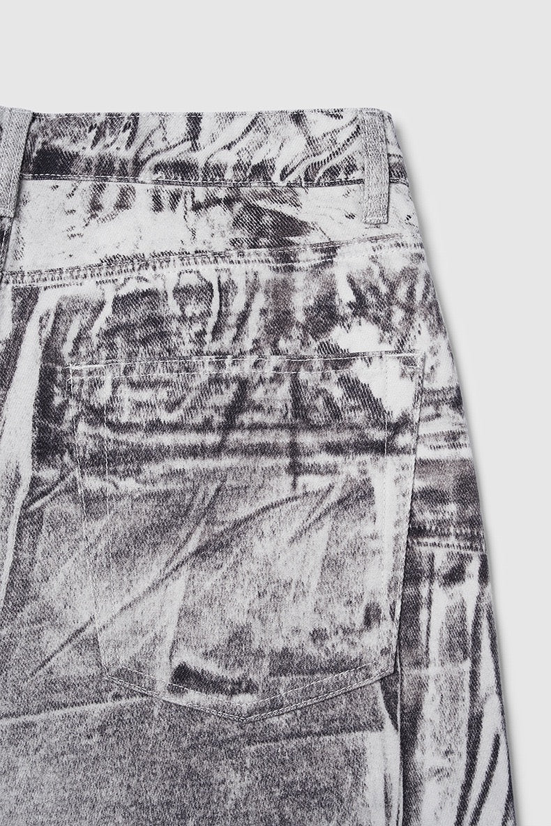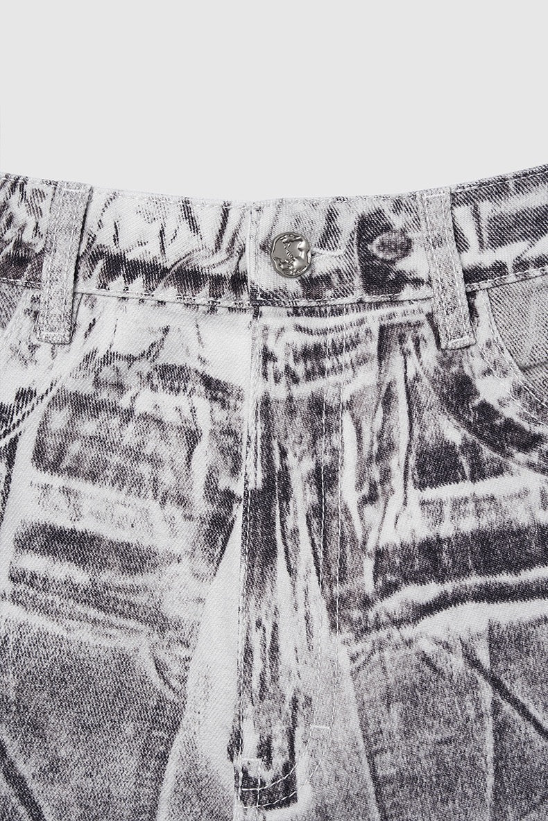 American Streetwear Color-Blocked Distressed Graphic Print Denim Jeans
