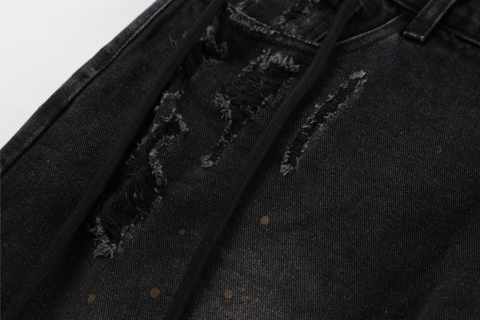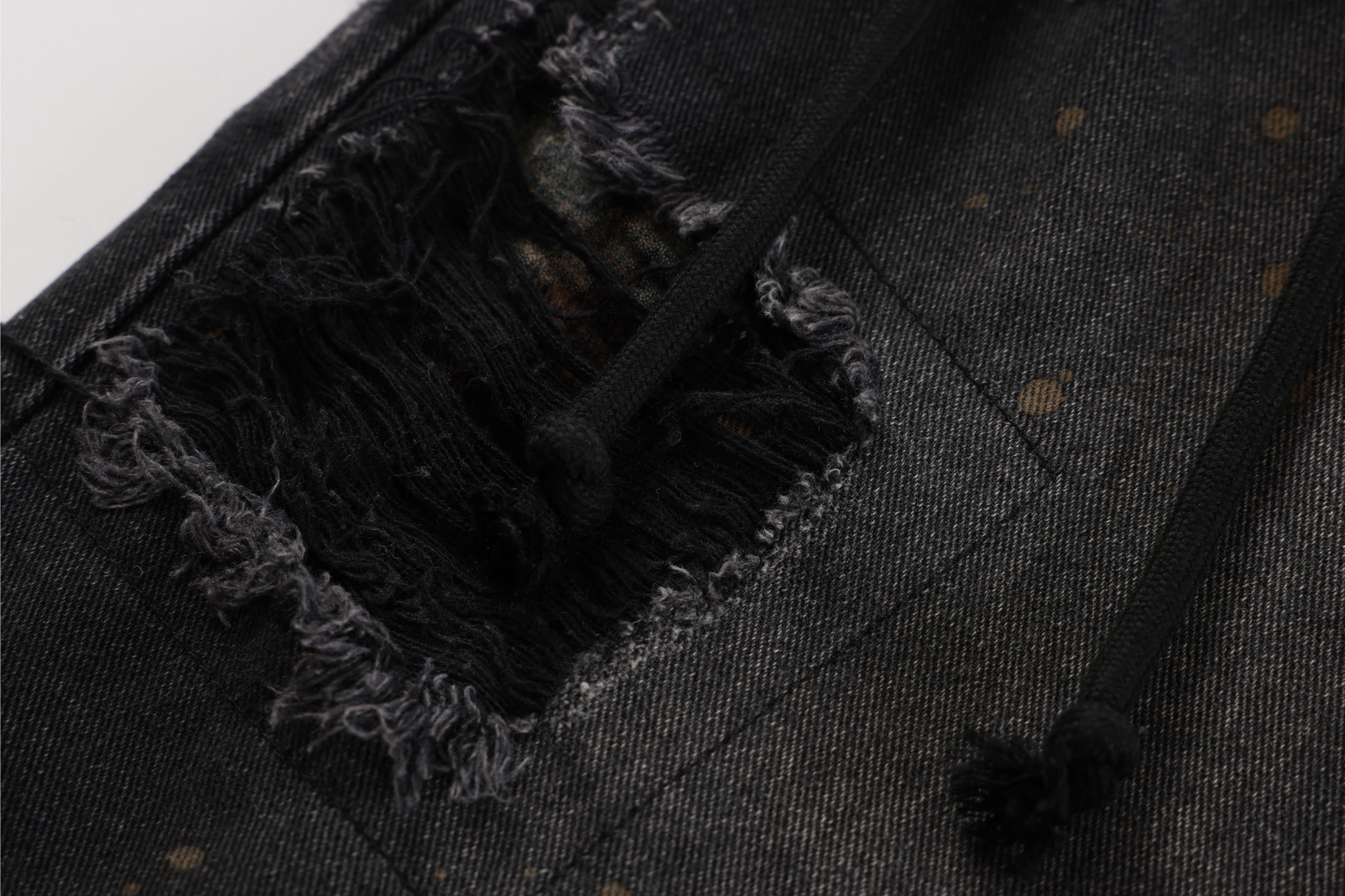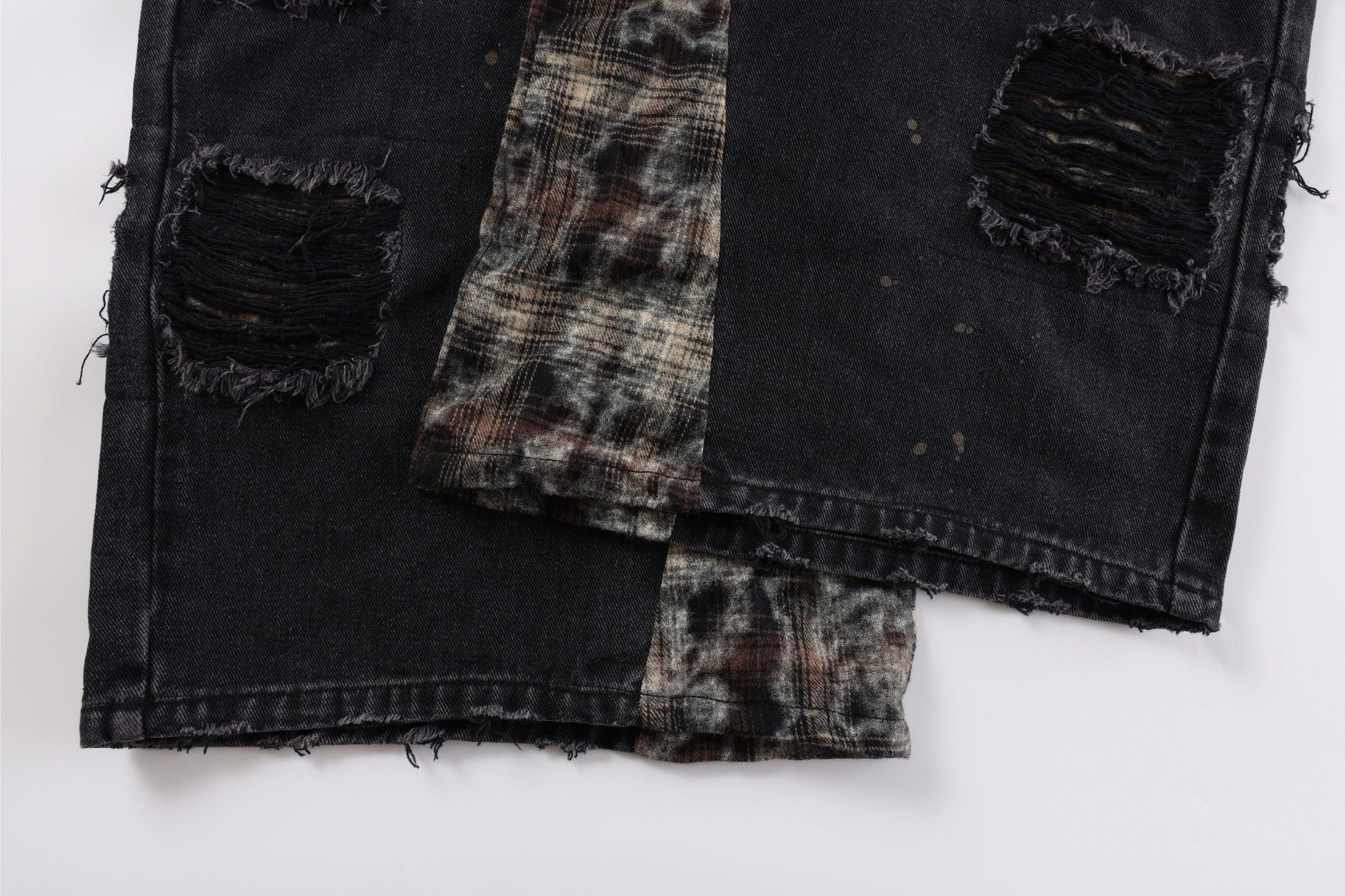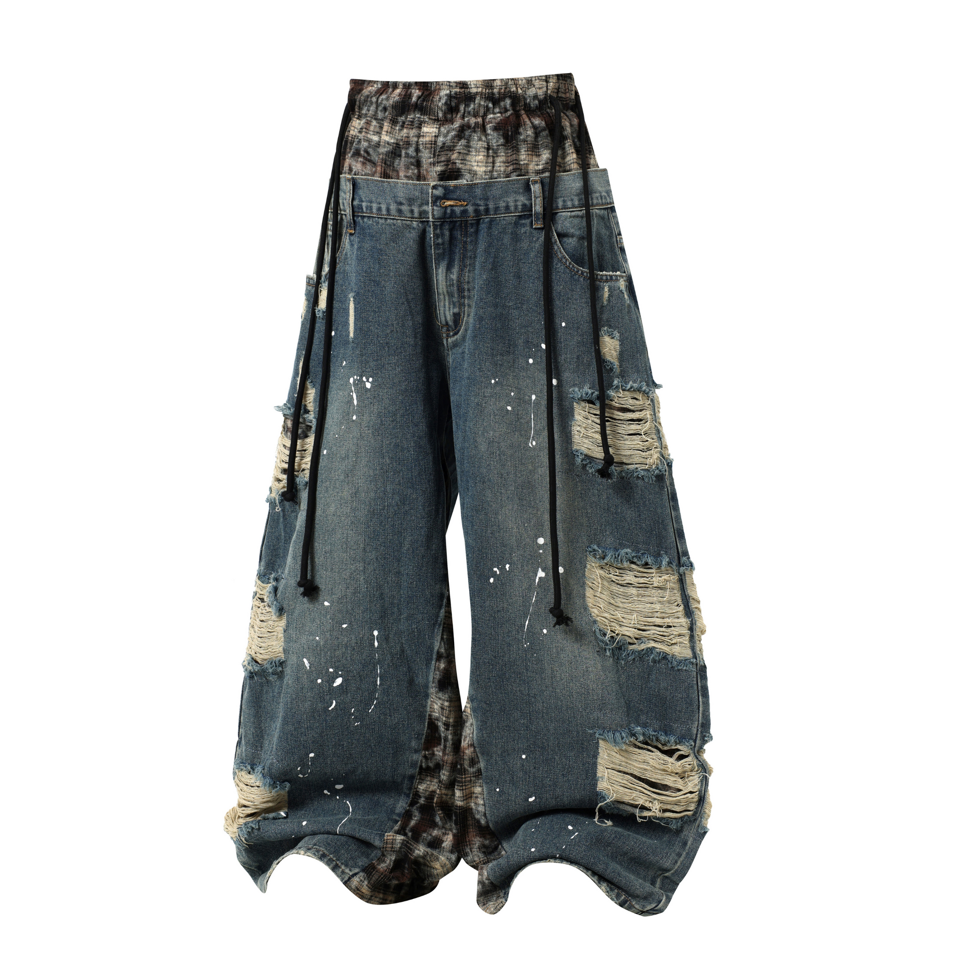 American Streetwear Double-Waist Plaid Patchwork Wide-Leg Jeans