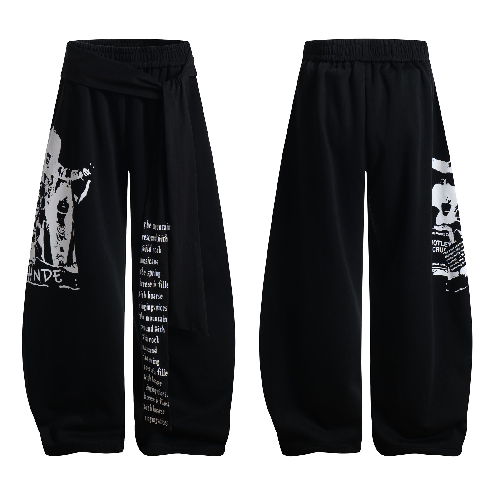 American Streetwear Graphic Print Curved Blade Casual Pants