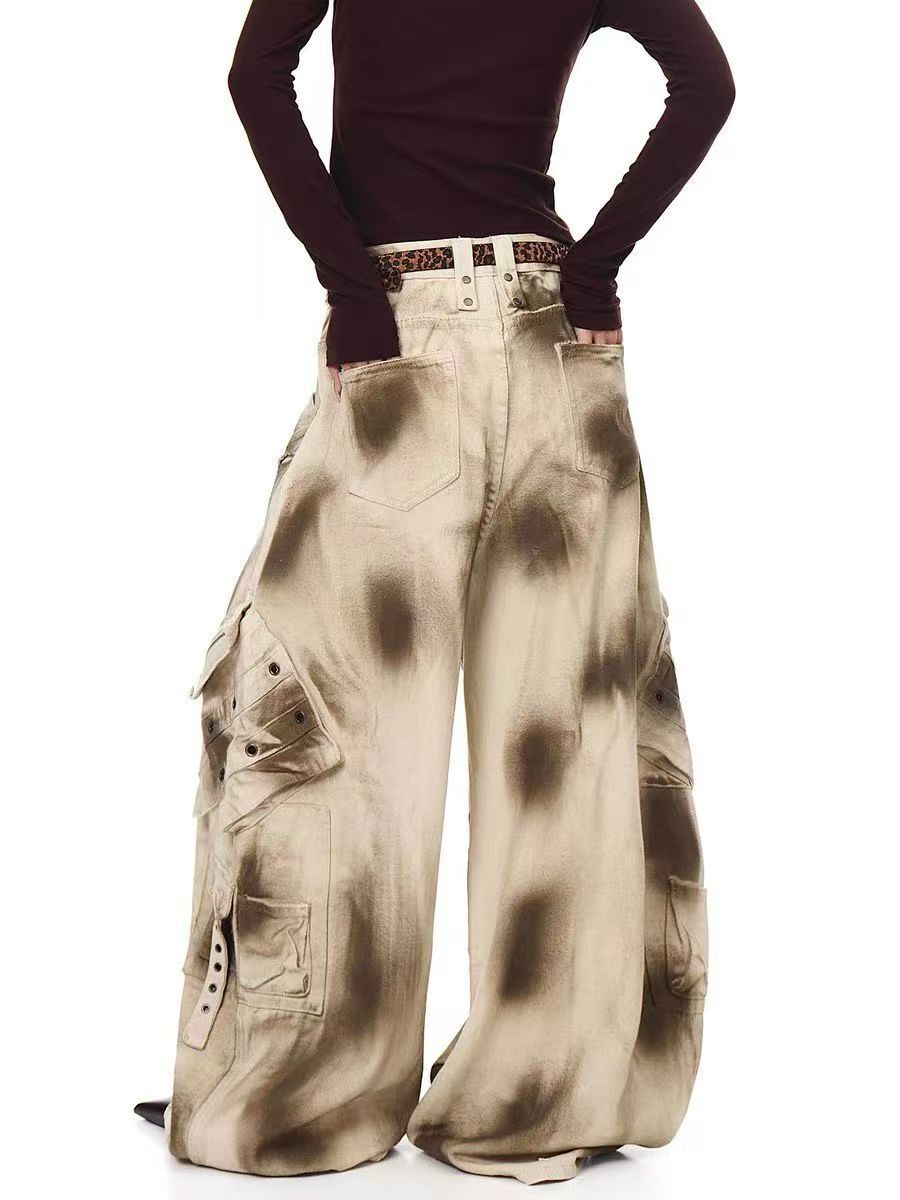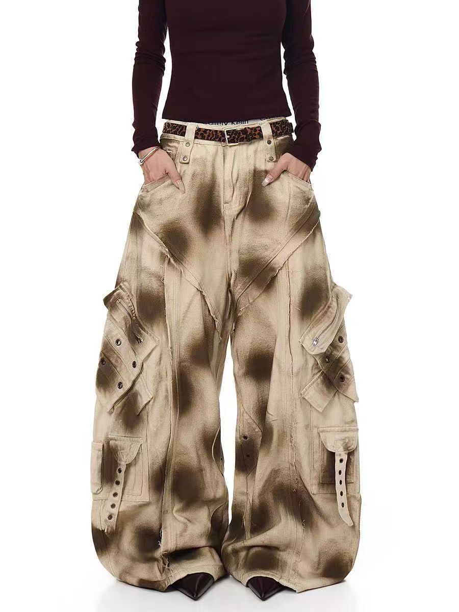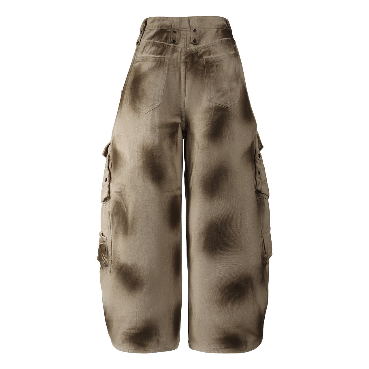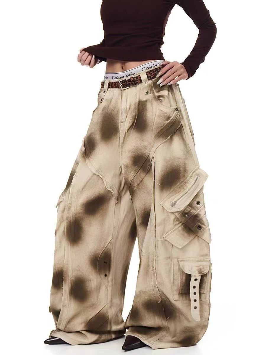 American Streetwear Heavy Spray-Paint Washed Cargo Jeans