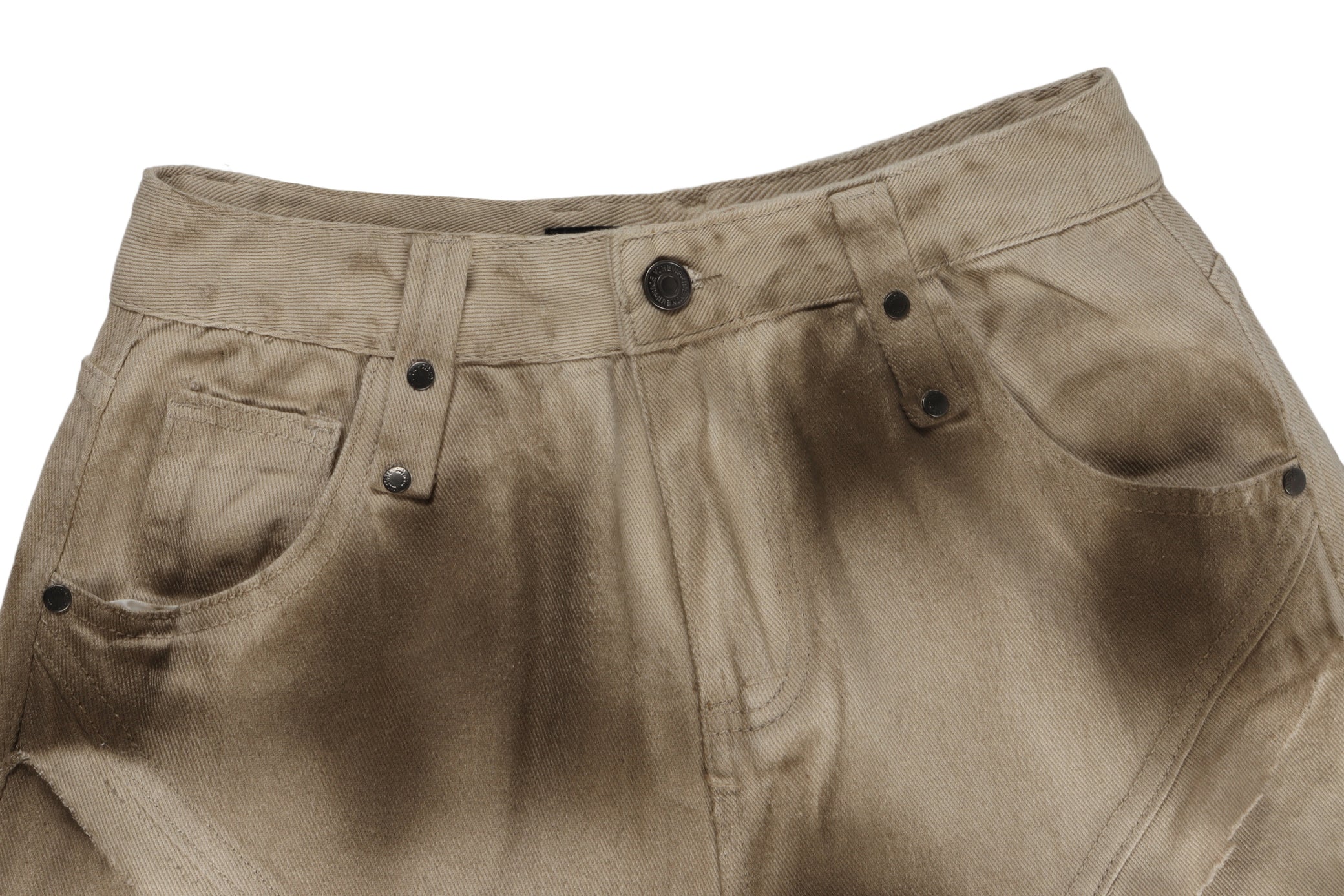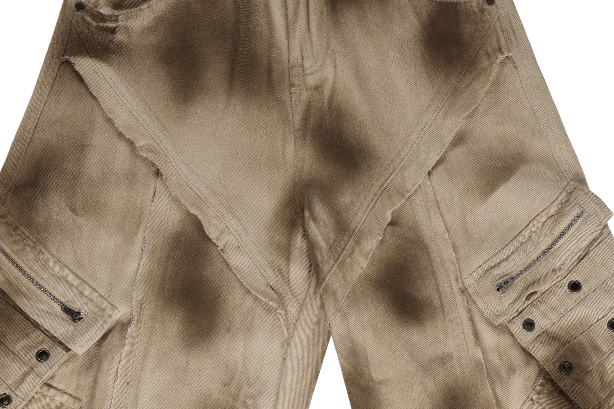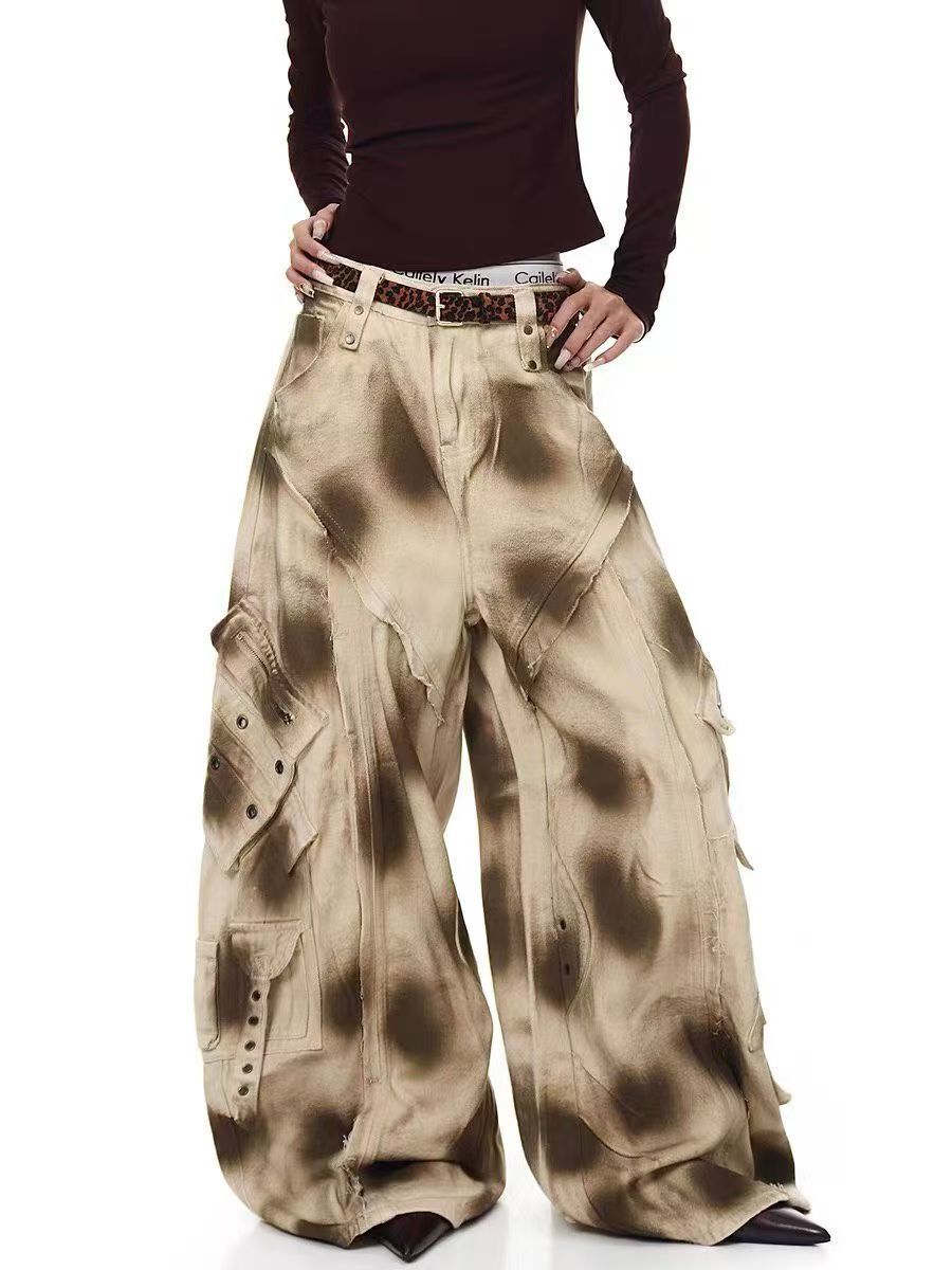 American Streetwear Heavy Spray-Paint Washed Cargo Jeans