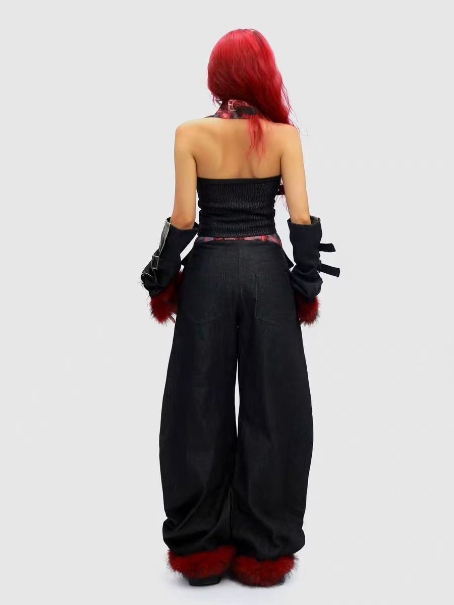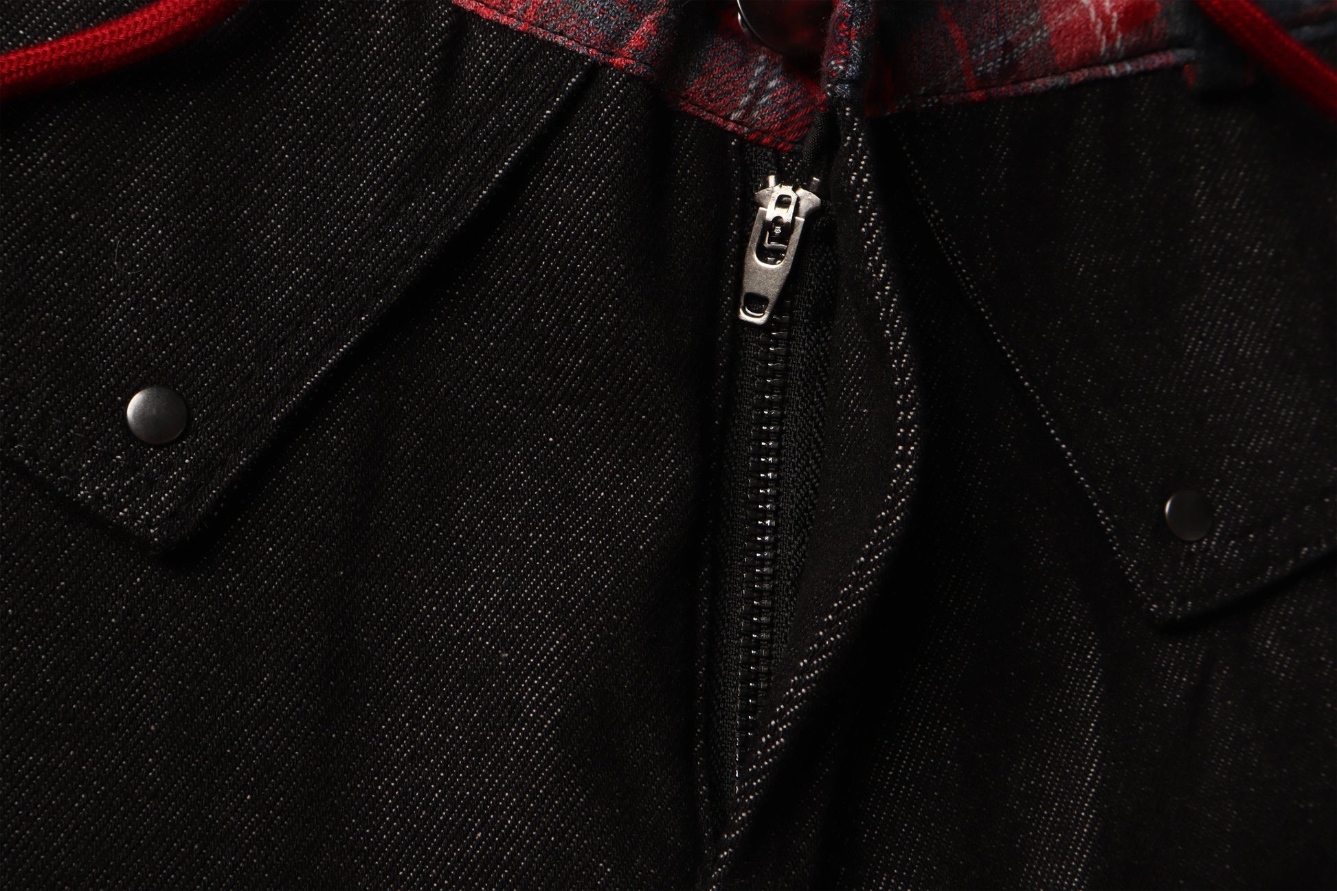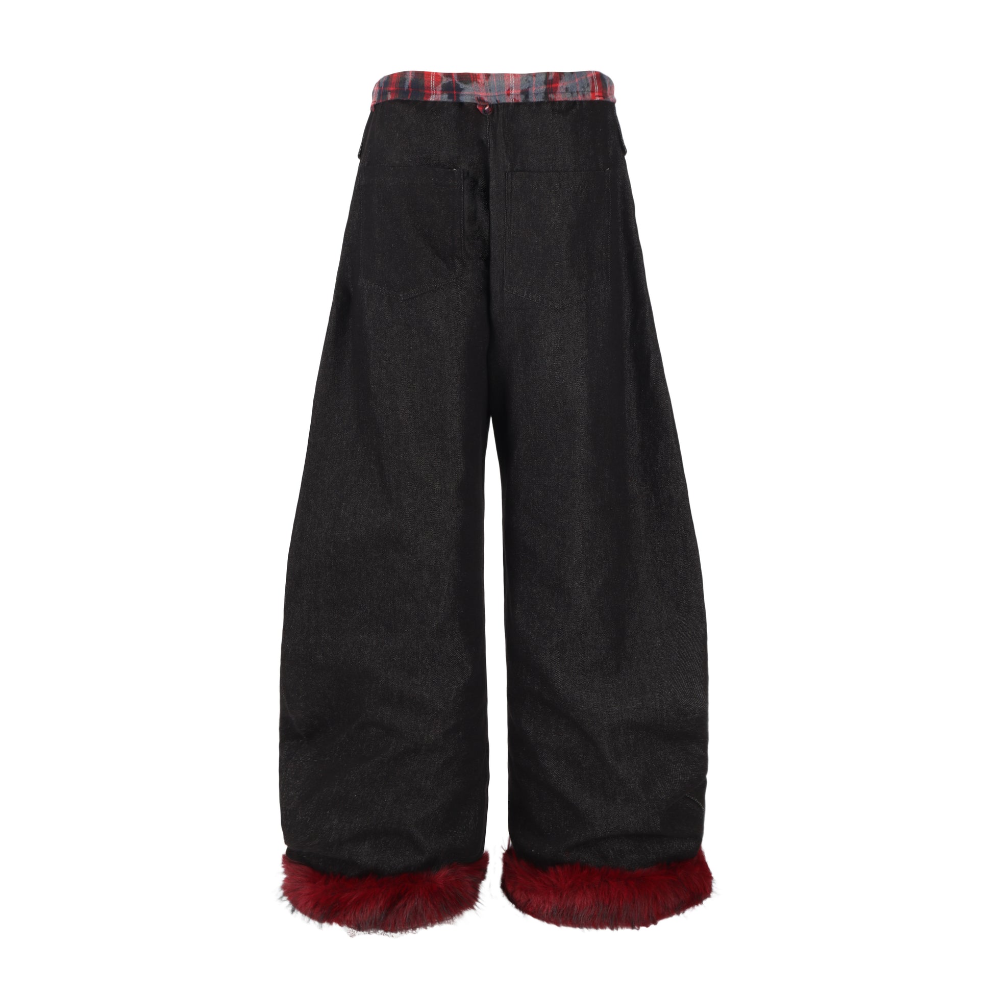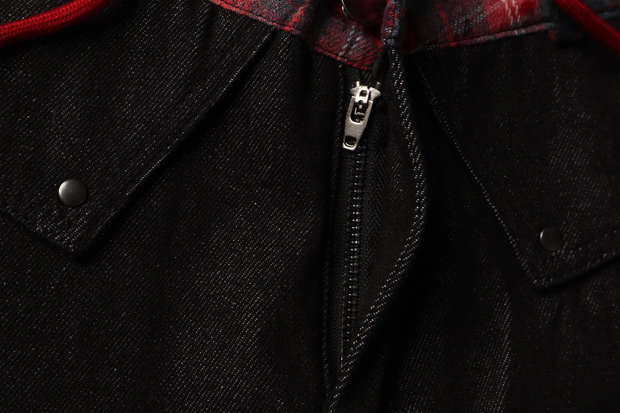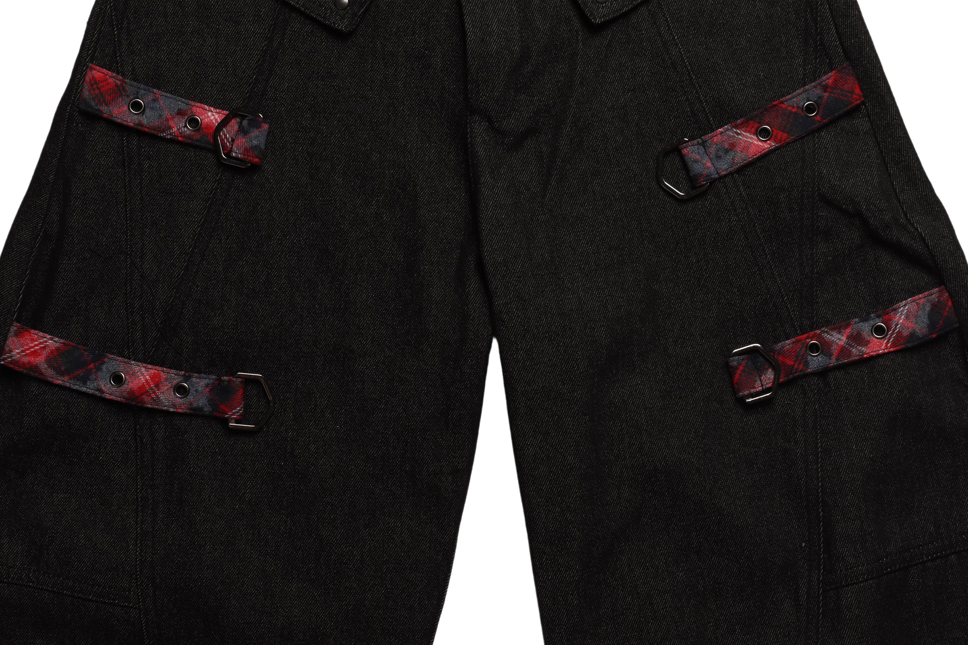 American Streetwear Plaid Patchwork Curved-Cut Jeans