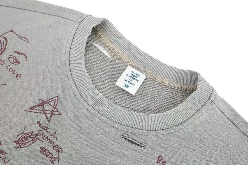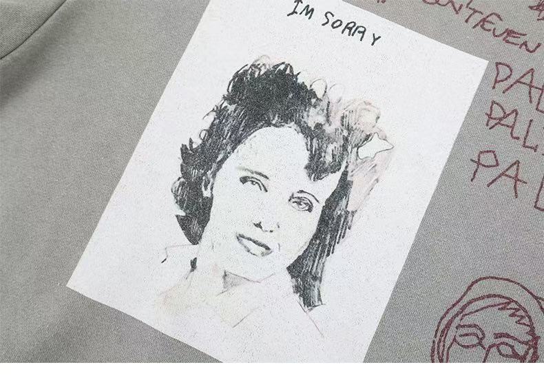 American Streetwear Portrait Graffiti Print Sweatshirt