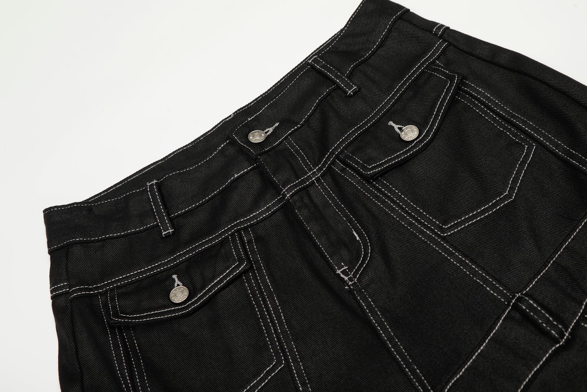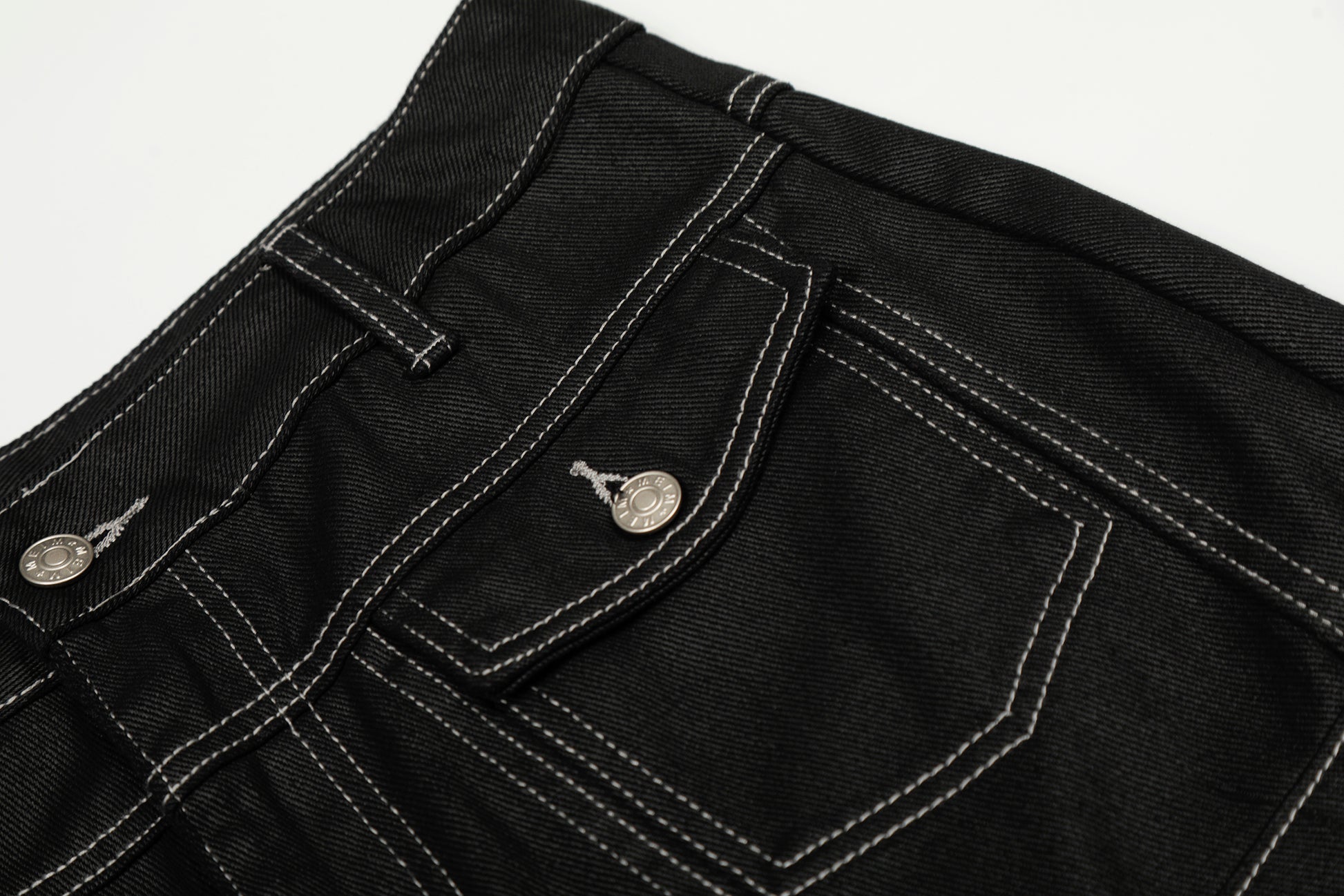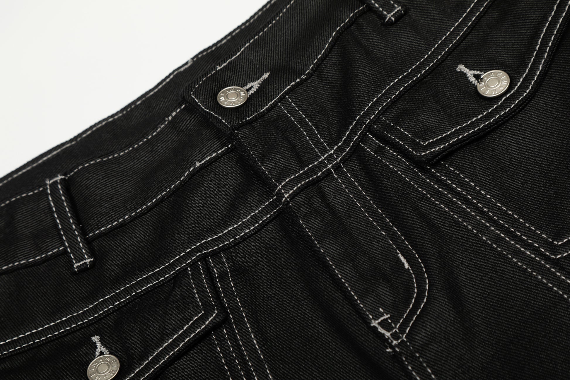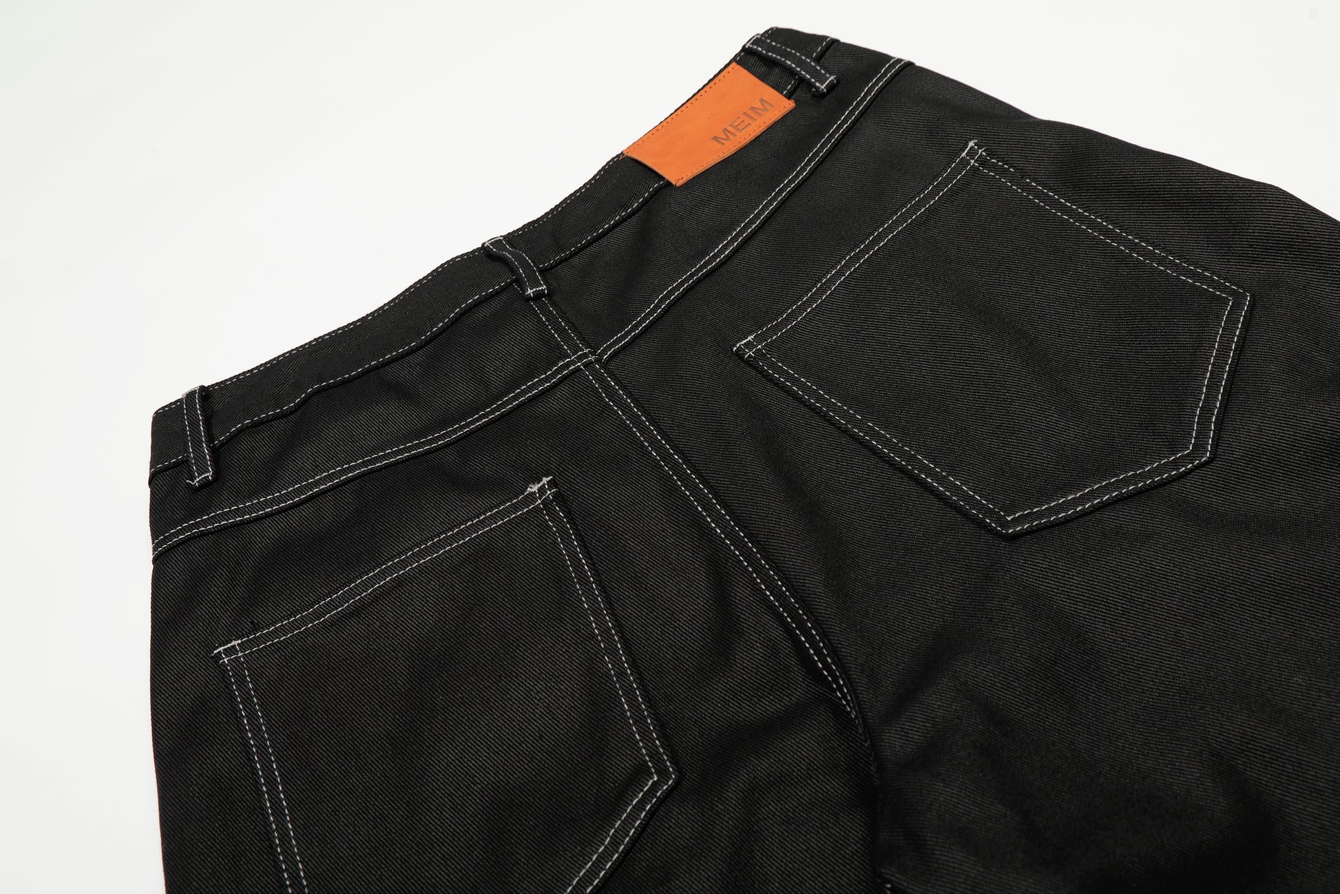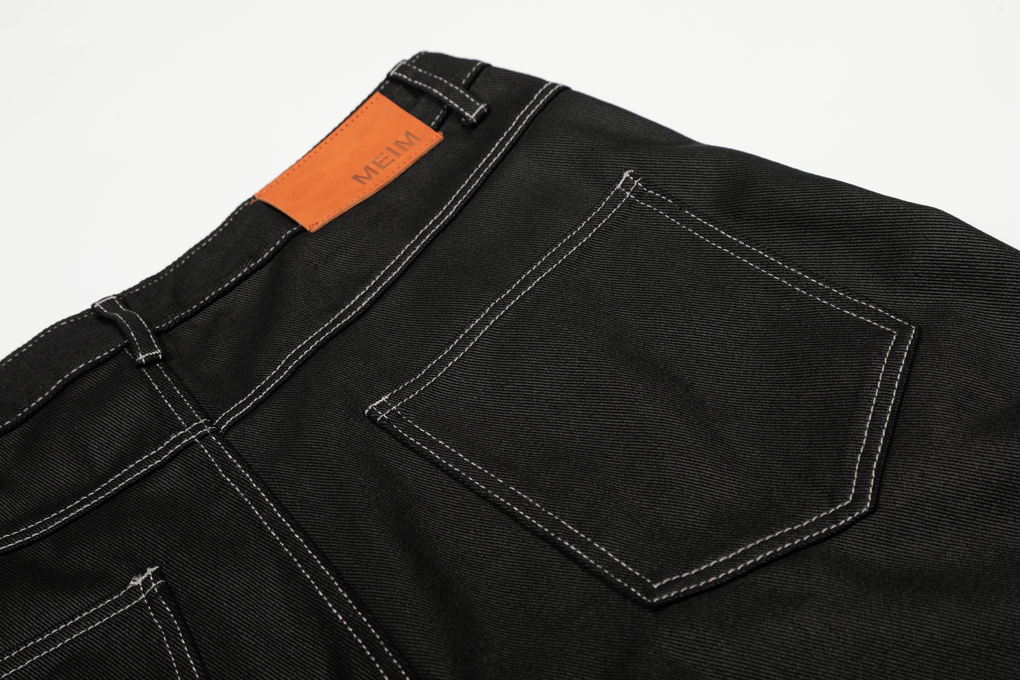 Omirad Printed Contrast Stitch Wide Denim Pants