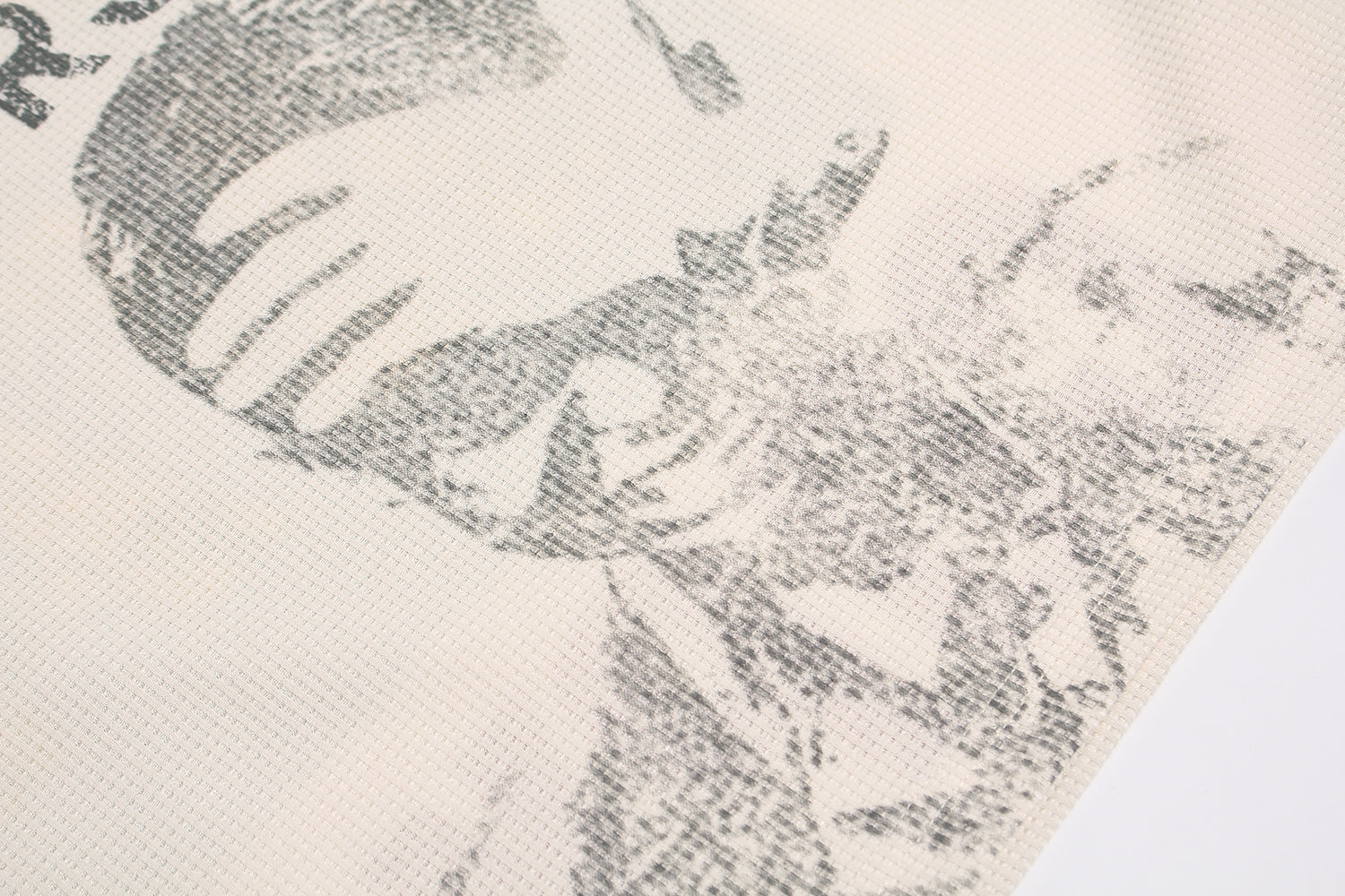 Clothing details: Oversized fit, heavy waffle weave, cracked-effect graphic print, dropped shoulders, ribbed neckline
