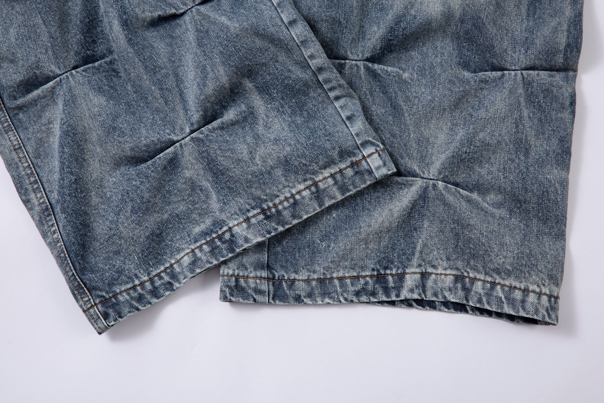 American Vintage Heavy-Duty Pleated Washed Denim Jeans