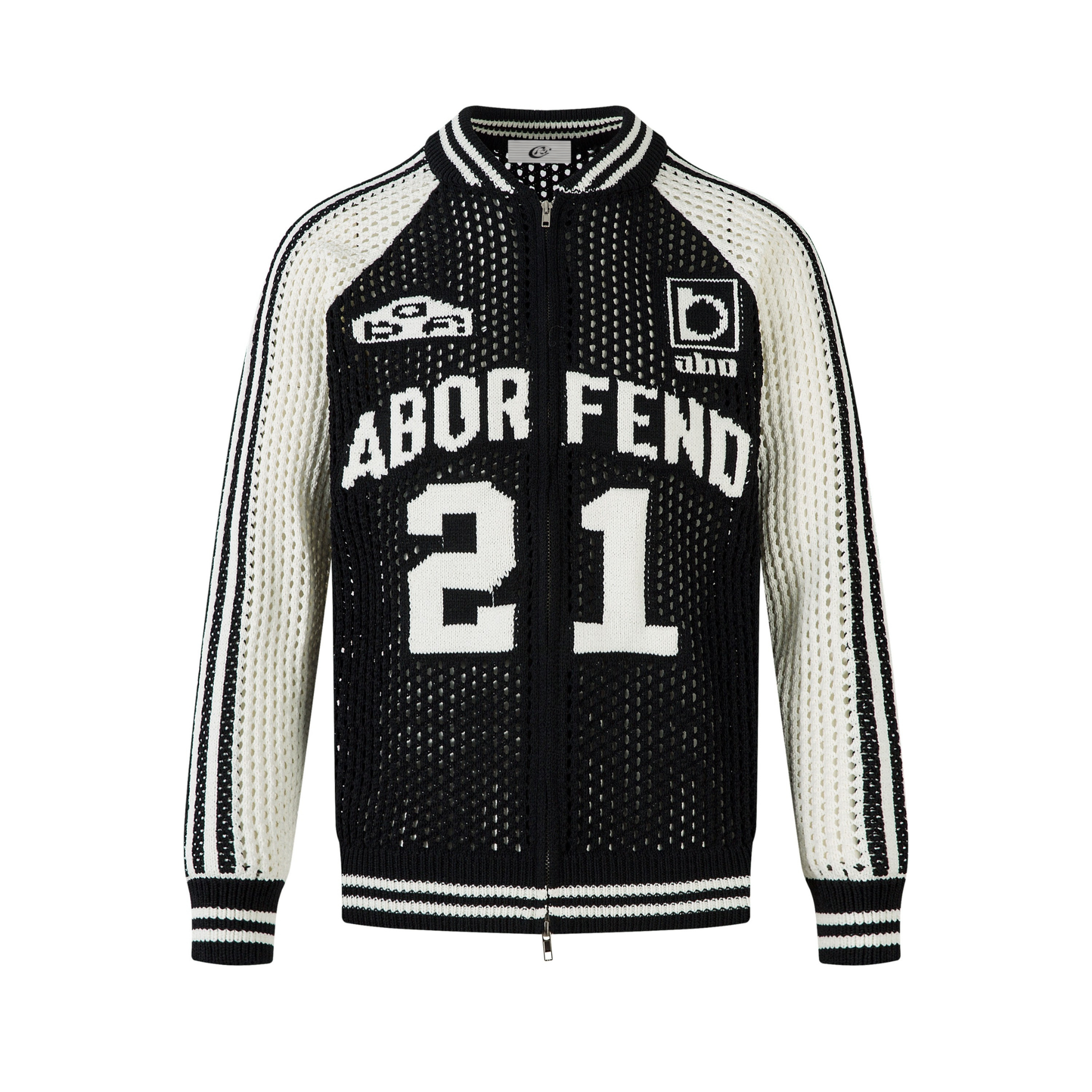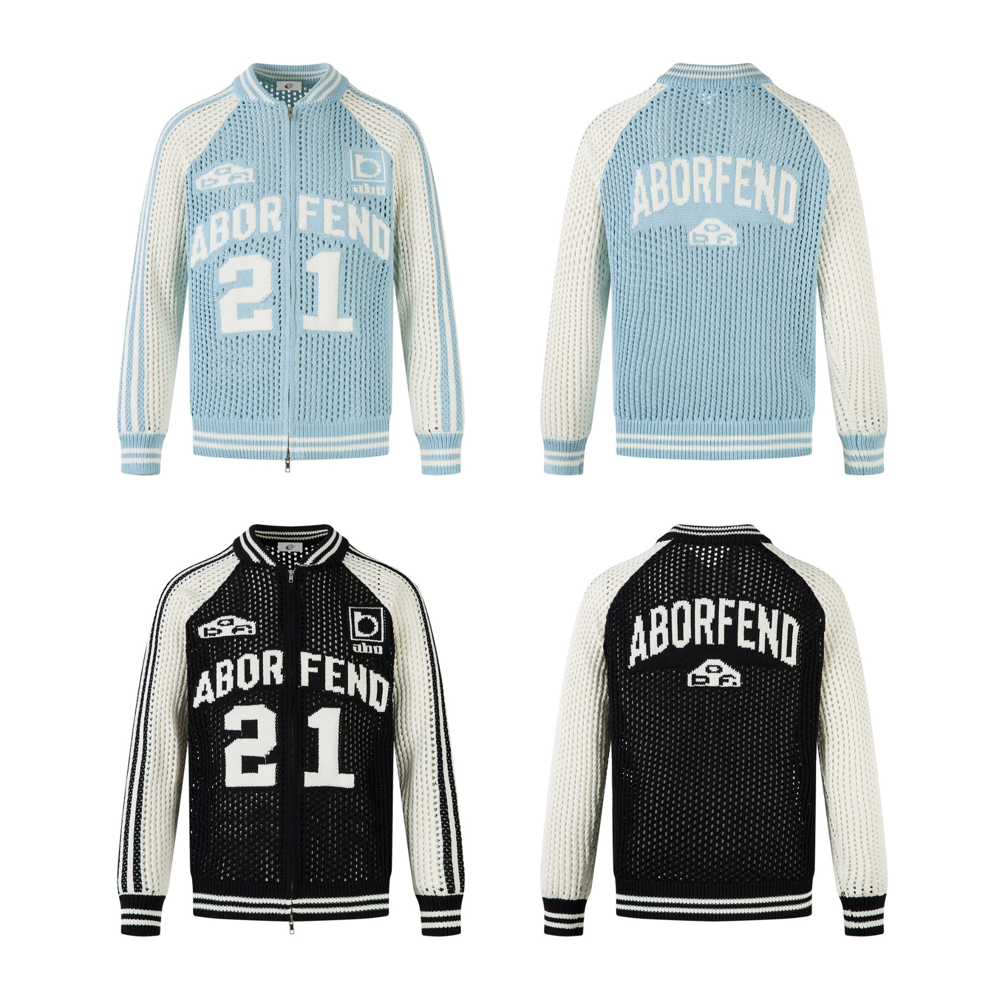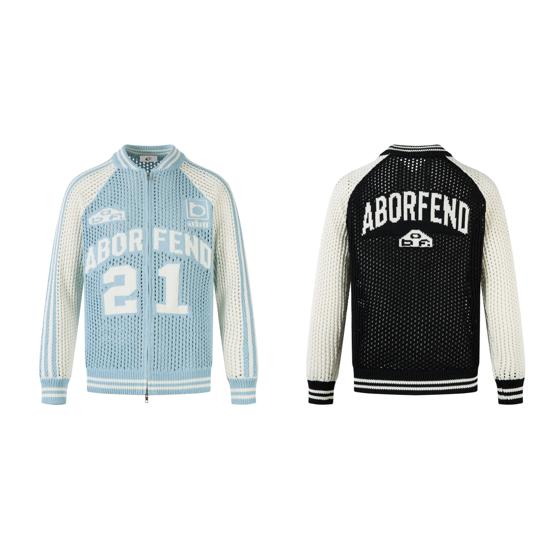 The Omirad Mesh Varsity Knit Jacket combines vintage athletic energy with a contemporary streetwear silhouette. Featuring bold ABOR FEND lettering, varsity-style patches, and a contrast raglan sleeve design, it delivers both structure and comfort. The breathable knit mesh texture offers a light yet substantial feel, making it perfect for layering across seasons.
