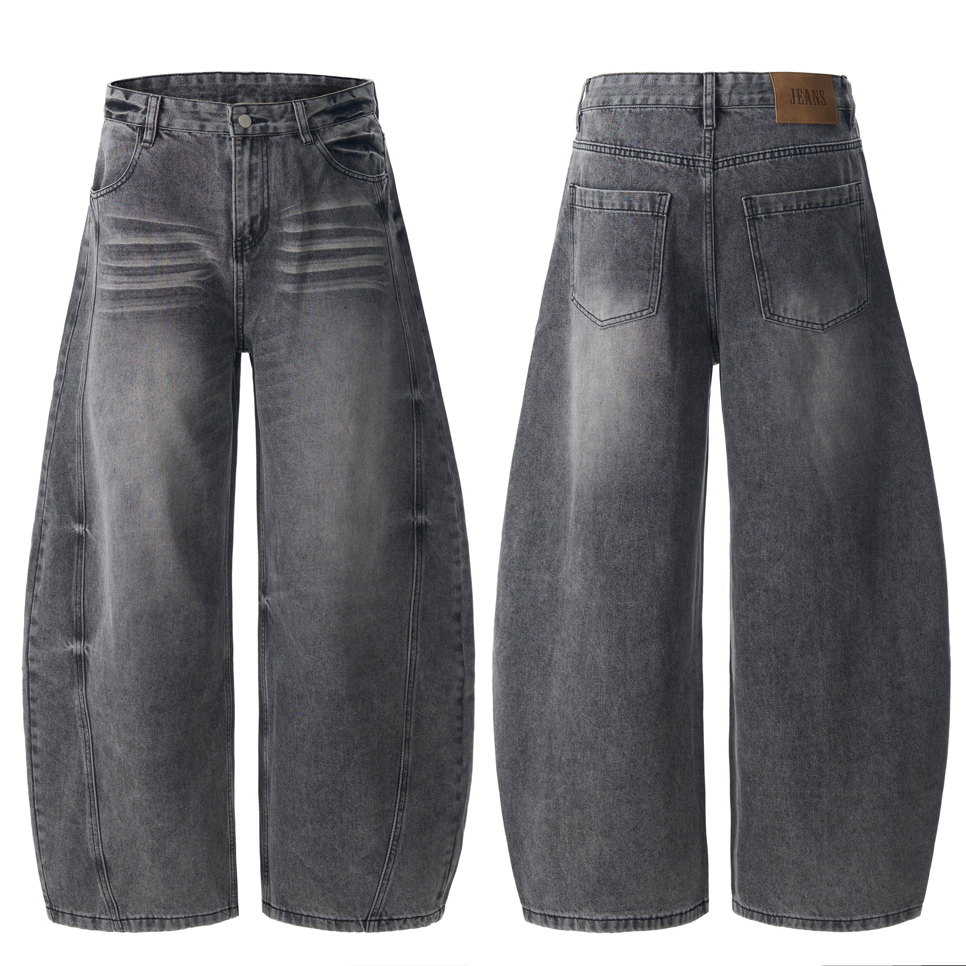 American Vintage Washed Pleated Textured Curved Blade Jeans