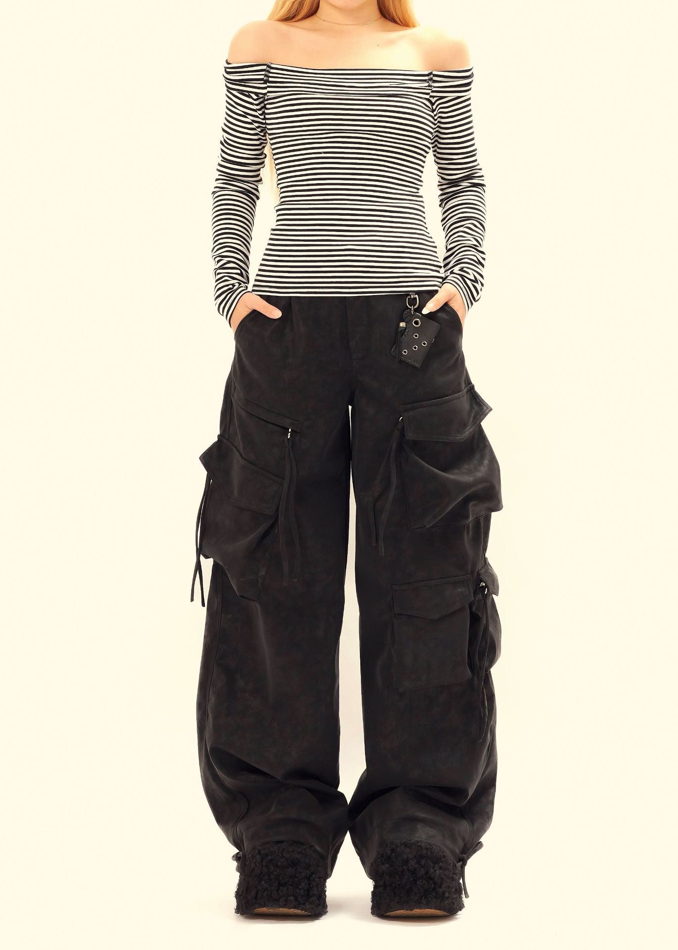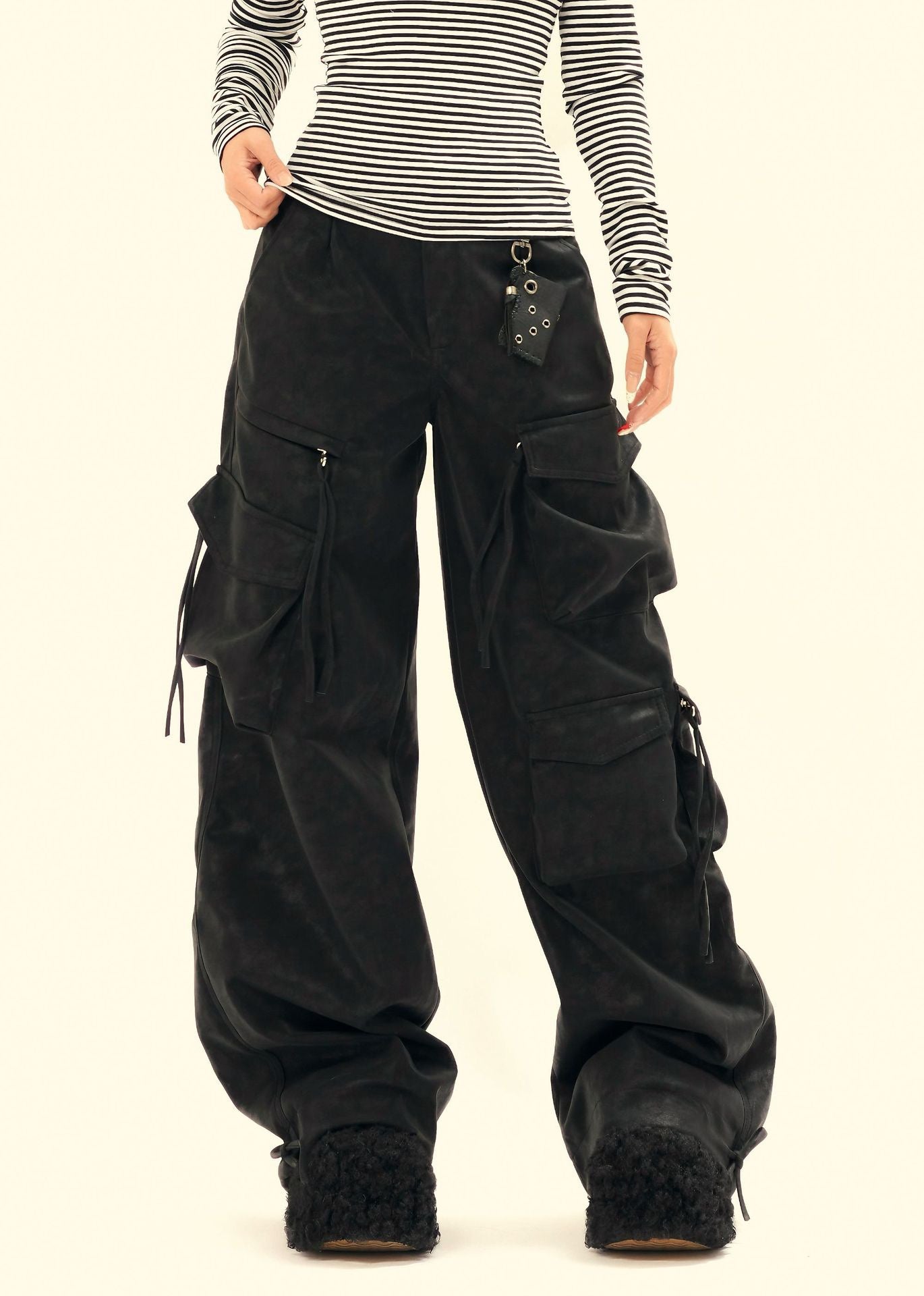 Biker Style PU Cargo Pants