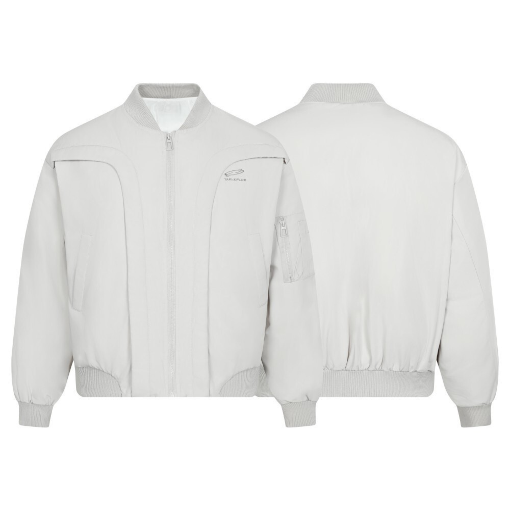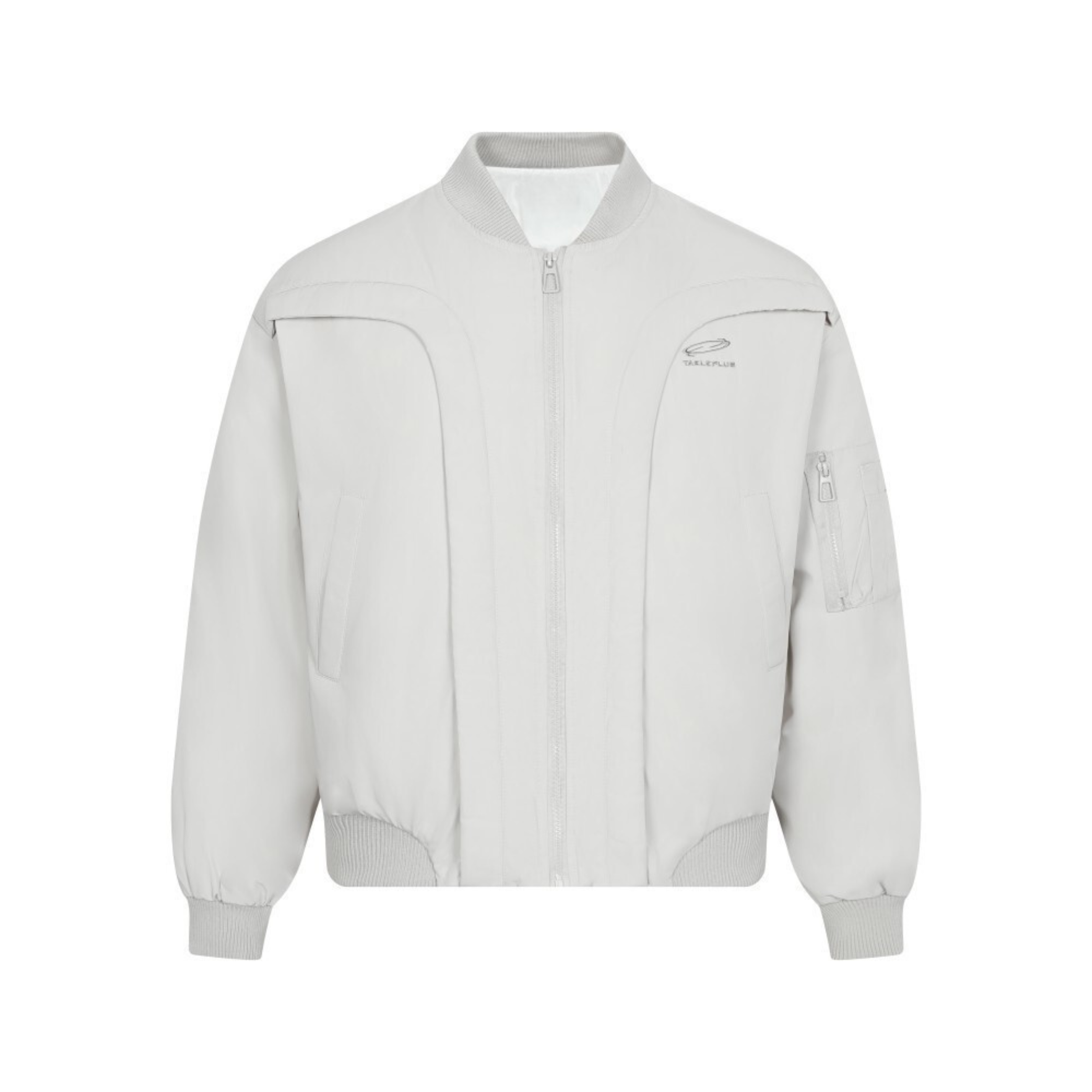 Clothing details: Breathable performance mesh fabric, full-zip front closure, structured panel construction, ribbed collar and cuffs, utility sleeve pocket, lightweight build, relaxed athletic street fit.