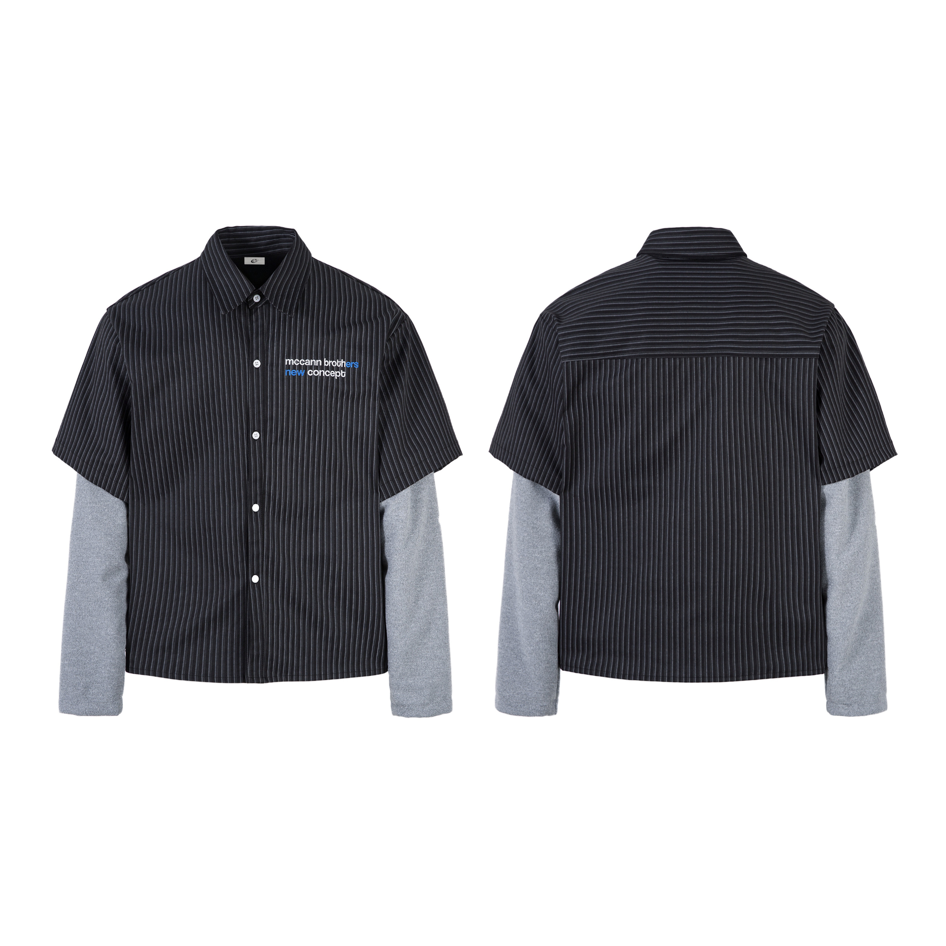 The Omirad Layered Pinstripe Shirt features a clean pinstripe short-sleeve shell combined with built-in long sleeves for a modern layered look. Made from 100% polyester, it delivers lightweight comfort and a sharp streetwear aesthetic.