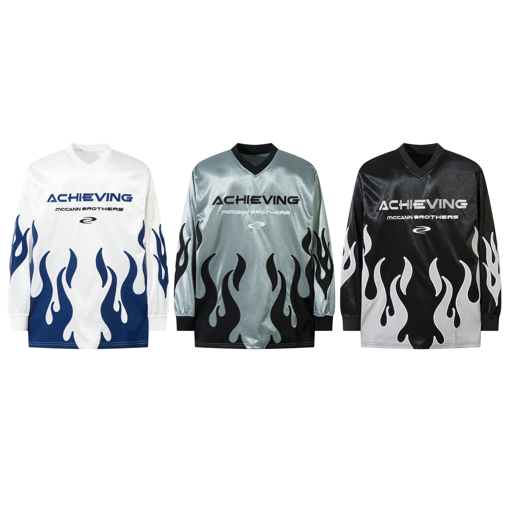The Omirad Flame Mesh Jersey features bold flame graphics and a sleek V-neck silhouette that bring a high-impact street-sport aesthetic to your look. Perfect for leveling up your everyday street style, this jersey blends breathable performance with standout visual energy.
