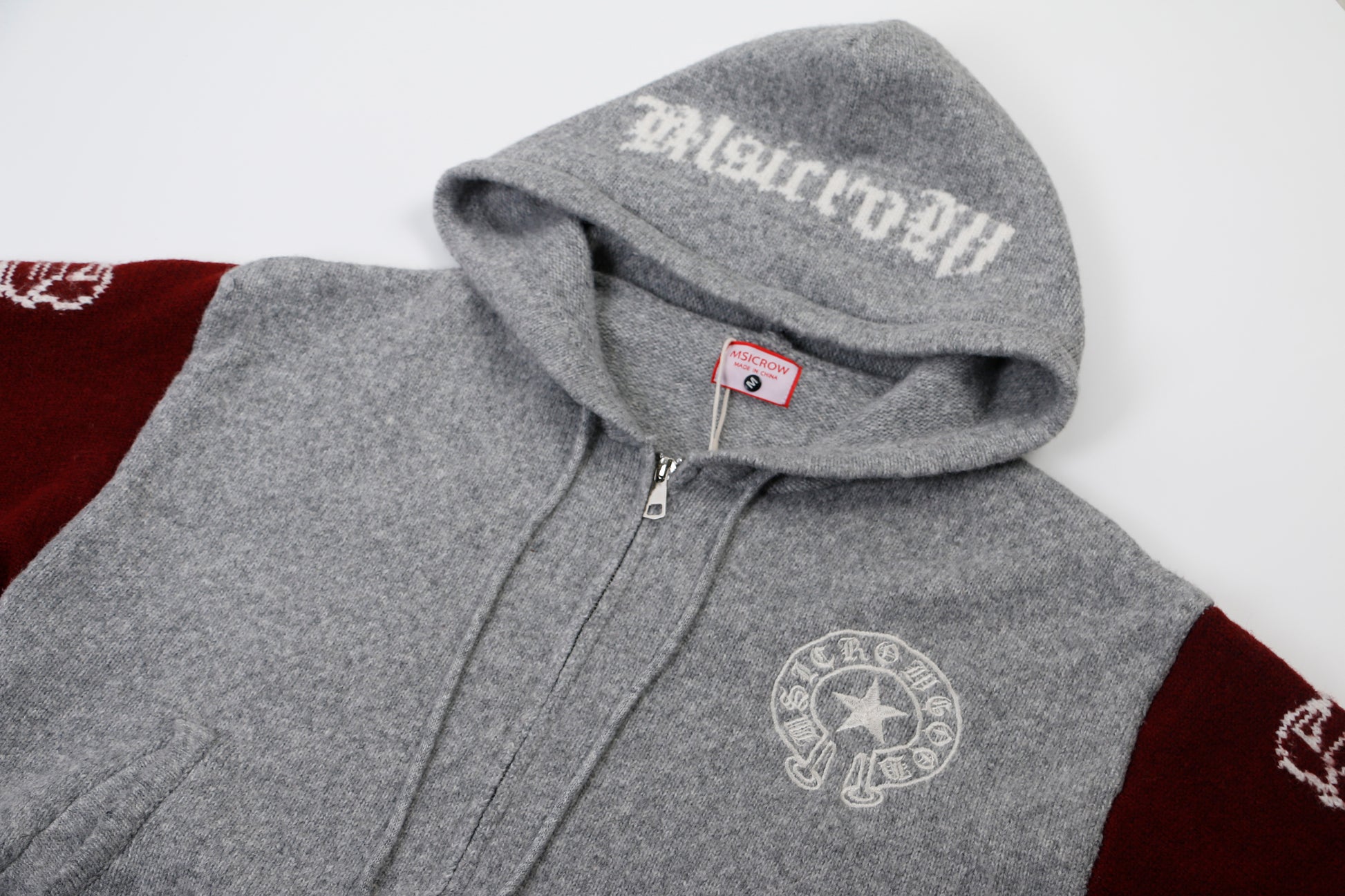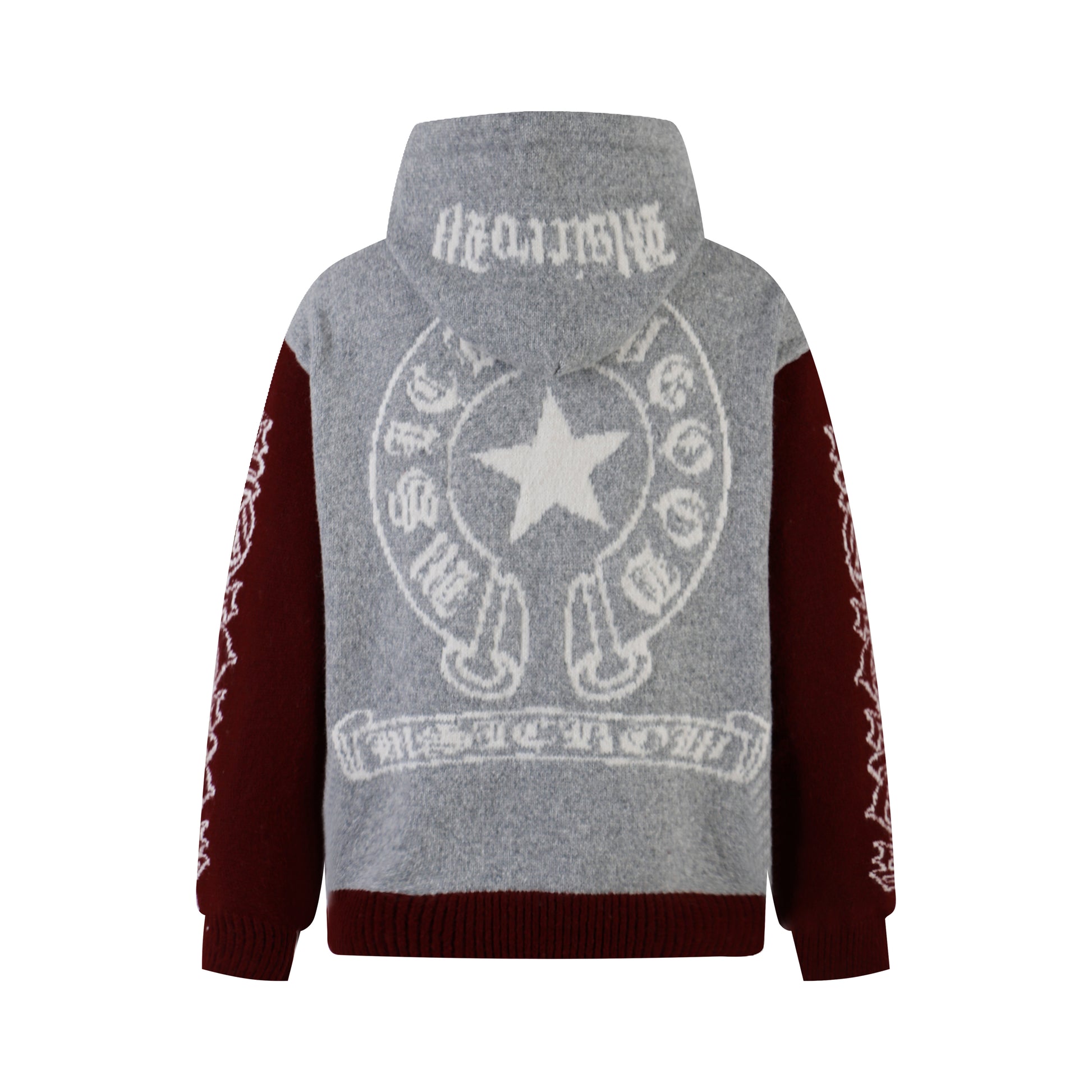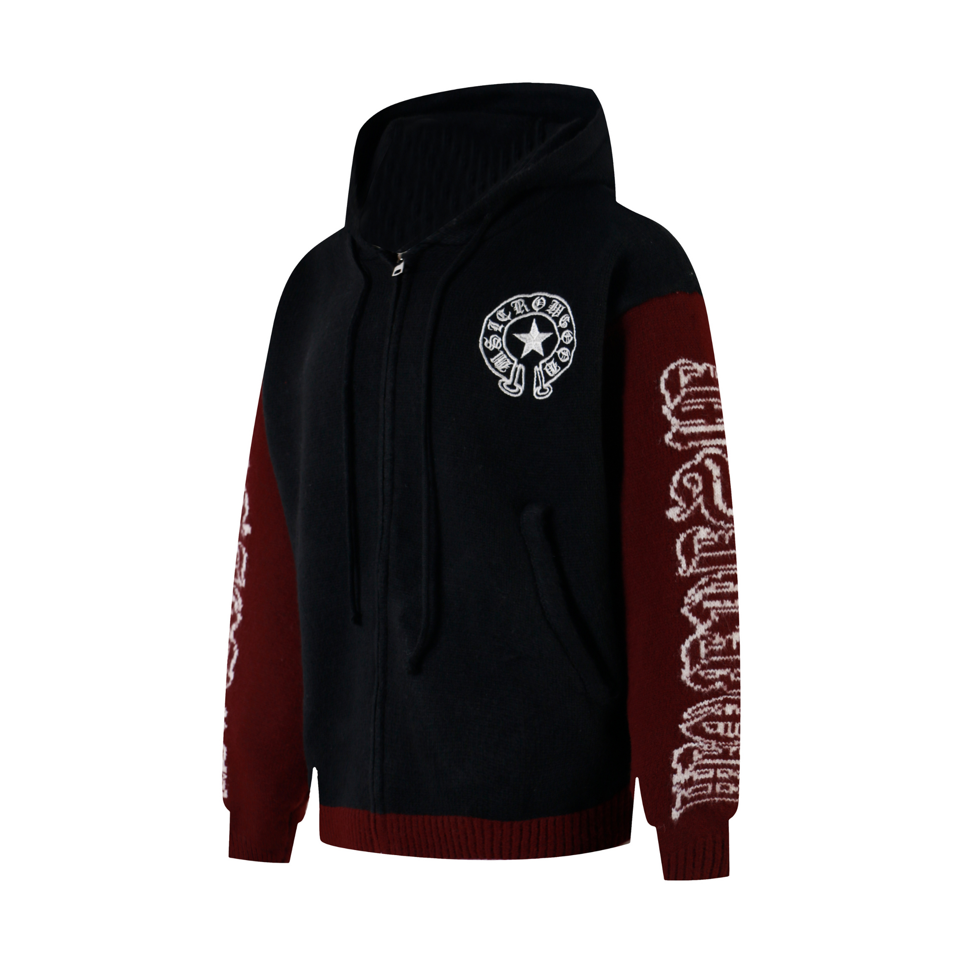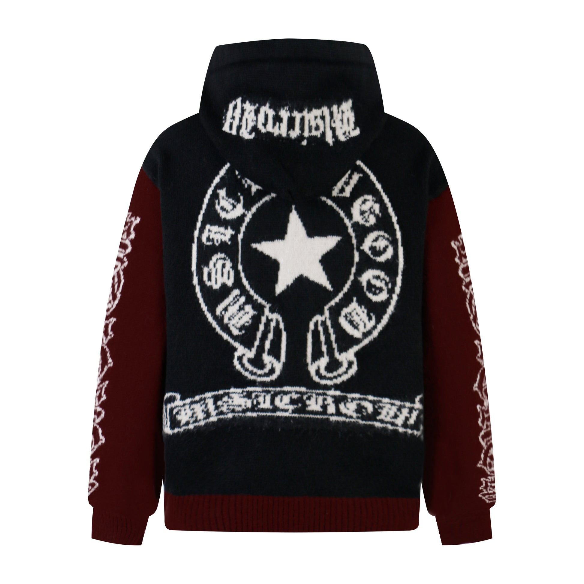 Gothic Letter Jacquard Zip-Up Hooded Sweater