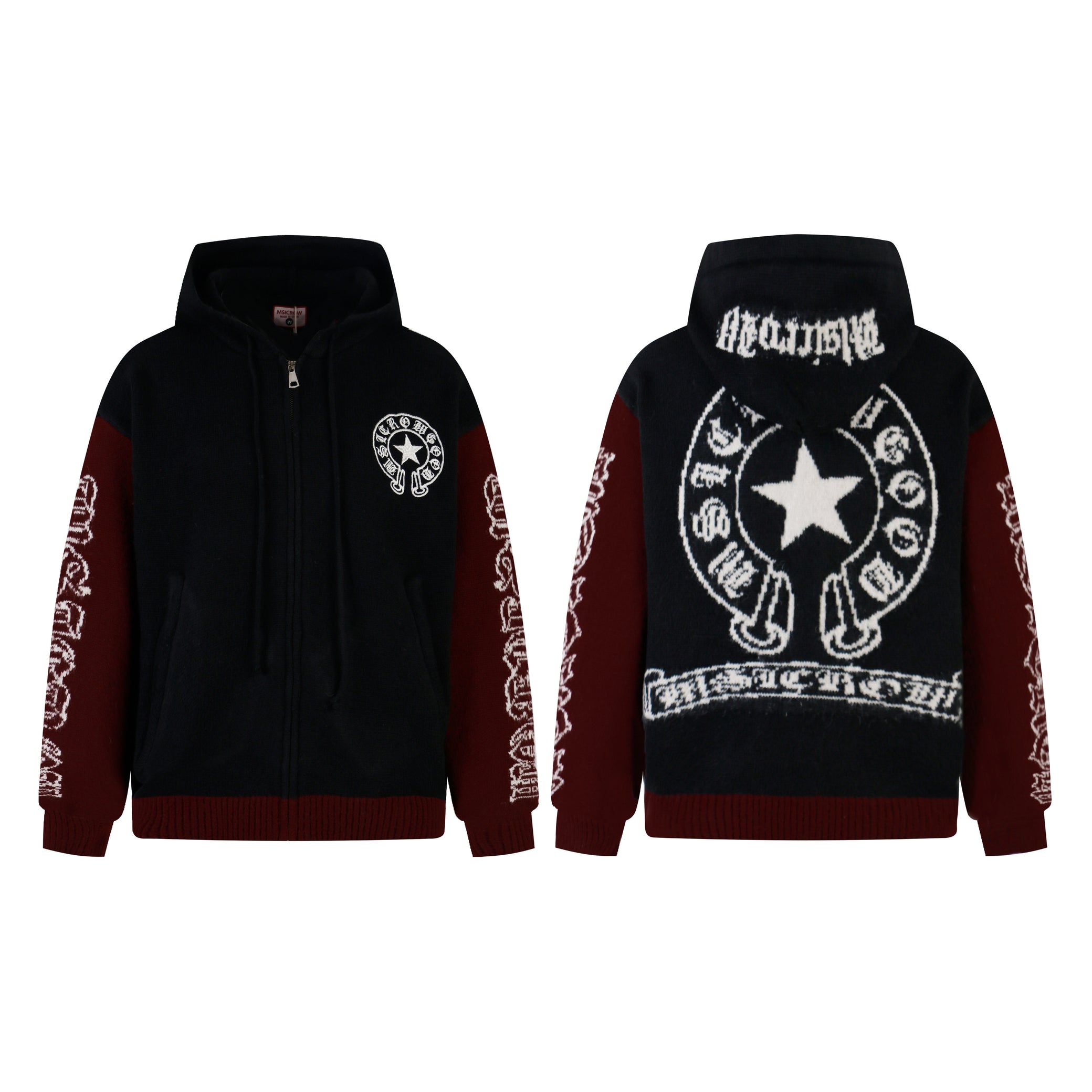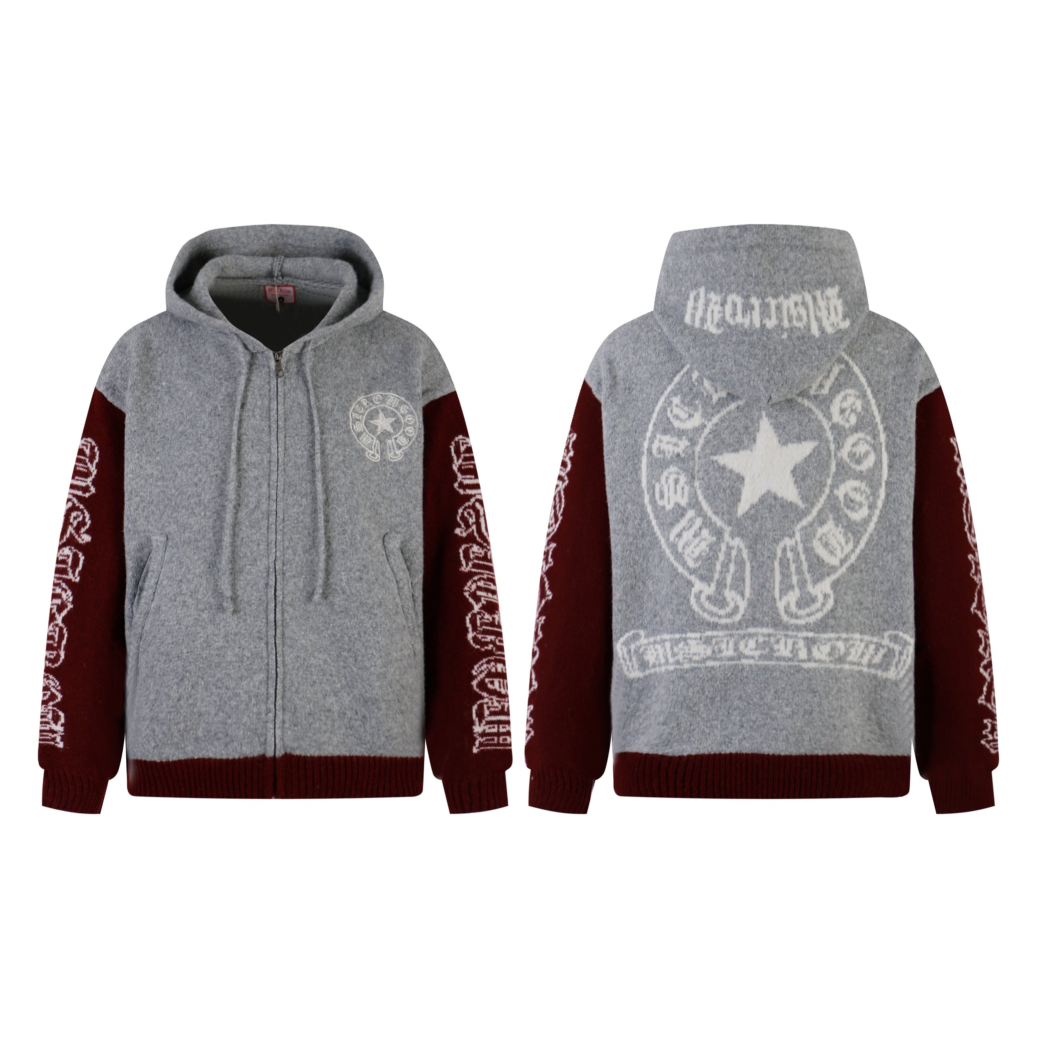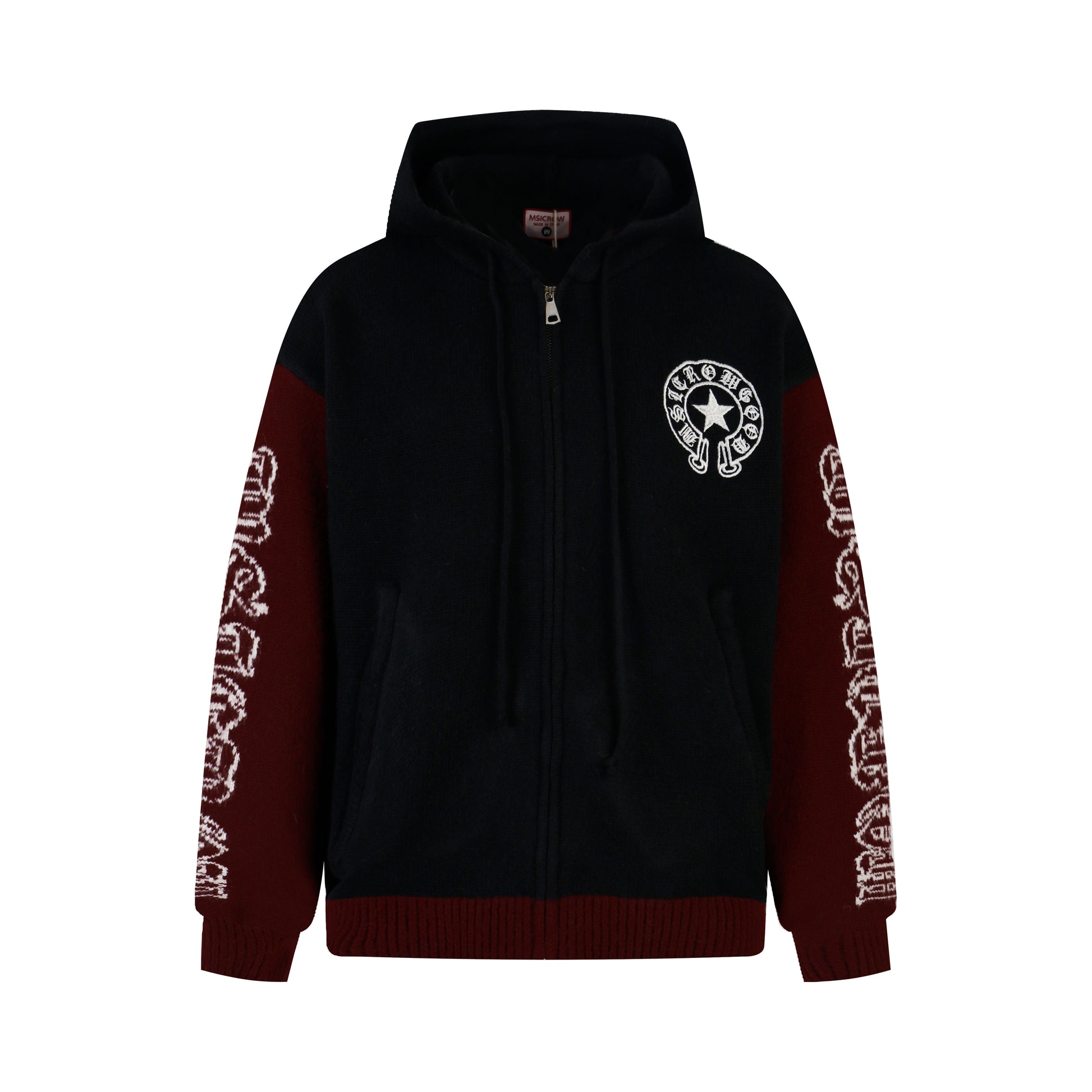 Gothic Letter Jacquard Zip-Up Hooded Sweater