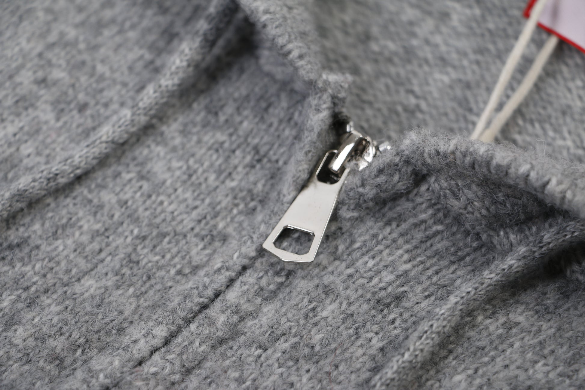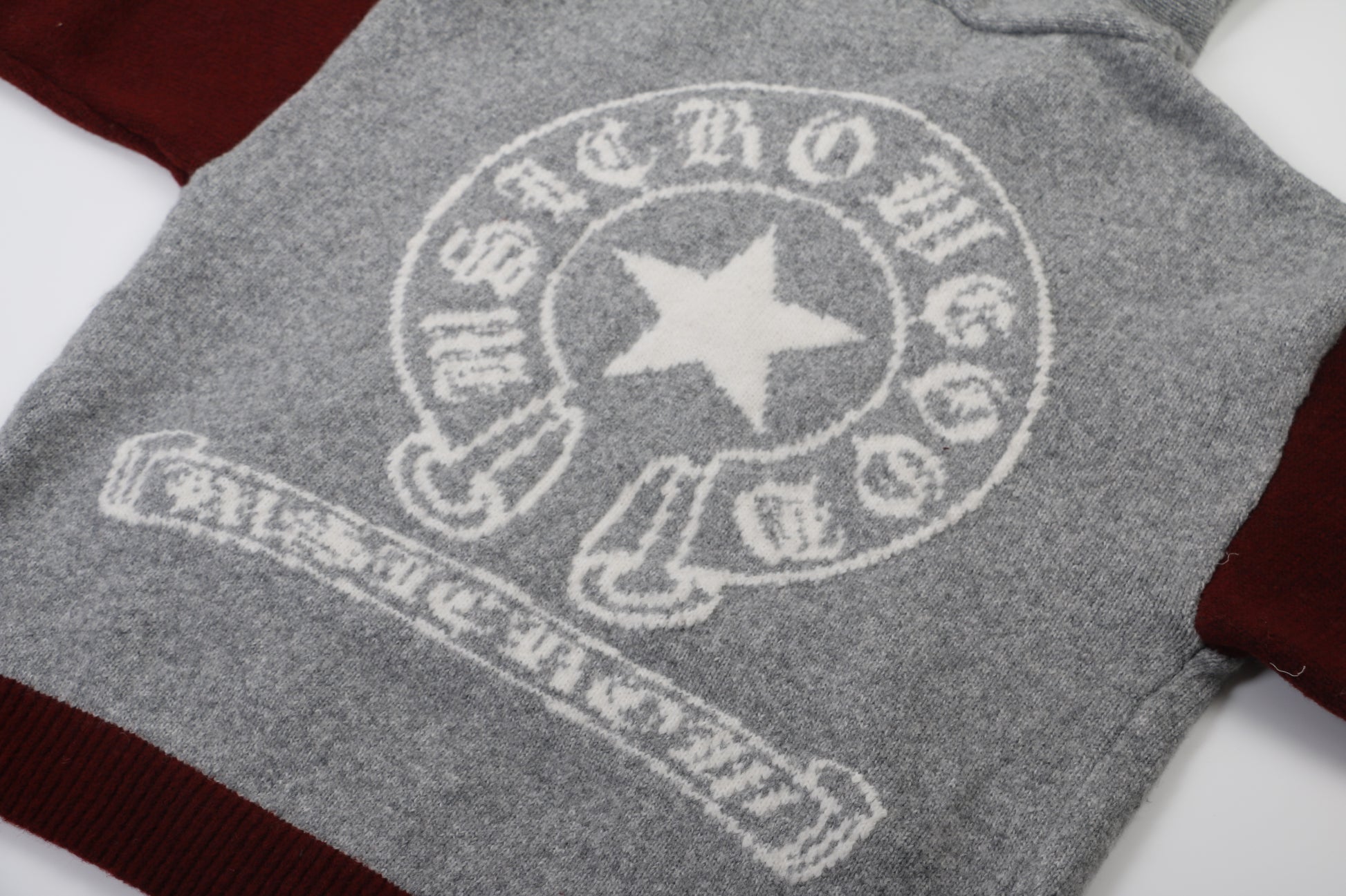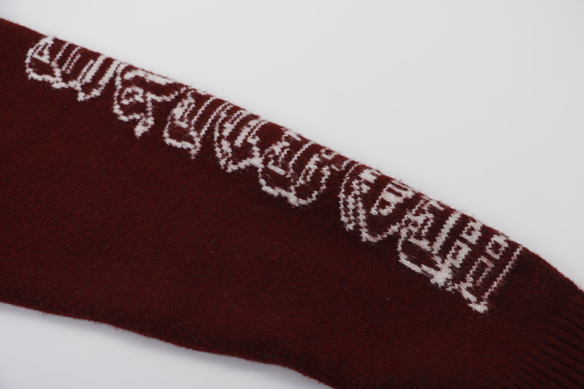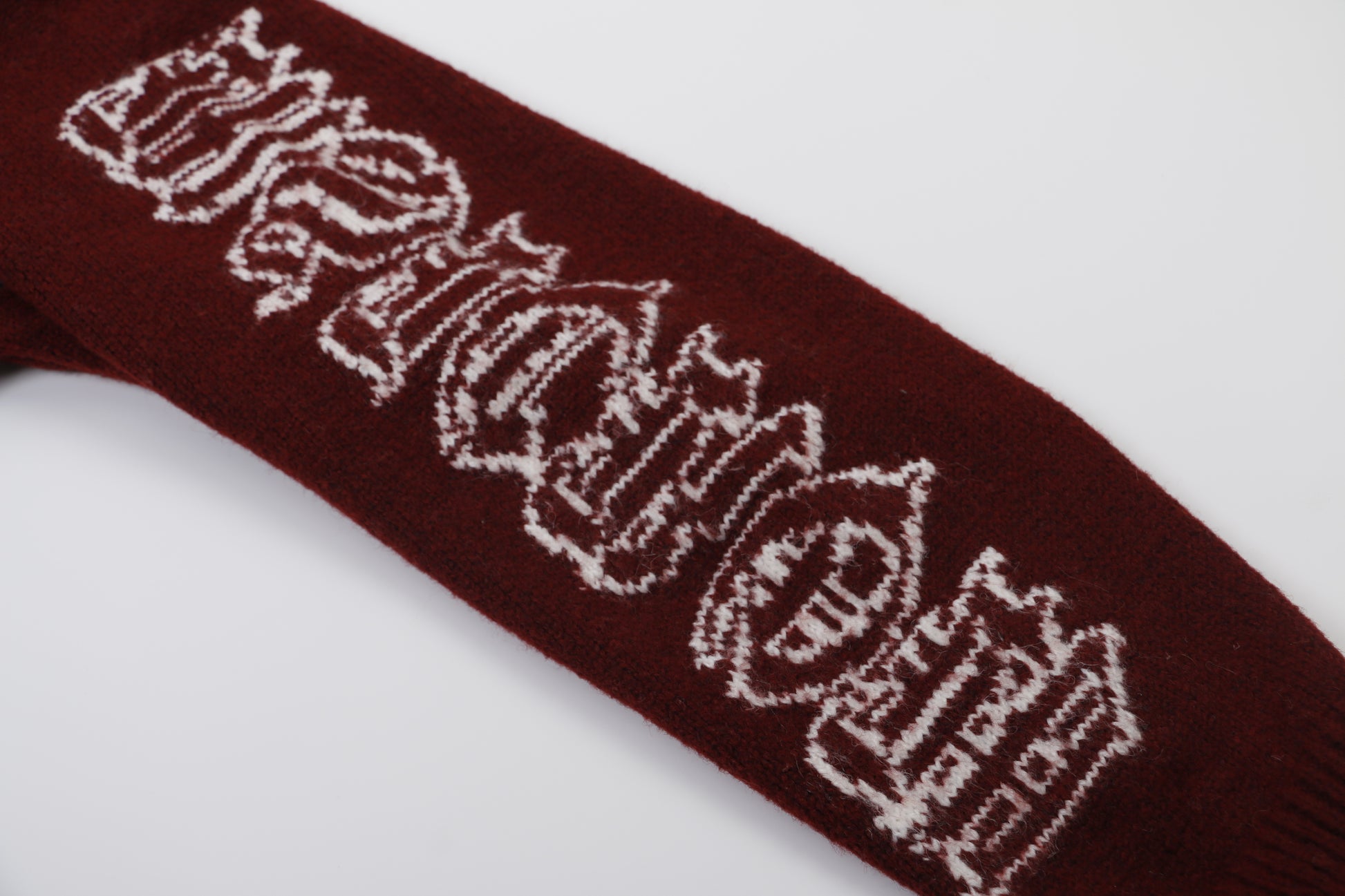 Gothic Letter Jacquard Zip-Up Hooded Sweater