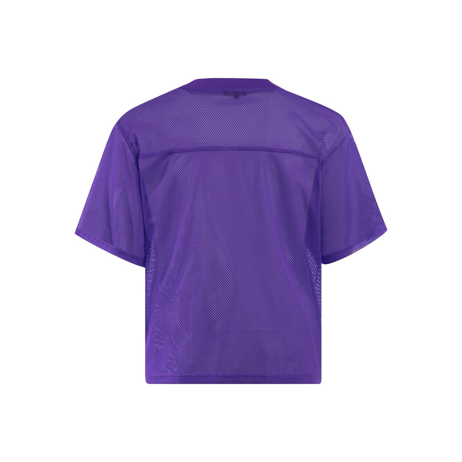 Clothing details: Mesh construction, large varsity “777” print, contrast neckline detailing, relaxed short-sleeve fit.