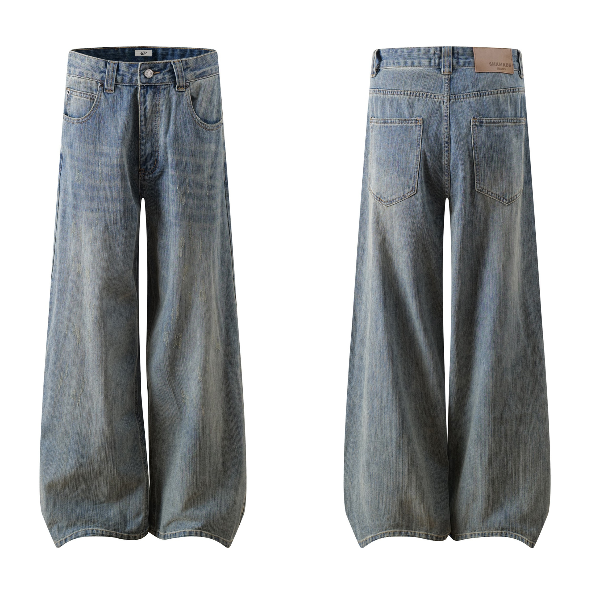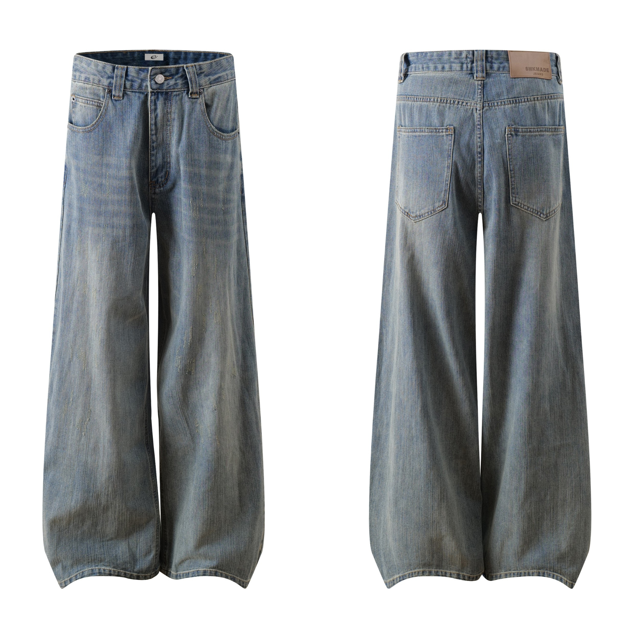 The Omirad Vintage Washed Balloon Wide-Leg Jeans blend classic denim character with a bold modern silhouette. Featuring a dramatic balloon-style wide leg, these jeans create a sculpted, voluminous shape while maintaining a smooth vintage drape. The light blue wash, subtle whiskering, and distressed touches add authentic worn-in texture. Finished with a traditional five-pocket setup and structured waistband, this piece elevates everyday streetwear with effortless retro energy.
