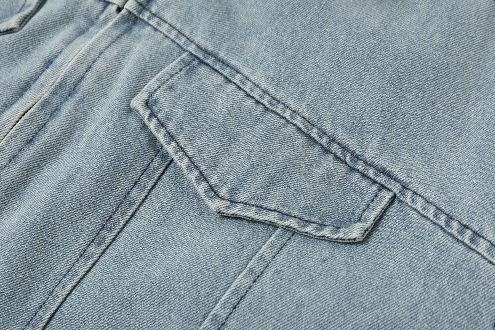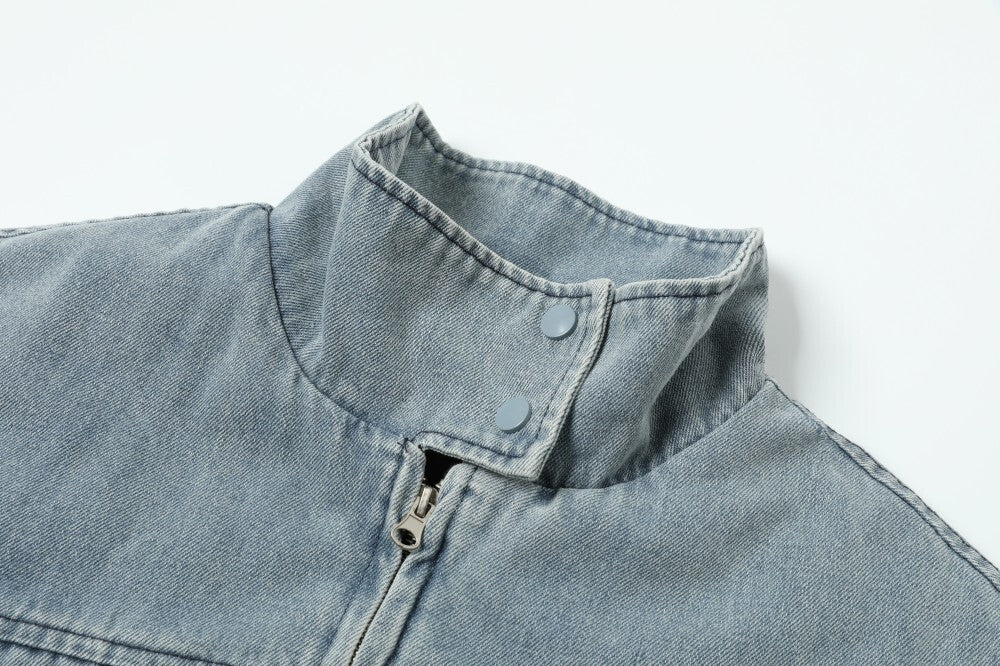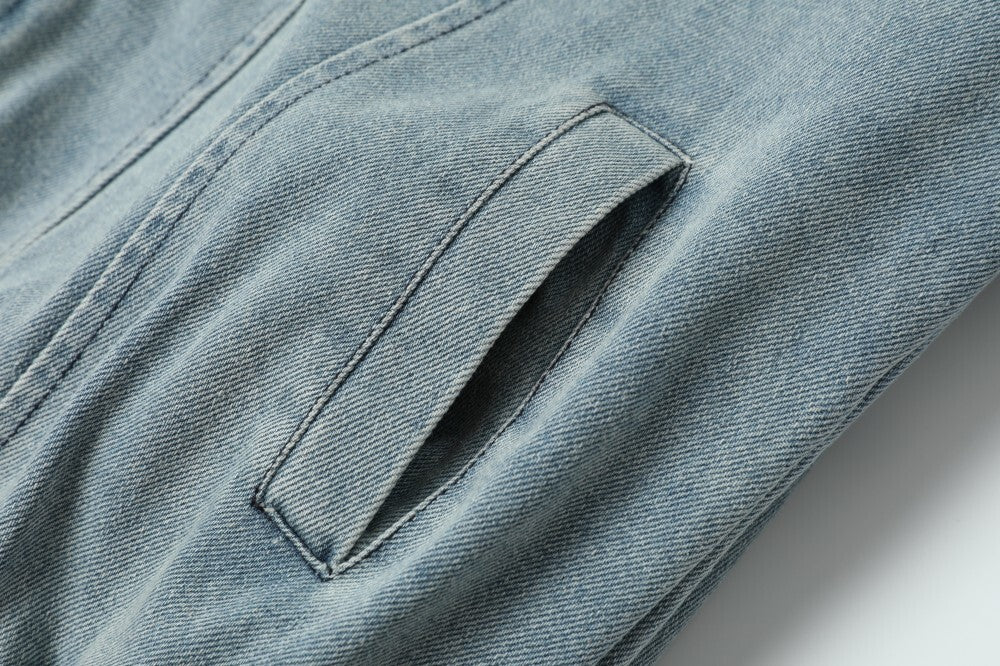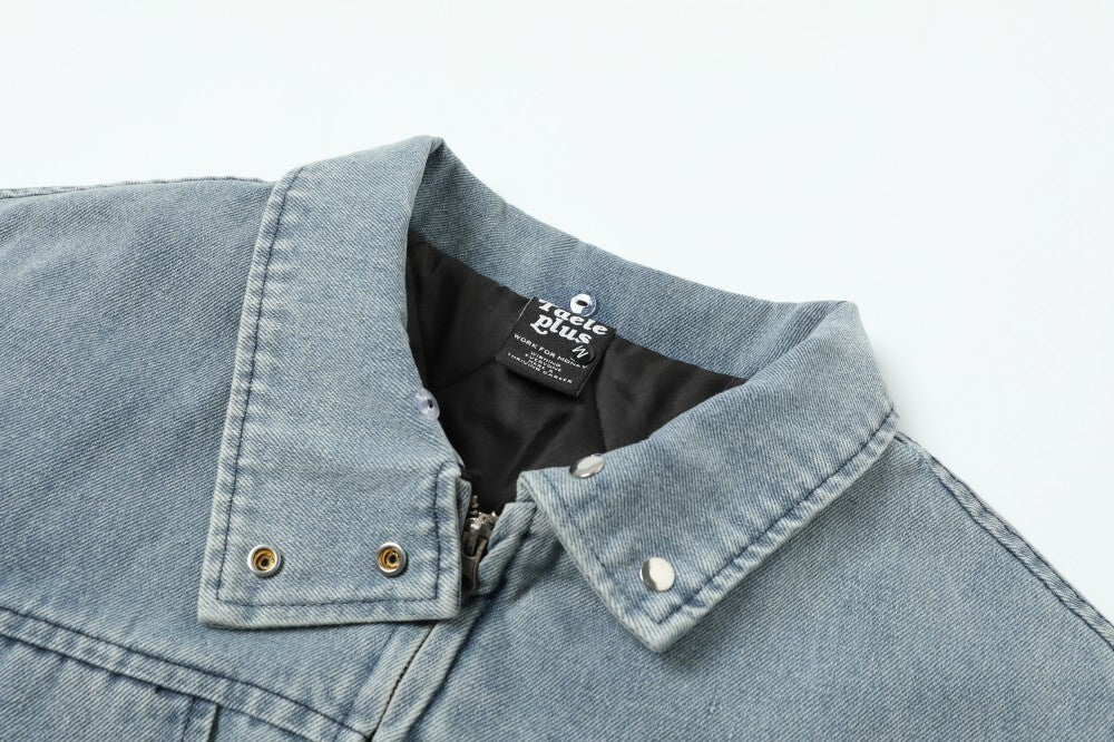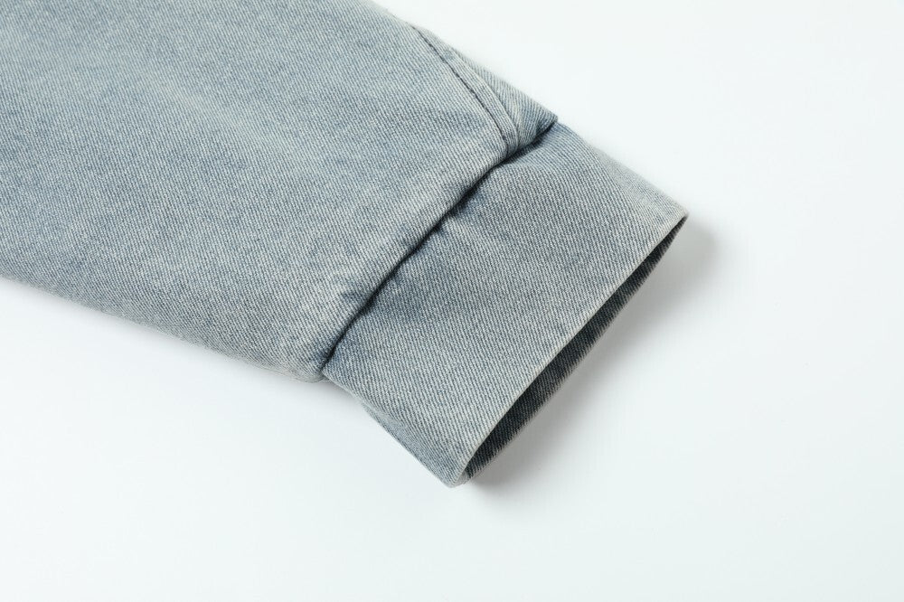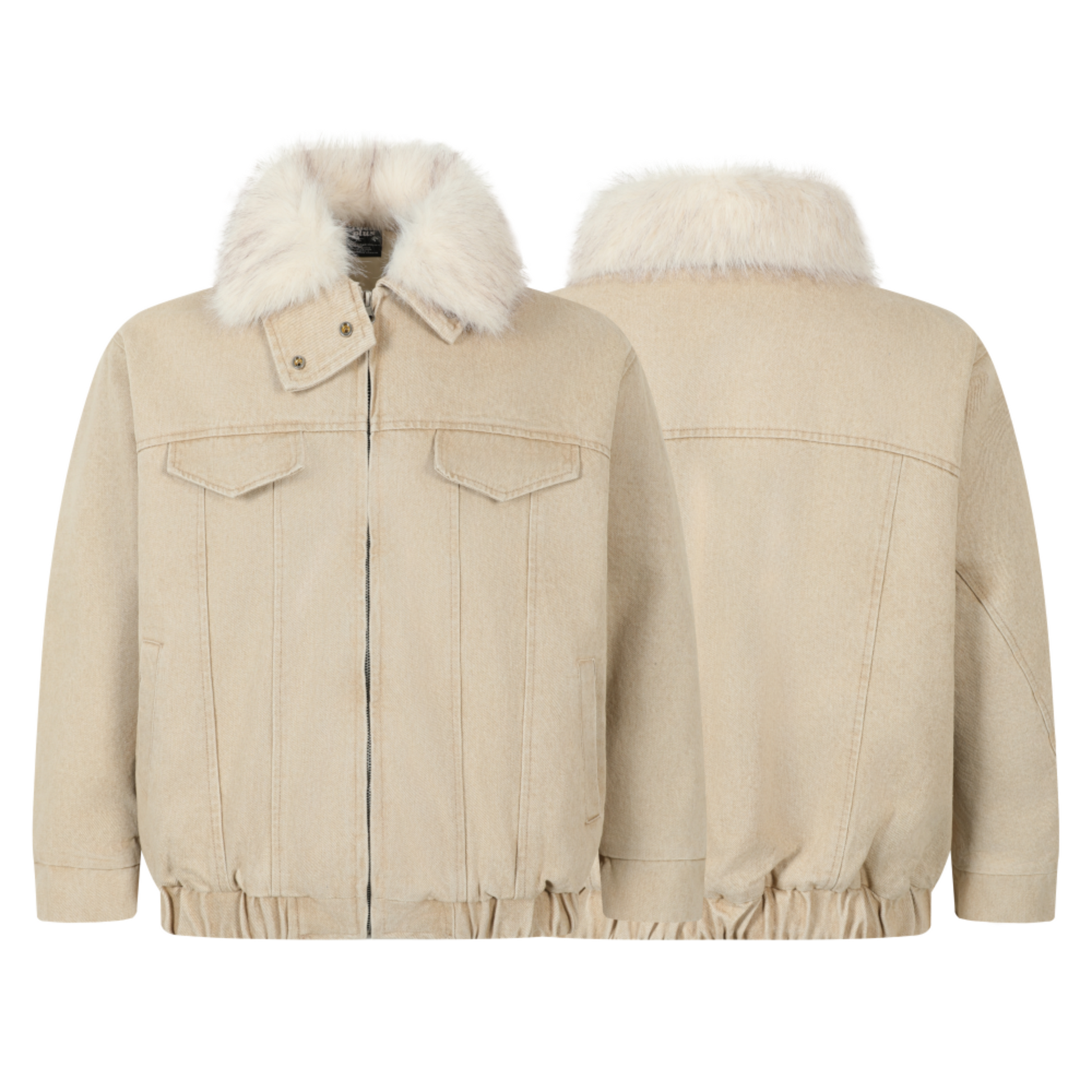 High-Street Detachable Fur Collar Washed Denim Padded Jacket