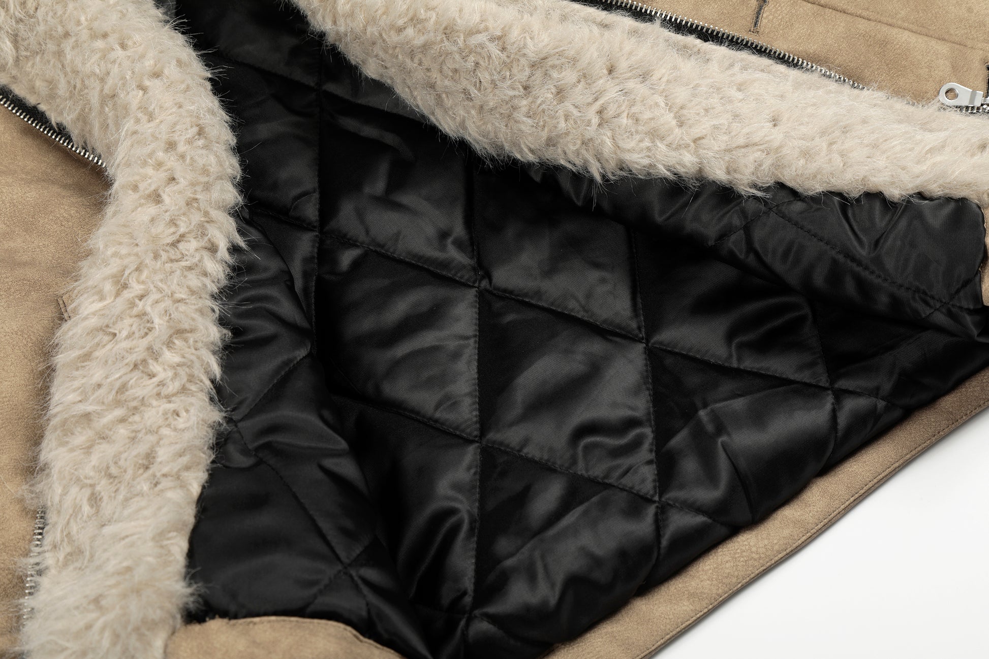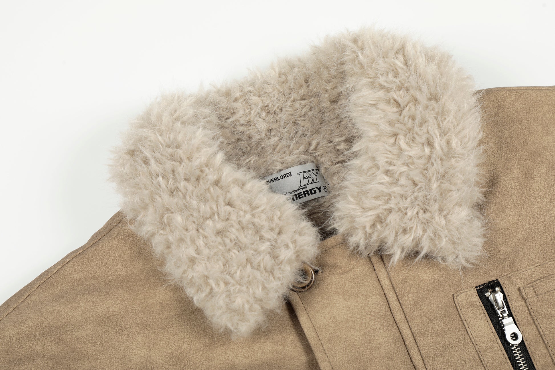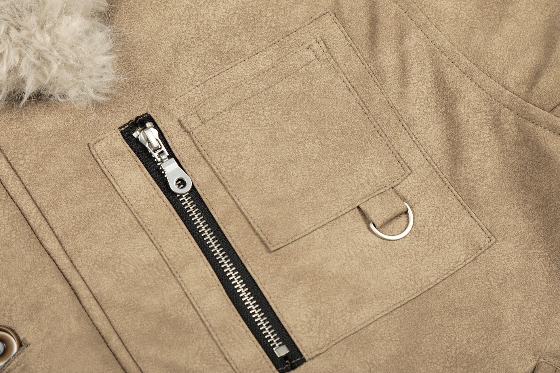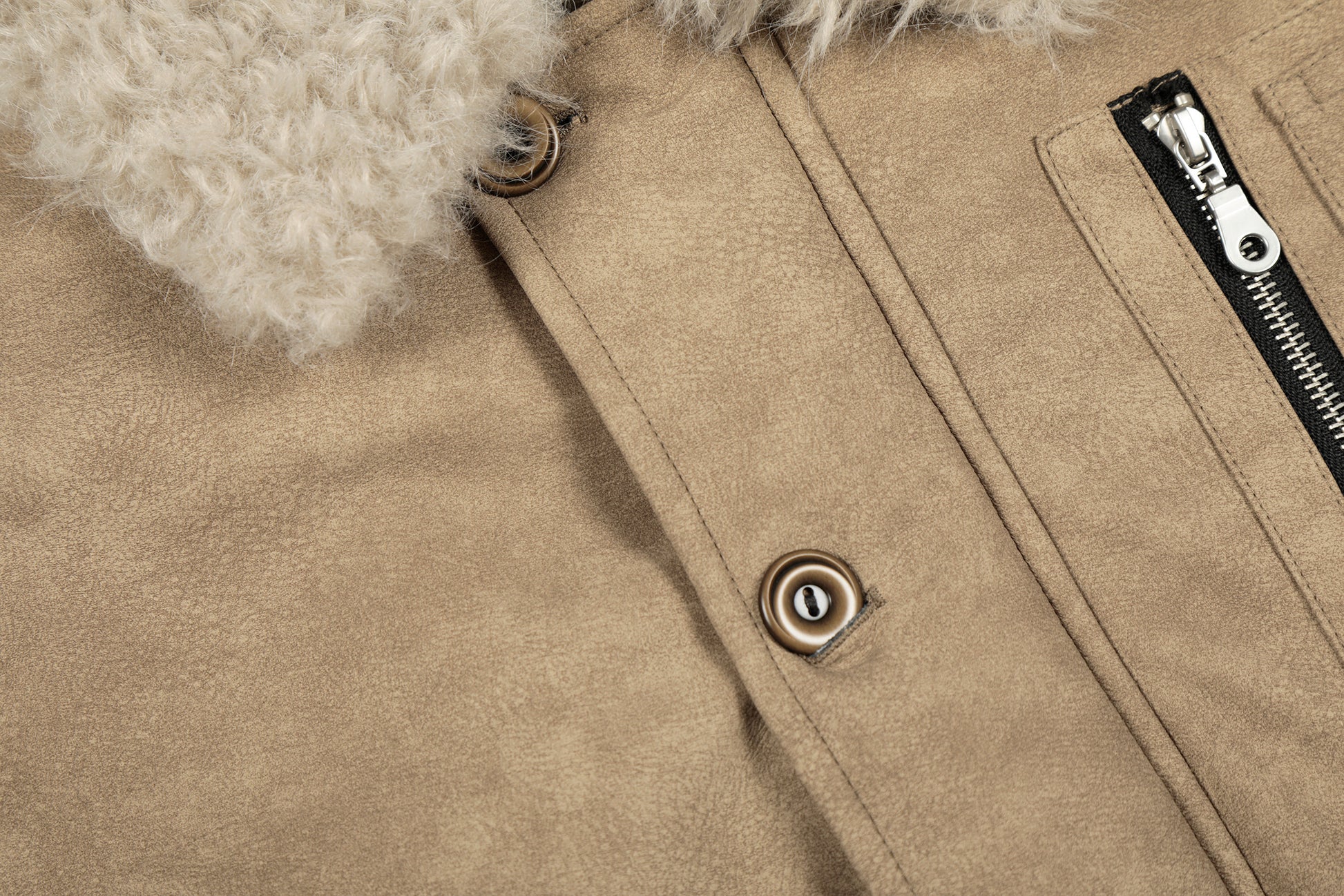 High-Street PU Leather Faux-Fur Collar Padded Bomber Jacket