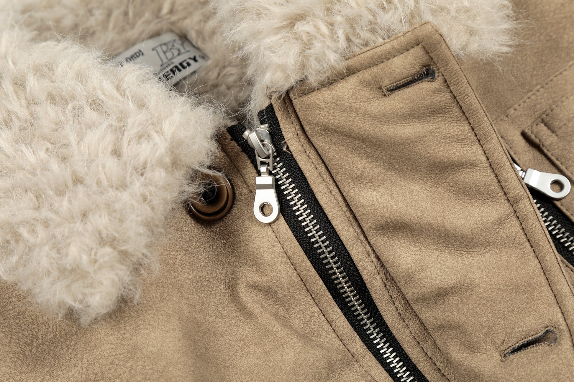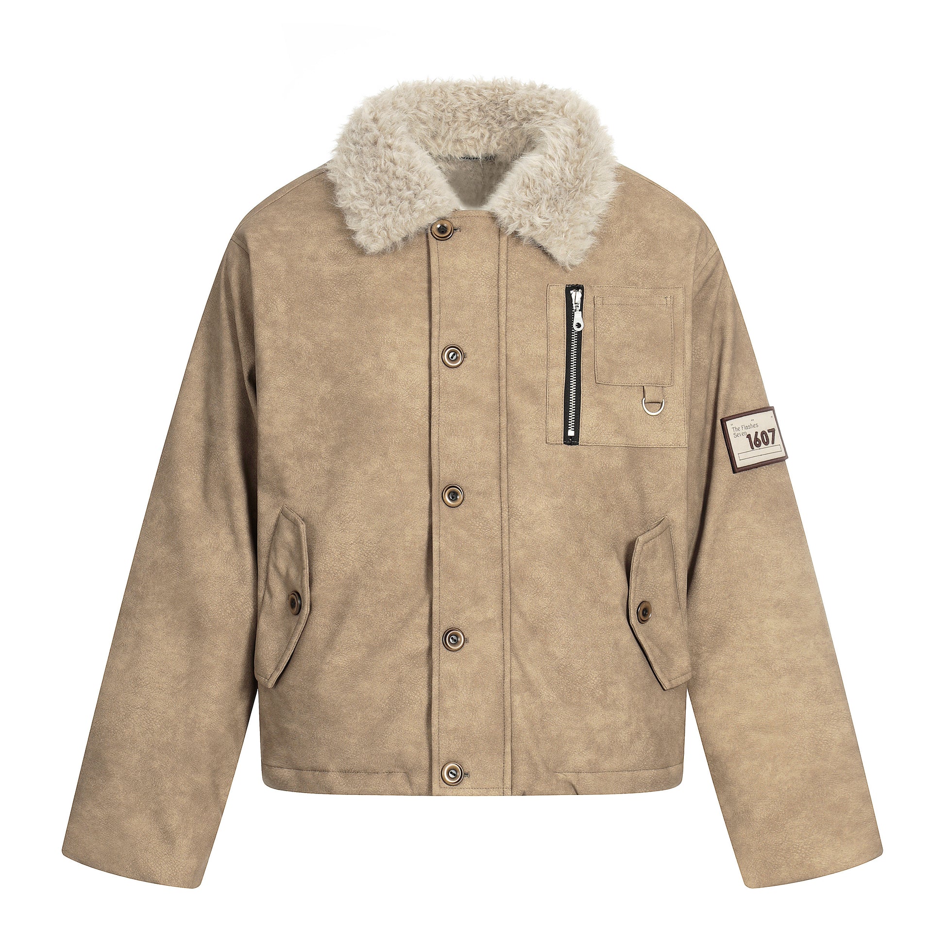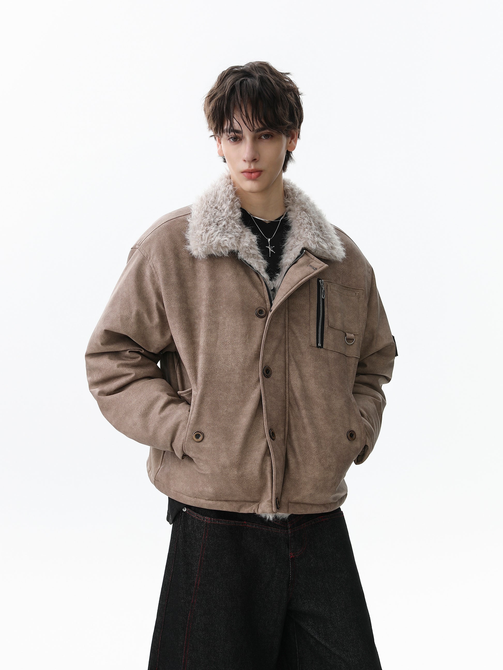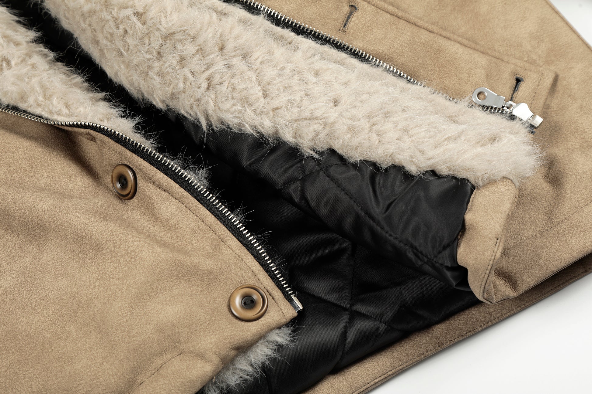 High-Street PU Leather Faux-Fur Collar Padded Bomber Jacket