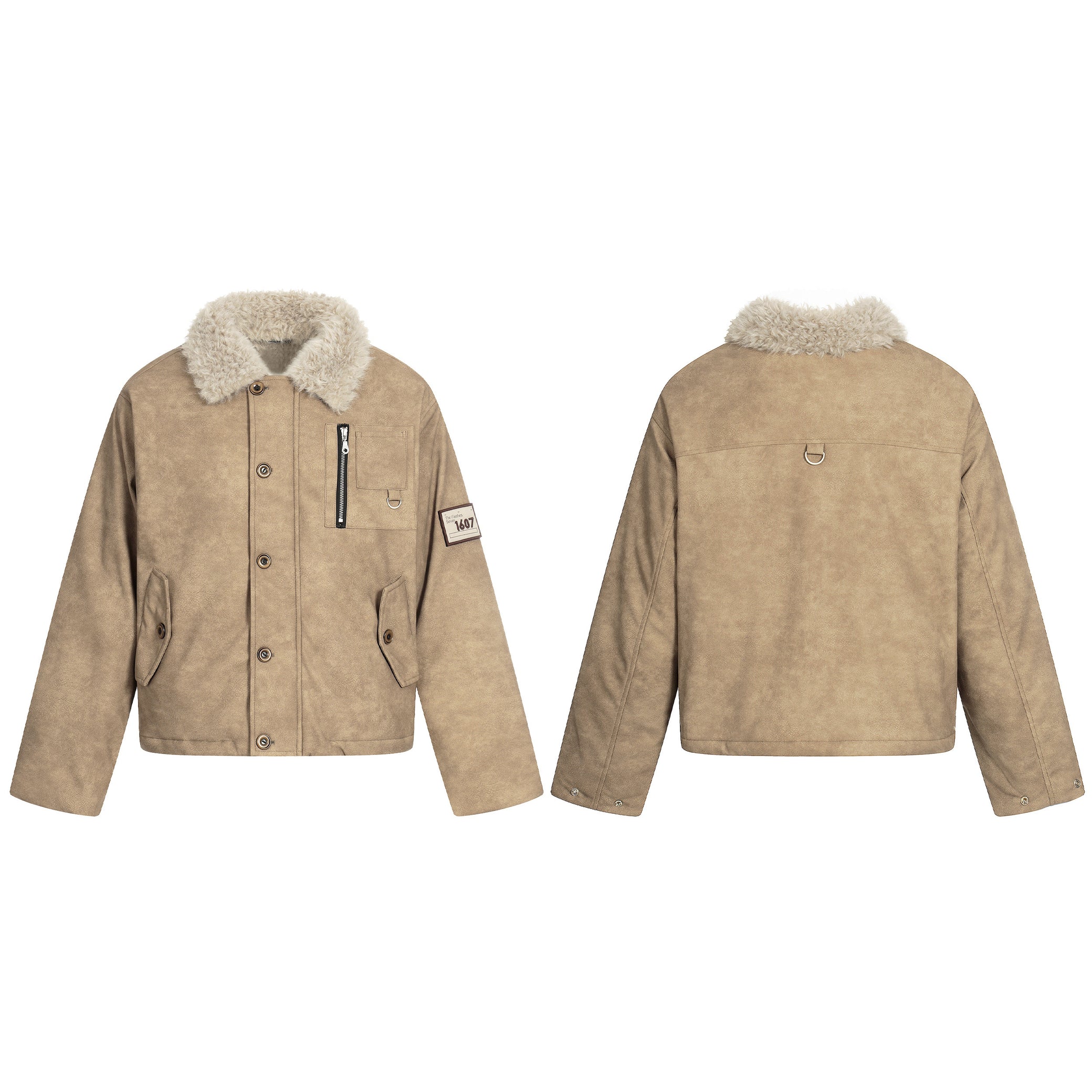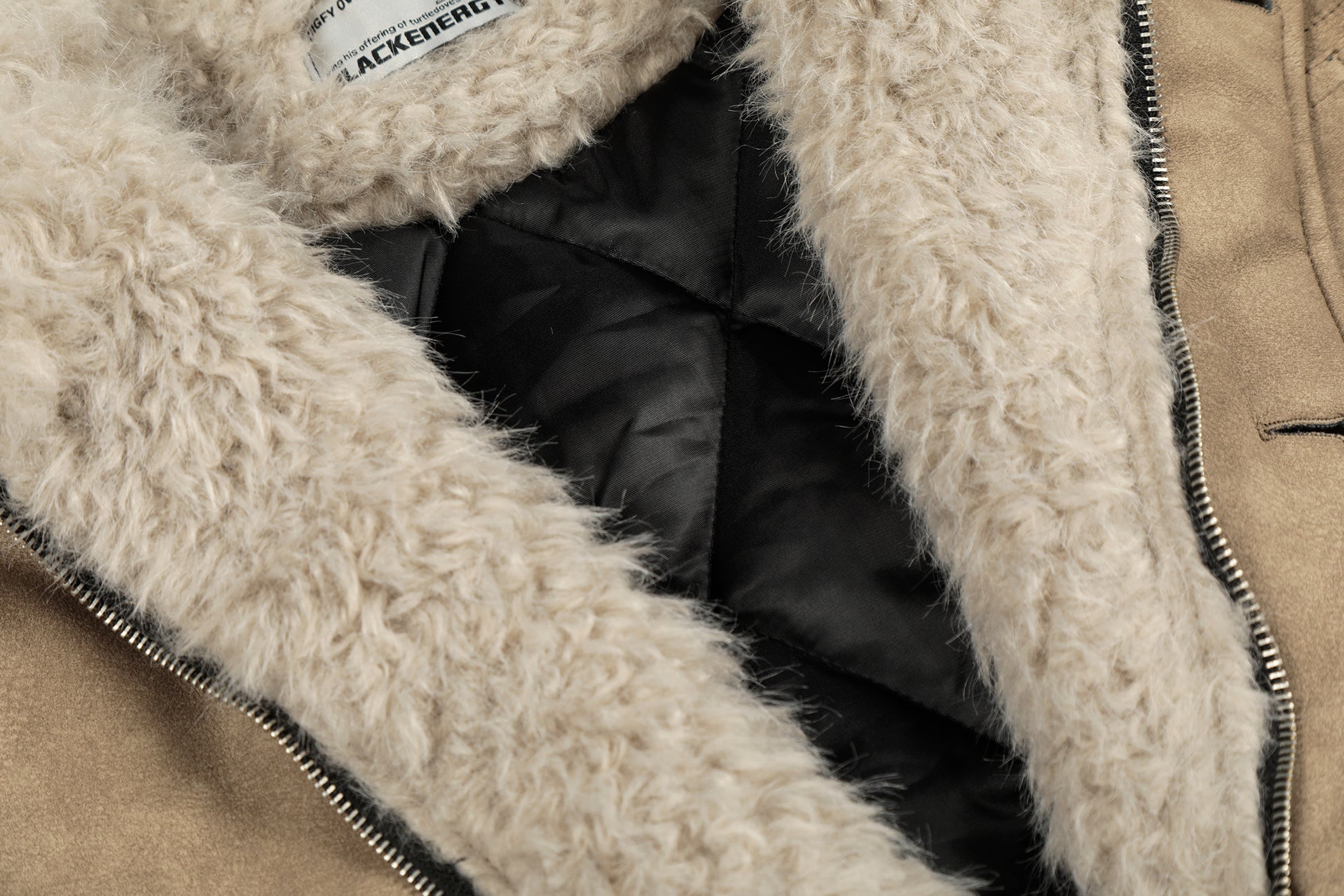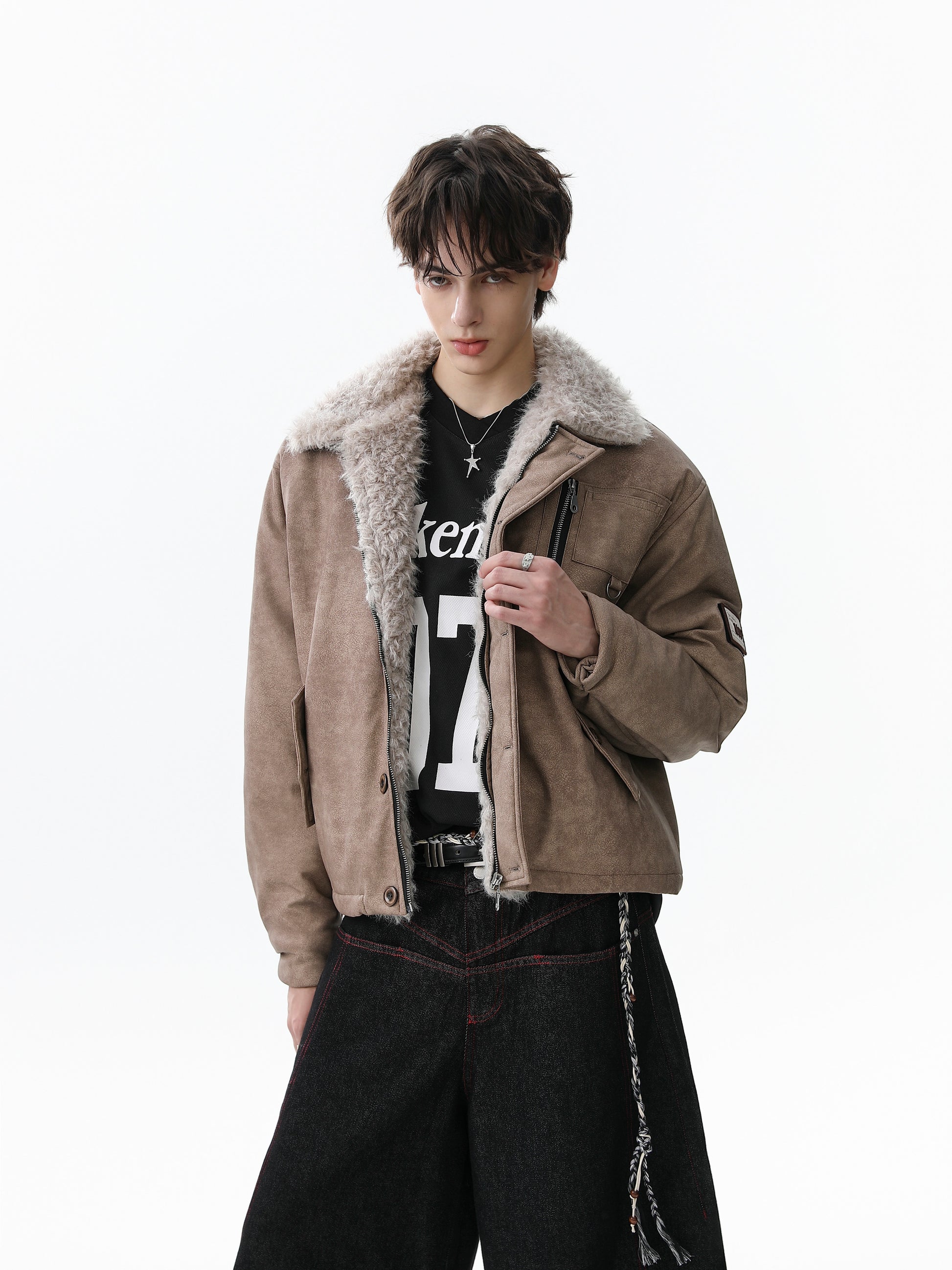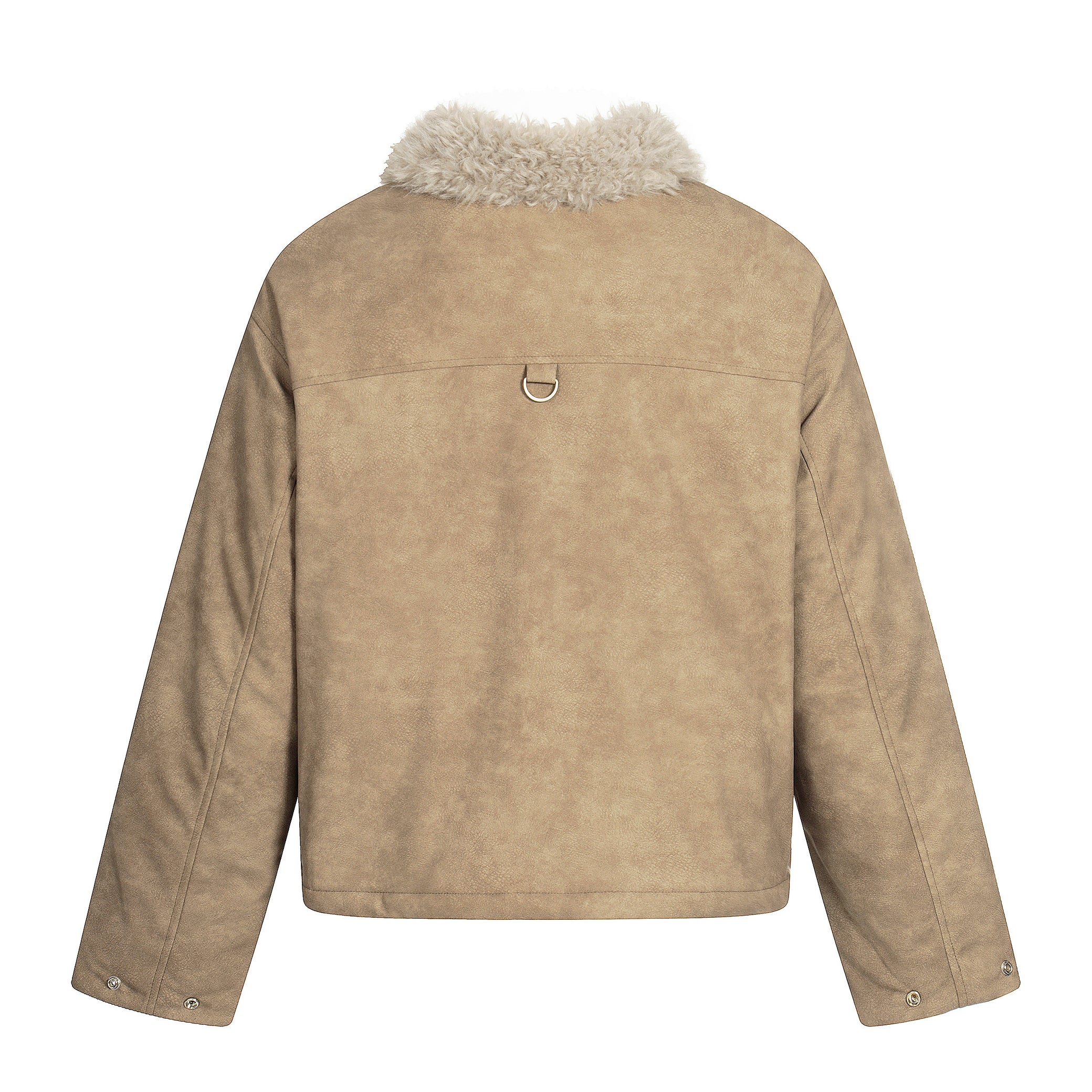 High-Street PU Leather Faux-Fur Collar Padded Bomber Jacket
