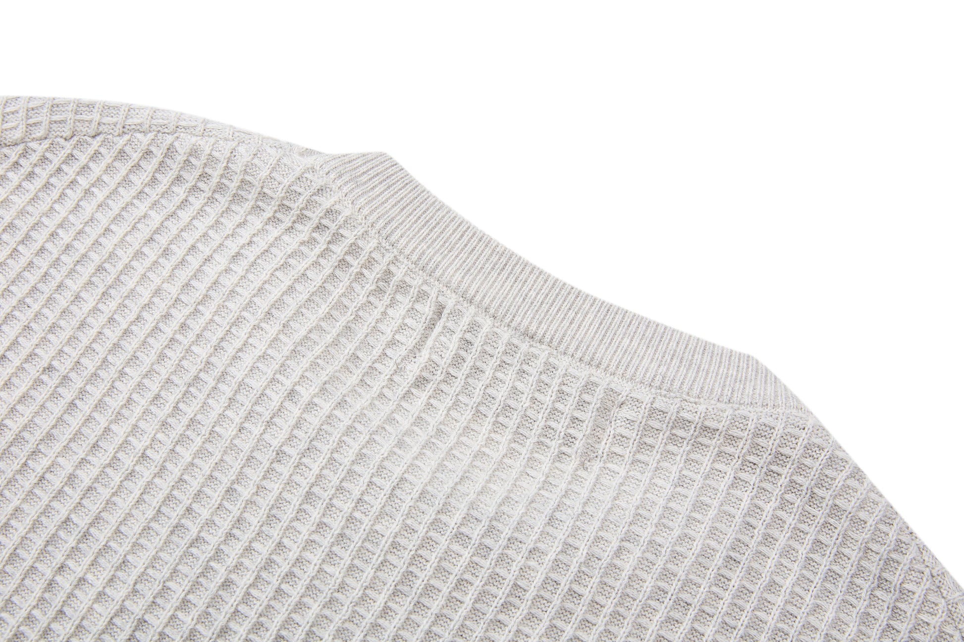 Clothing details: Waffle knit texture, ribbed neckline and hems, breathable midweight knit, relaxed modern fit