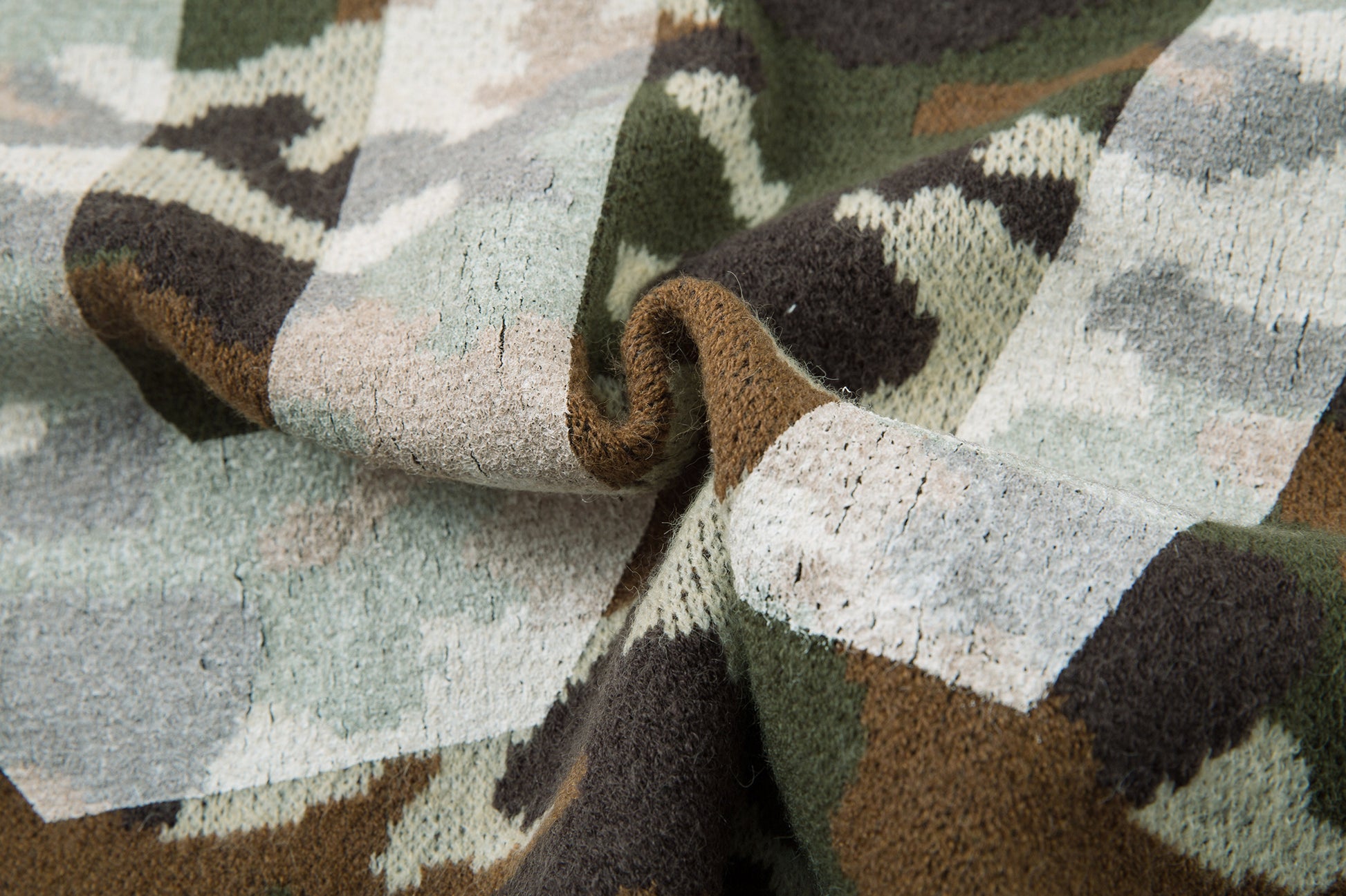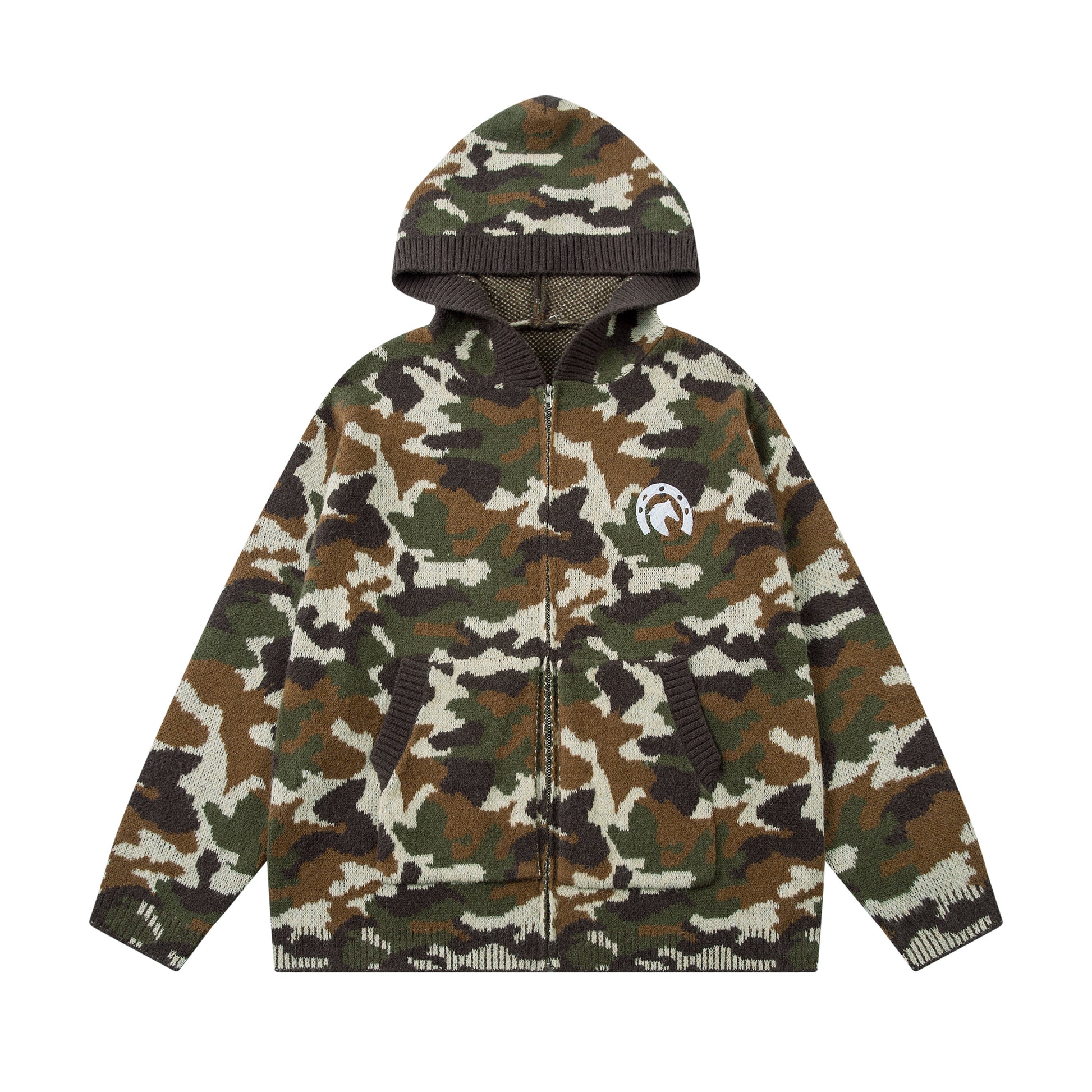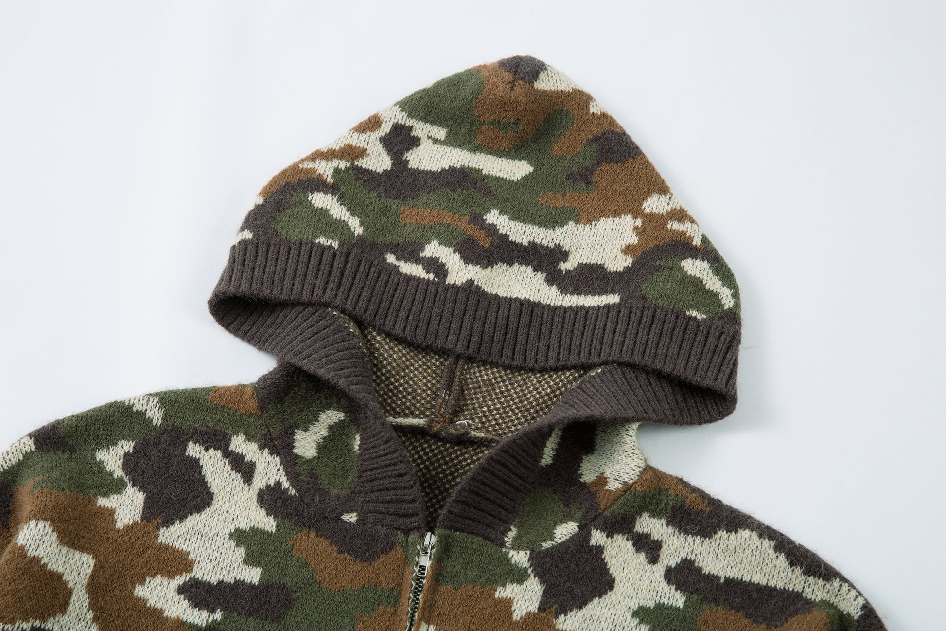 Clothing details: Knit camo pattern, large “07” back graphic, ribbed cuffs and hem, hooded design, relaxed fit.