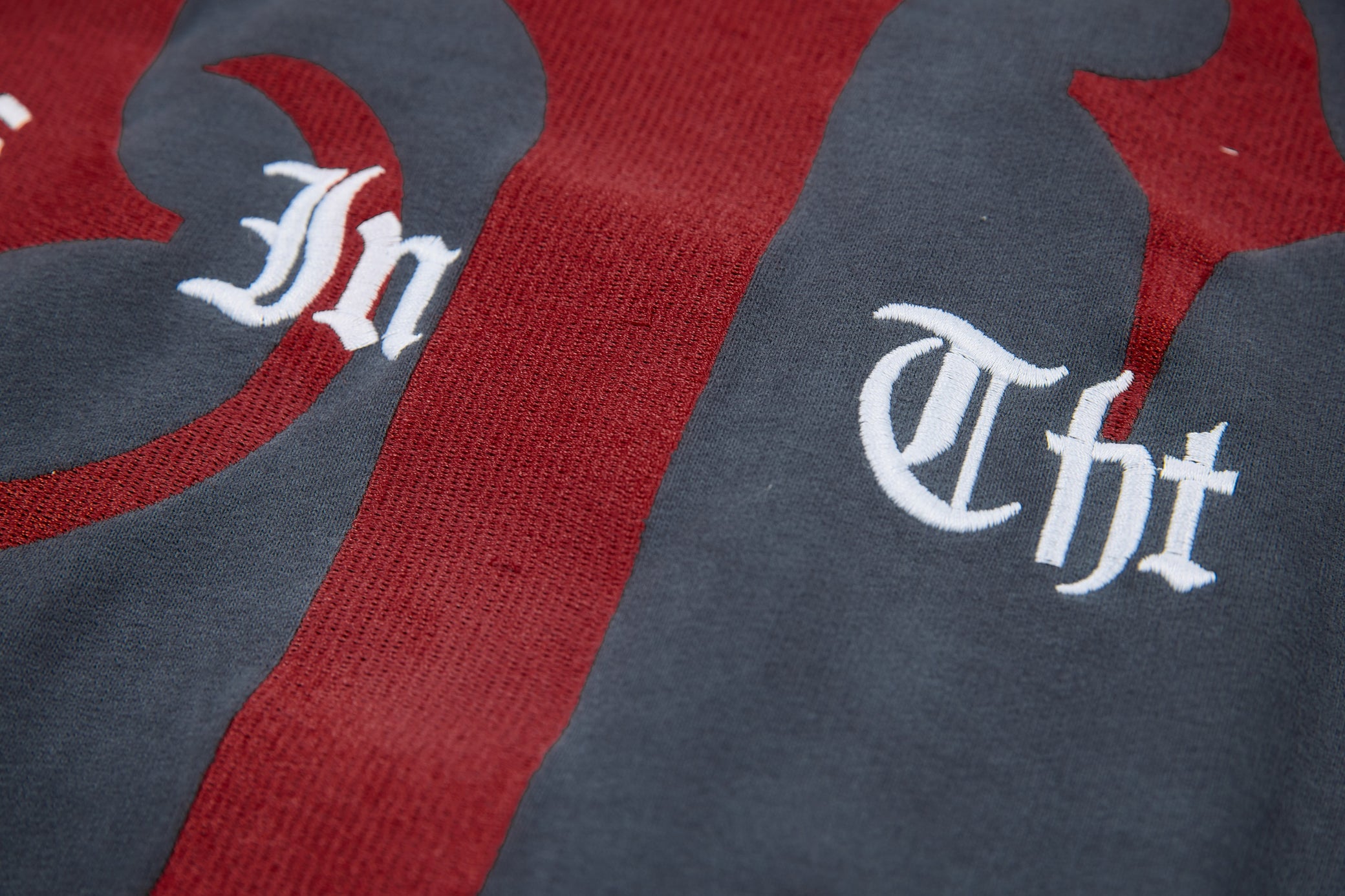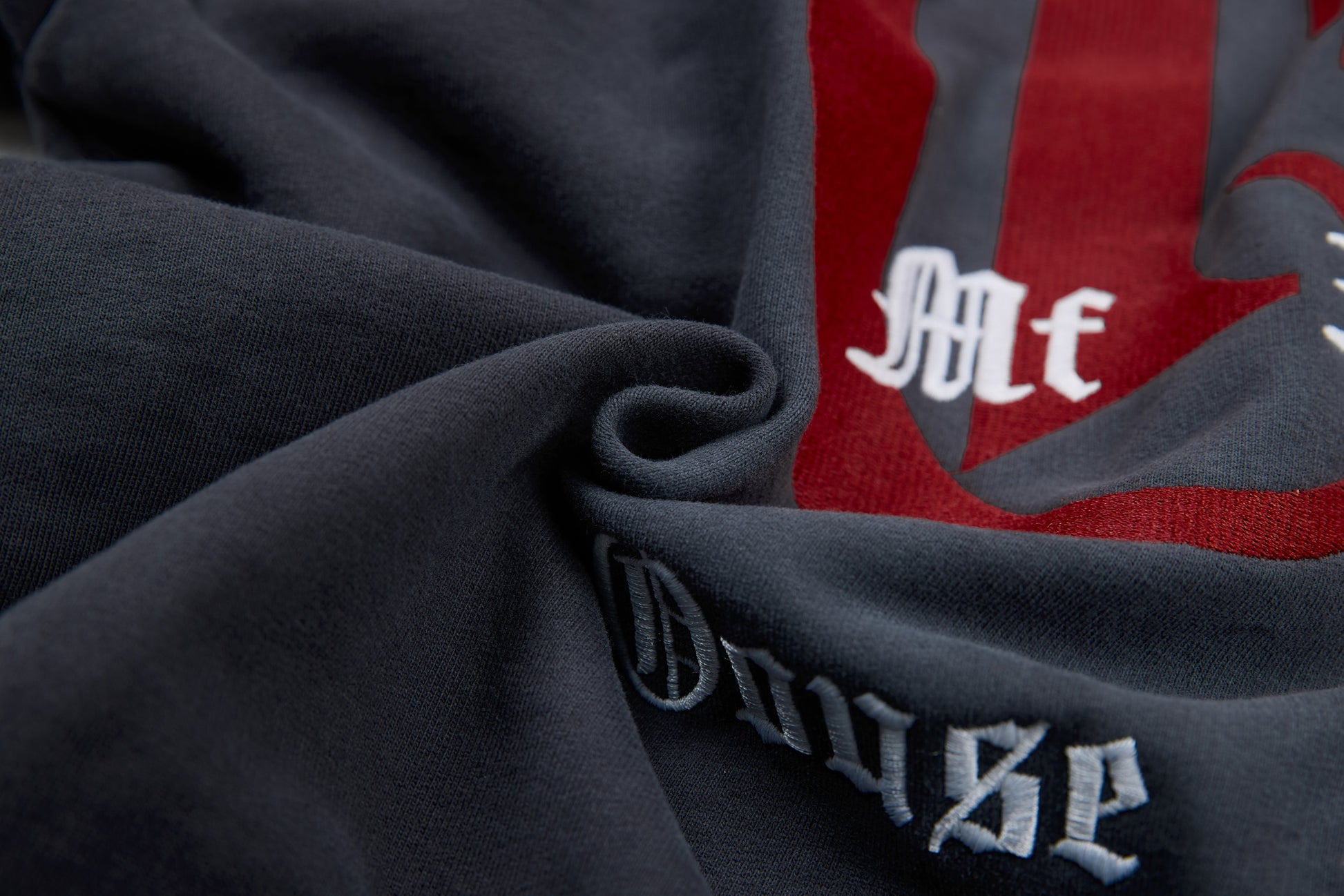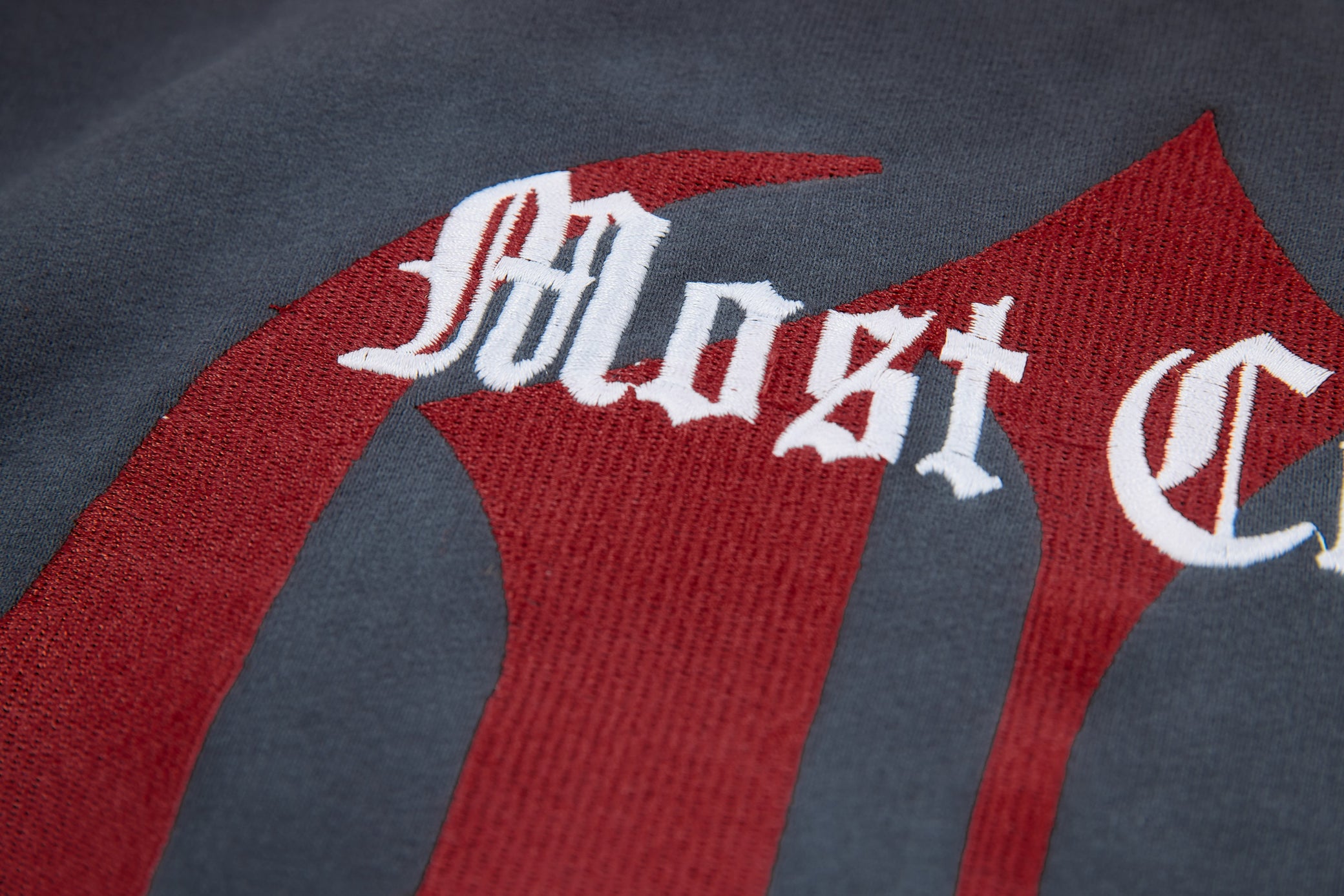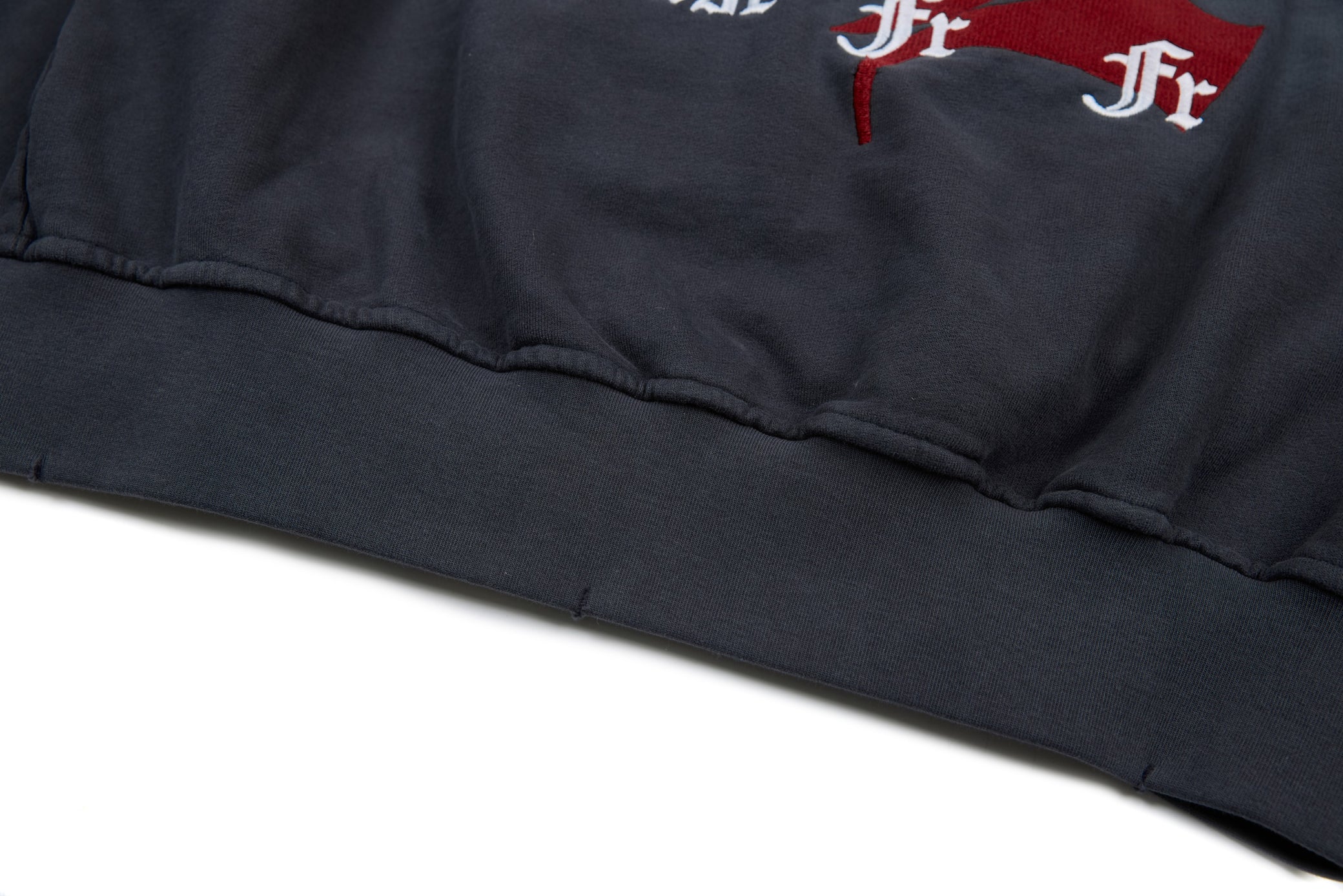 The washed charcoal tone adds a vintage effect, while the standout red “47” applique on the chest gives the piece a distinct identity. Finished with a full-length zipper, ribbed cuffs, and a spacious kangaroo pocket, it’s designed for everyday comfort with a strong streetwear edge.
