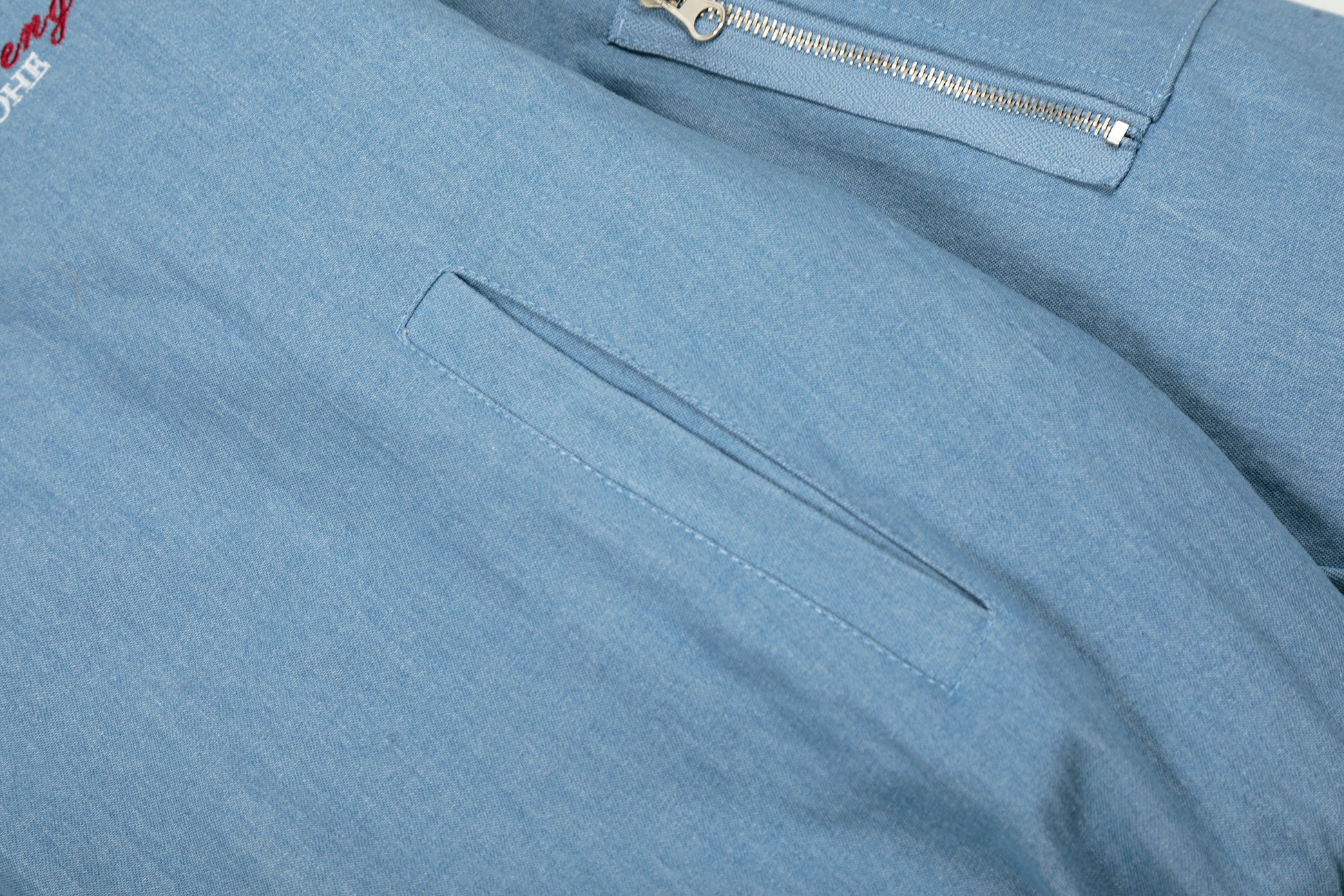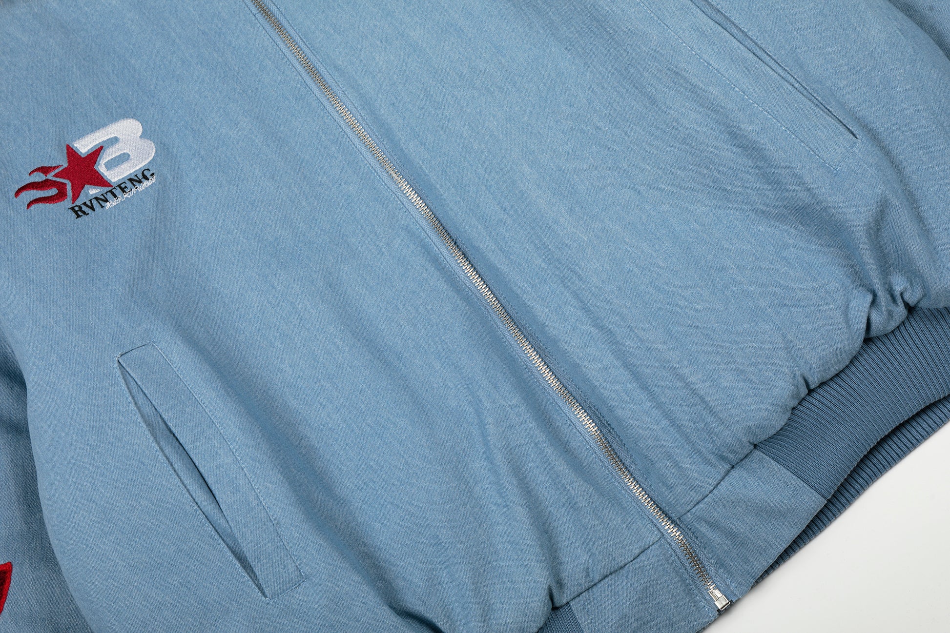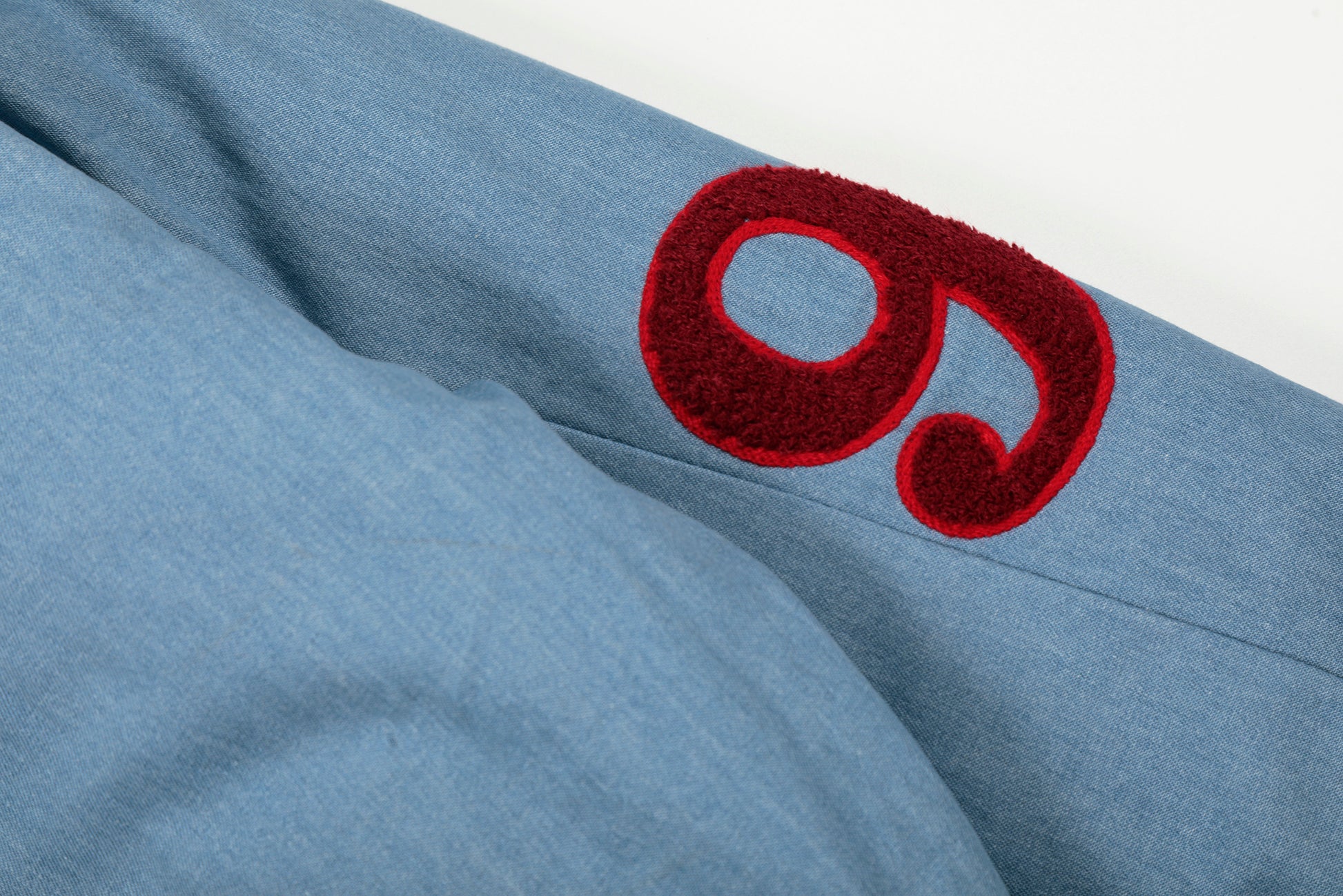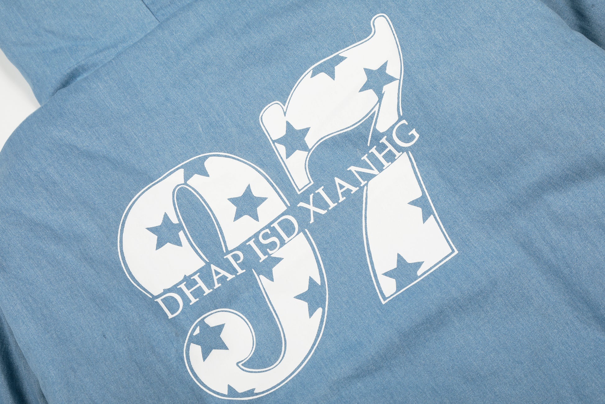 The Omirad “97 Denim Varsity Hooded Jacket” merges retro varsity aesthetics with streetwear attitude. Crafted from 100% cotton, this jacket features a cozy faux fur lining for superior warmth and comfort. The light-wash denim body delivers a vintage feel, while the embroidered “97” graphic and bold sleeve numbers channel classic collegiate energy. Finished with ribbed cuffs, a zip-up front, and an oversized hood, it’s designed for both function and everyday statement style.