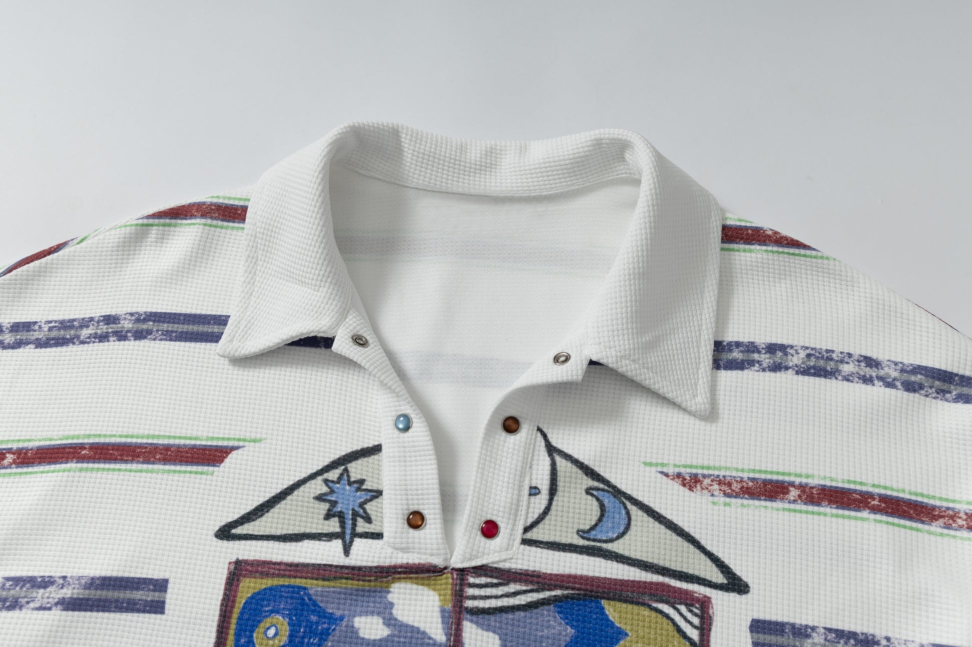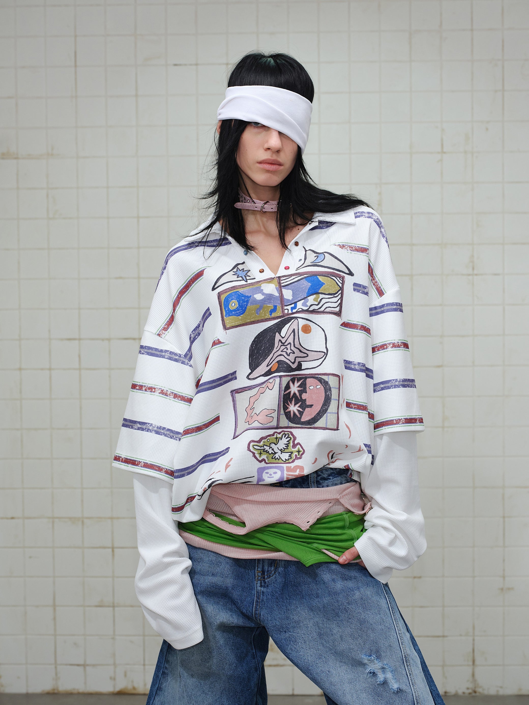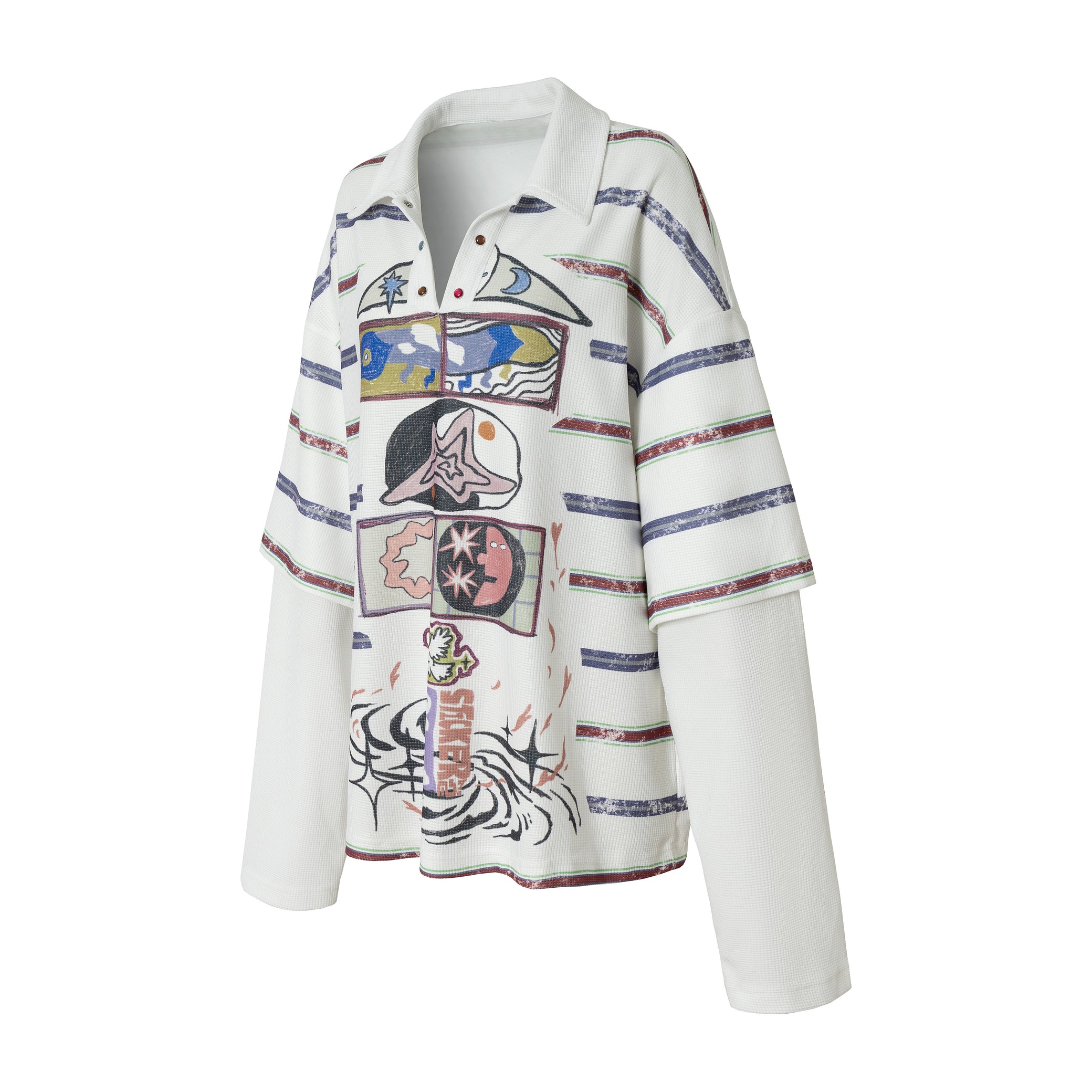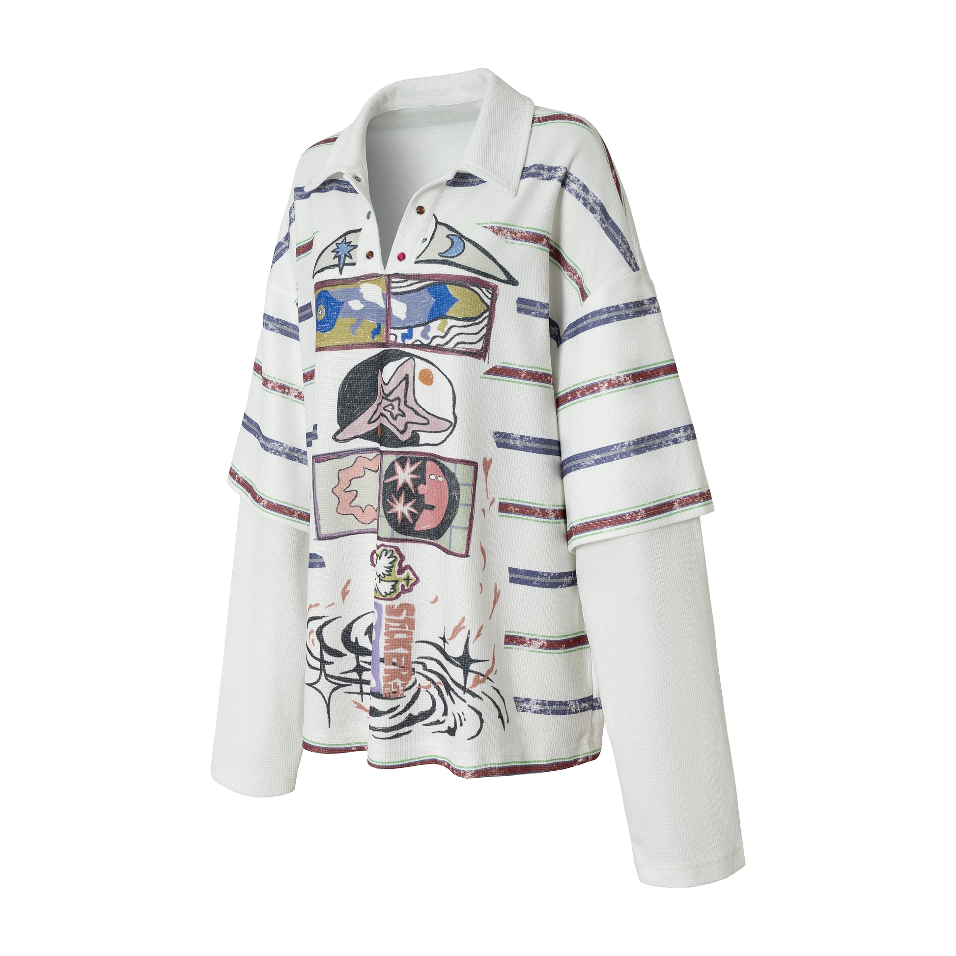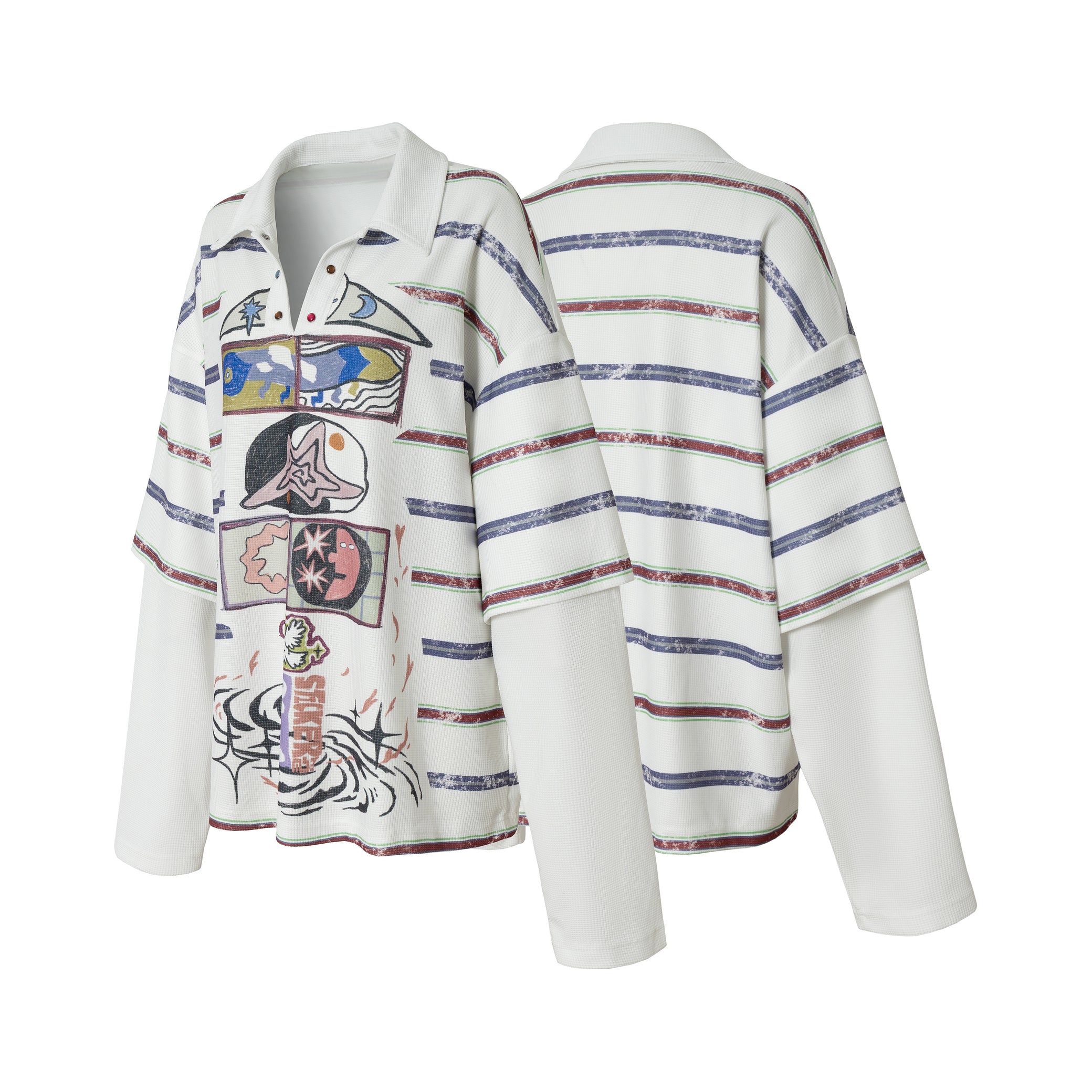 The Omirad Abstract Stripe Long-Sleeve Polo Shirt features an artistic front graphic layered over subtle horizontal stripes for a relaxed yet expressive streetwear look. Designed to elevate everyday outfits, this piece blends a loose silhouette with soft stretch and fluid drape, making it ideal for effortless styling.