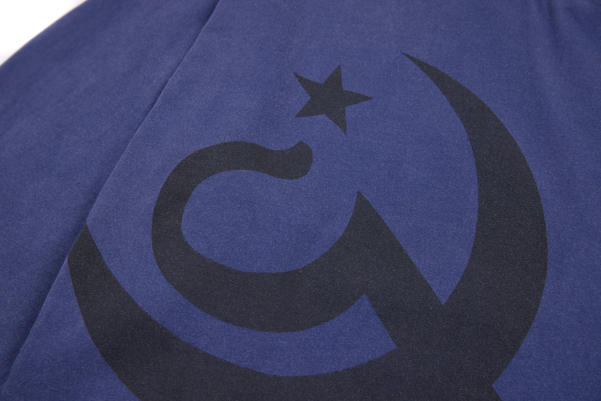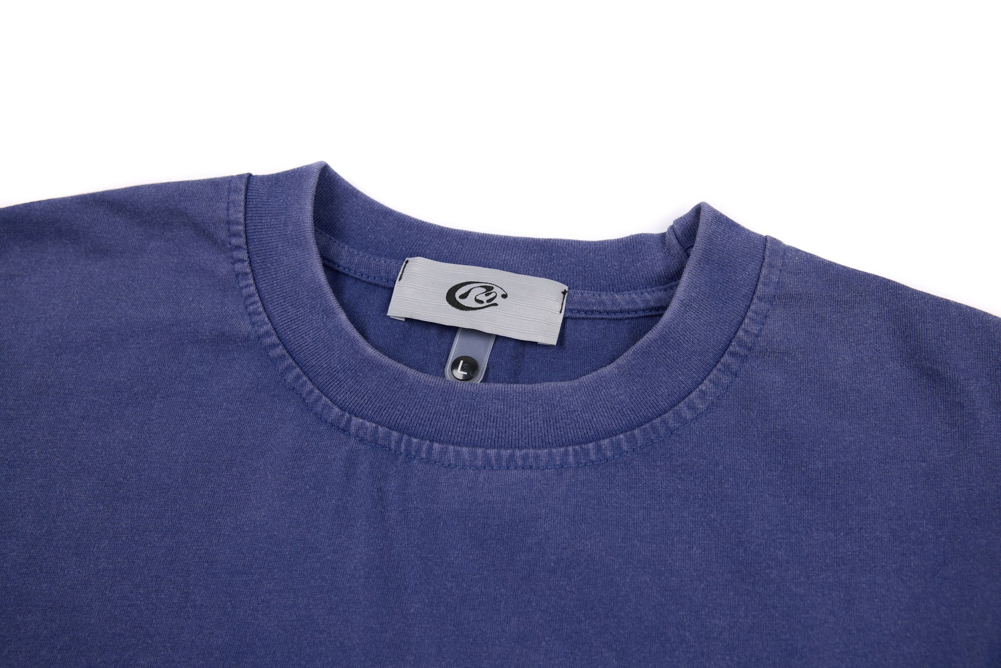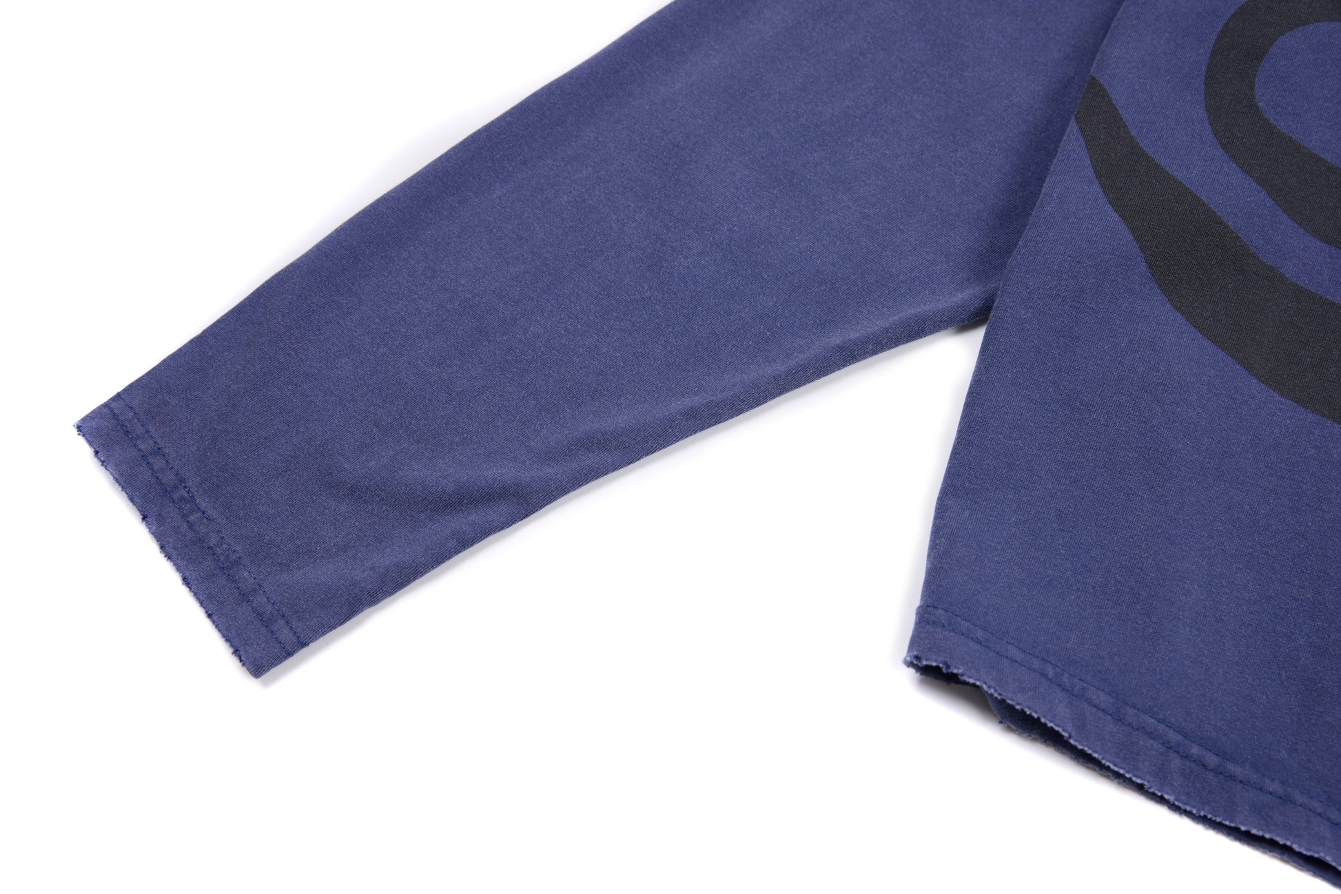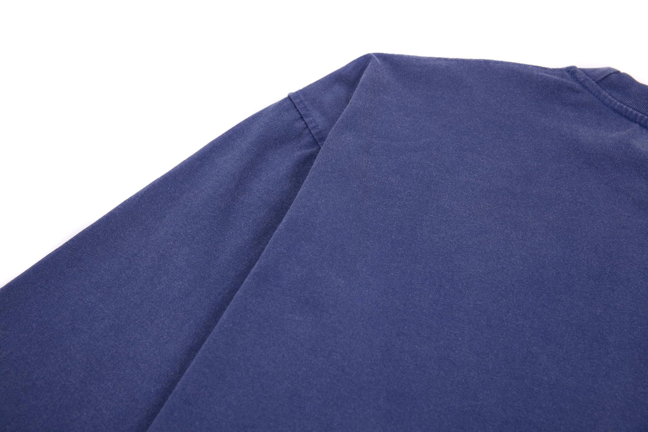 The Omirad Archival Graphic Heavyweight Long Sleeve brings a raw, vintage street vibe with a bold oversized front print and a washed-down indigo tone. The cropped, boxy silhouette hits that modern streetwear proportion, while the large black emblem graphic gives it a mysterious, archival energy — the kind of symbol that looks like it came off an old poster or underground crew tee.