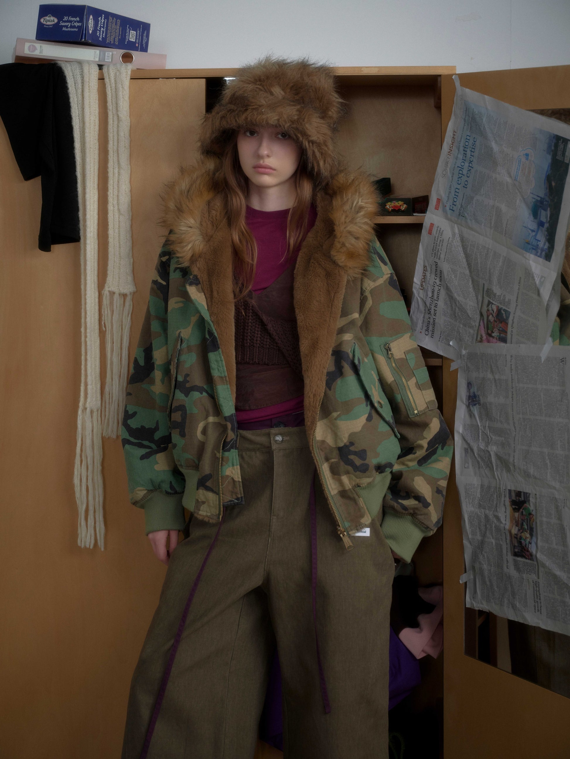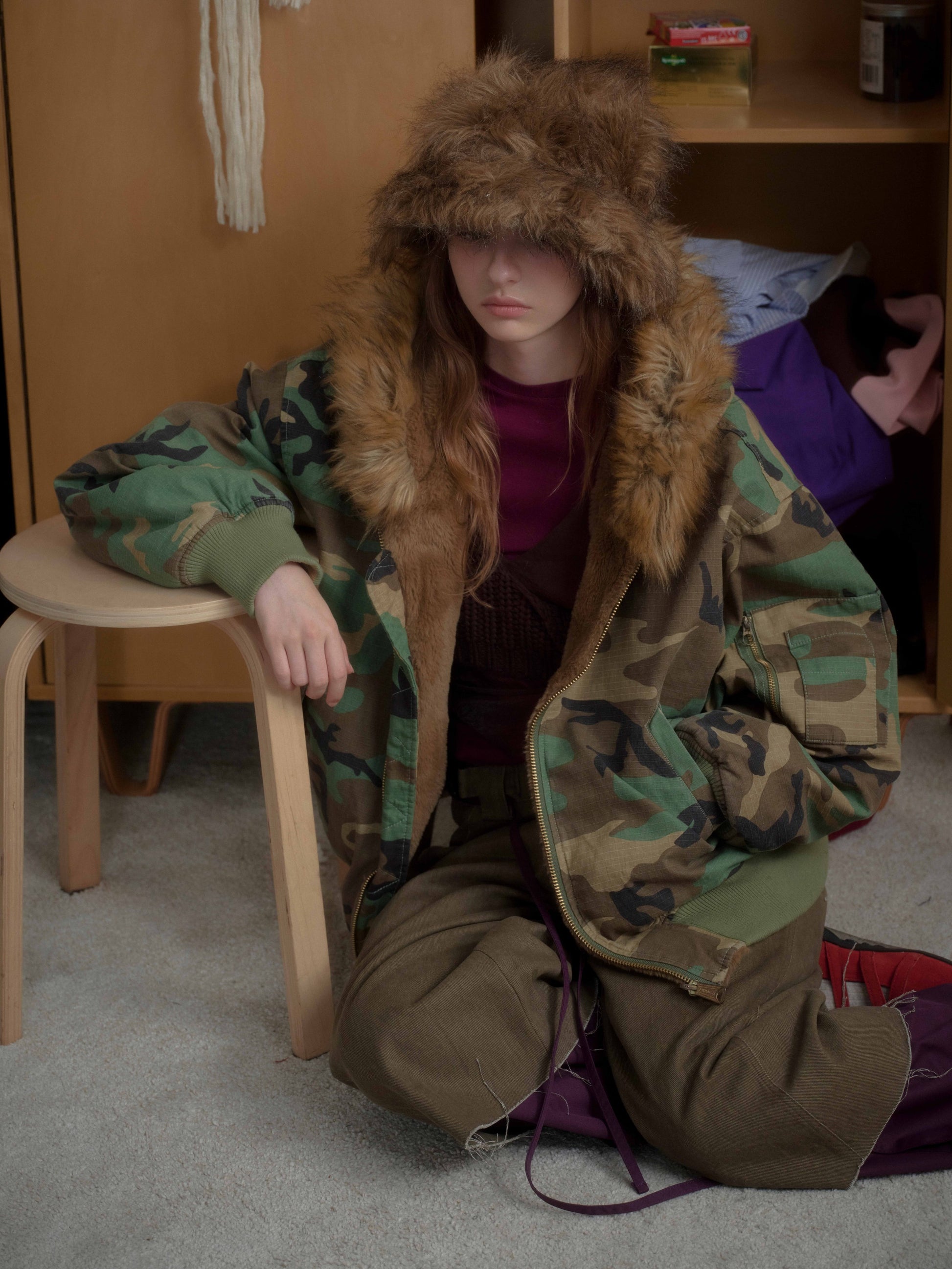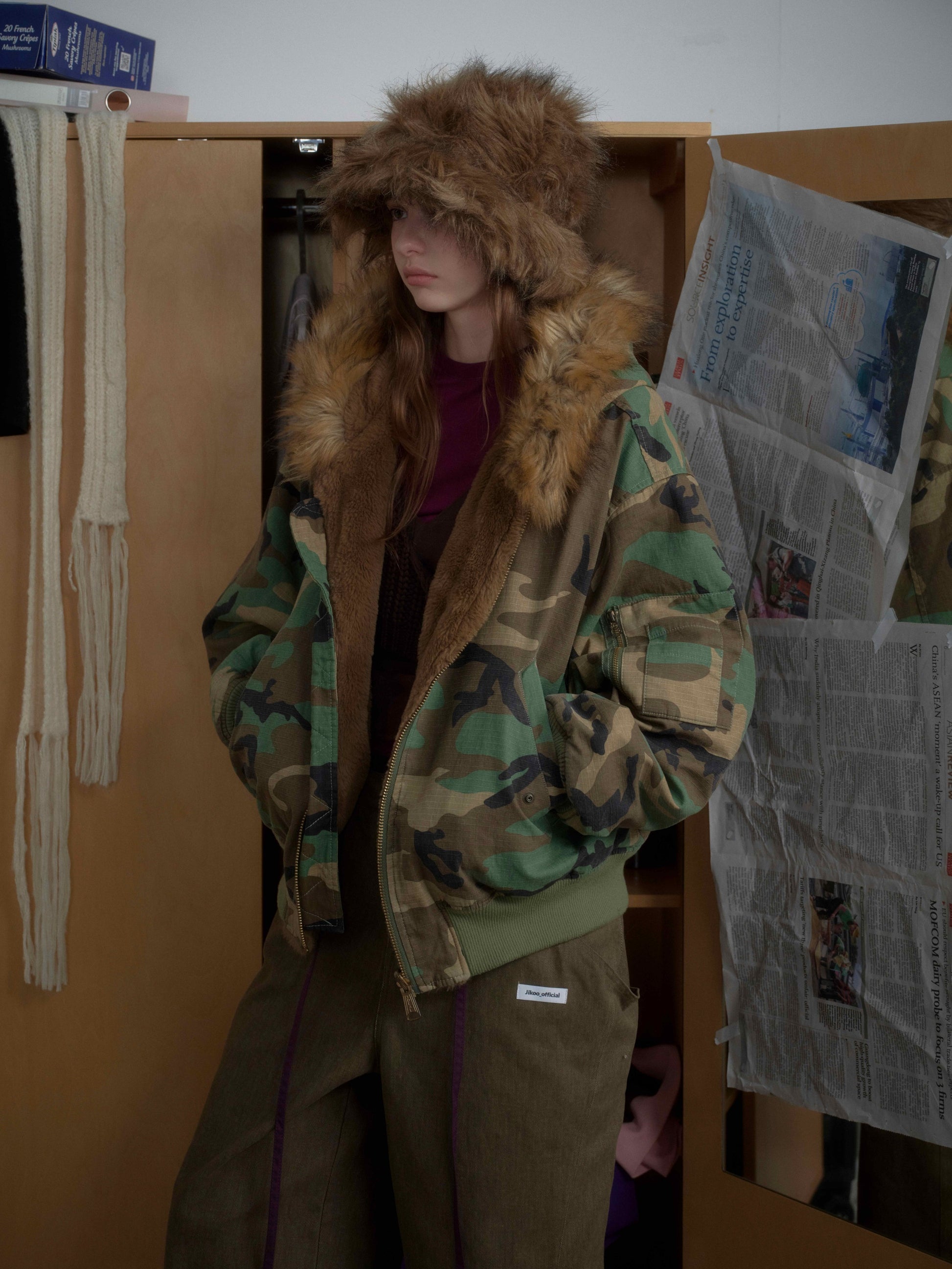 The Omirad Camo Faux-Fur Hooded Jacket brings a bold military aesthetic with a modern streetwear twist. Crafted from 100% cotton, the shell offers a structured and durable texture, while the plush faux-fur trim adds warmth and contrast. The detachable fur hood and ribbed hem design enhance both practicality and style — perfect for cold-weather layering.