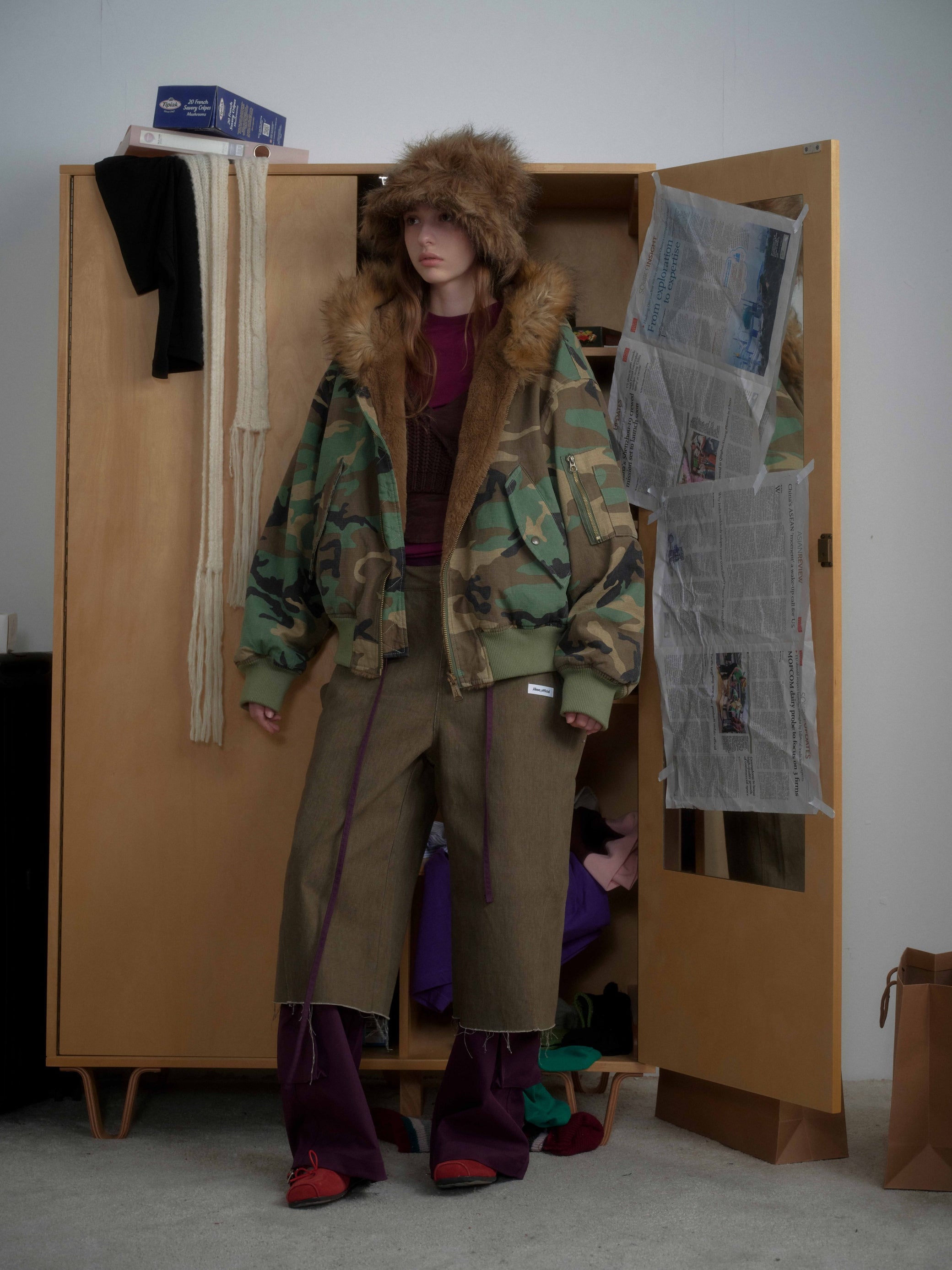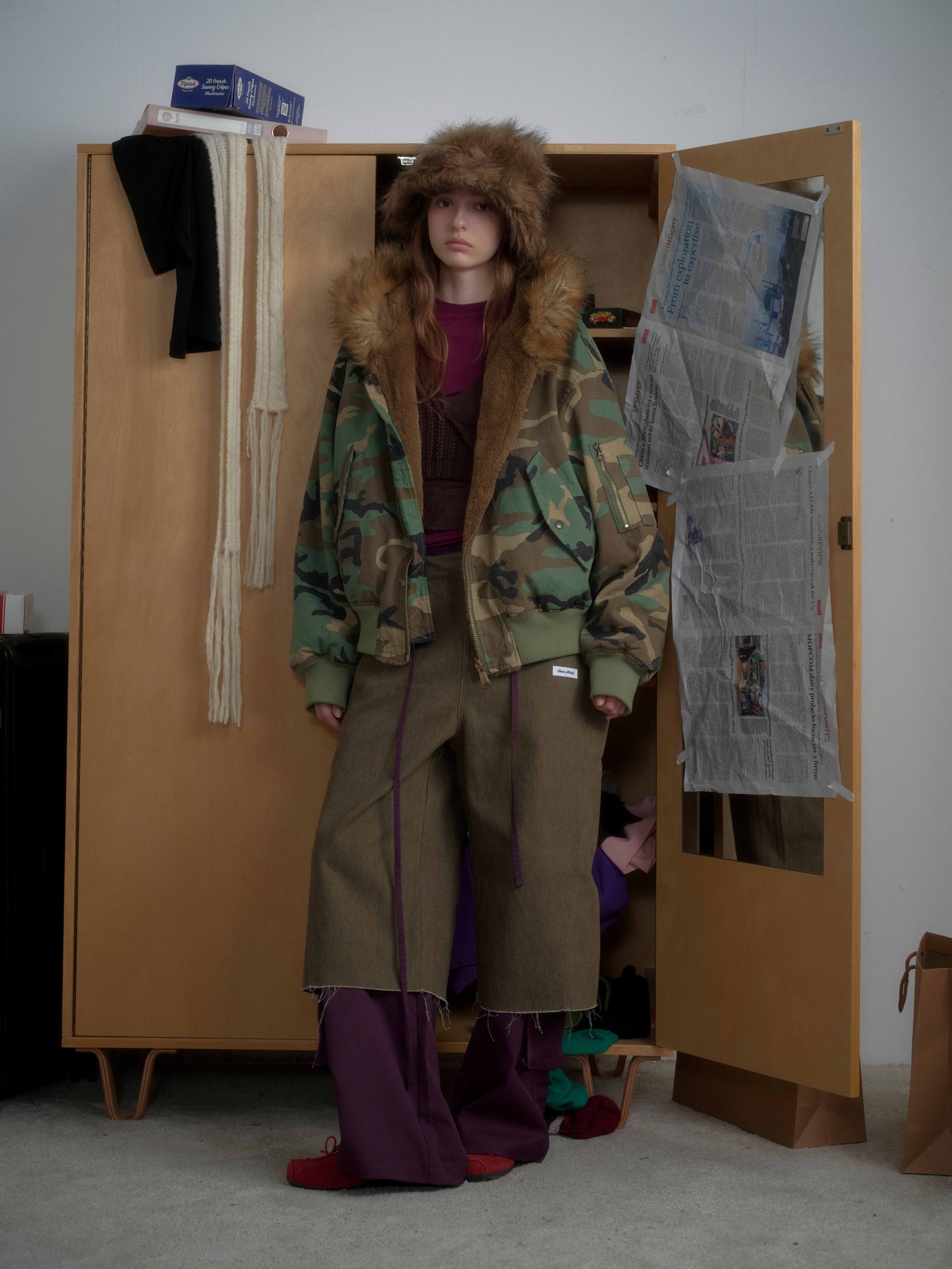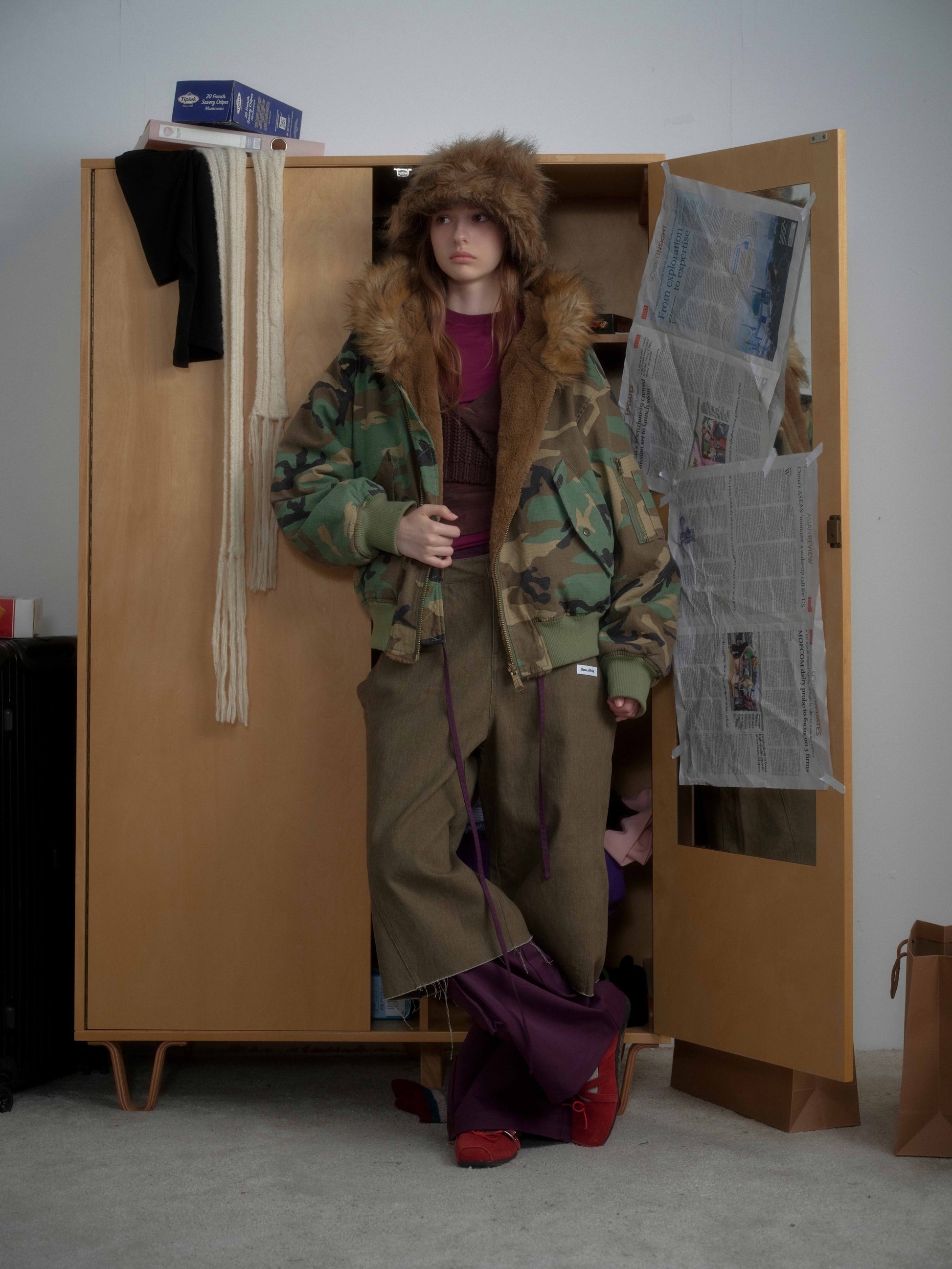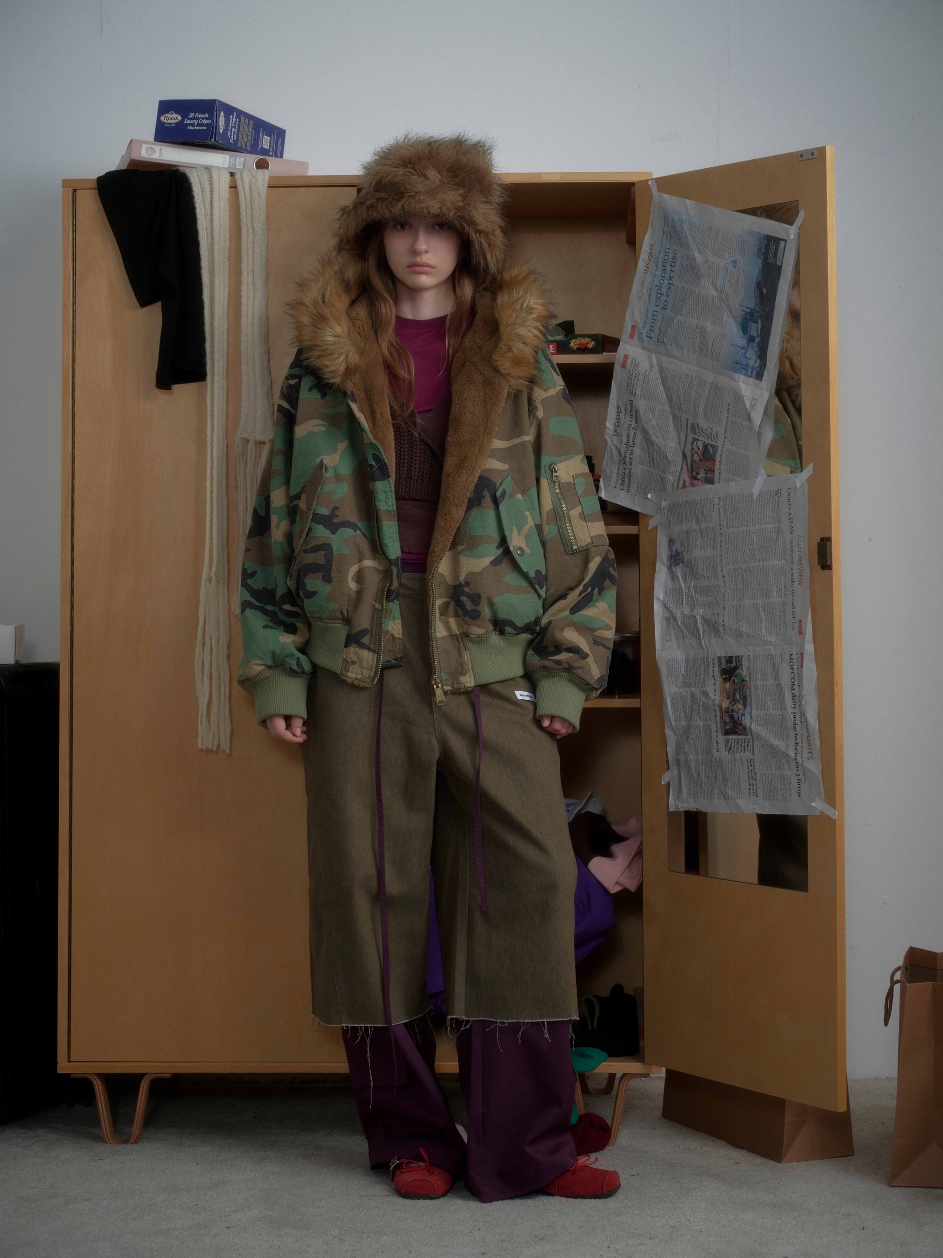 The Omirad Camo Faux-Fur Hooded Jacket brings a bold military aesthetic with a modern streetwear twist. Crafted from 100% cotton, the shell offers a structured and durable texture, while the plush faux-fur trim adds warmth and contrast. The detachable fur hood and ribbed hem design enhance both practicality and style — perfect for cold-weather layering.