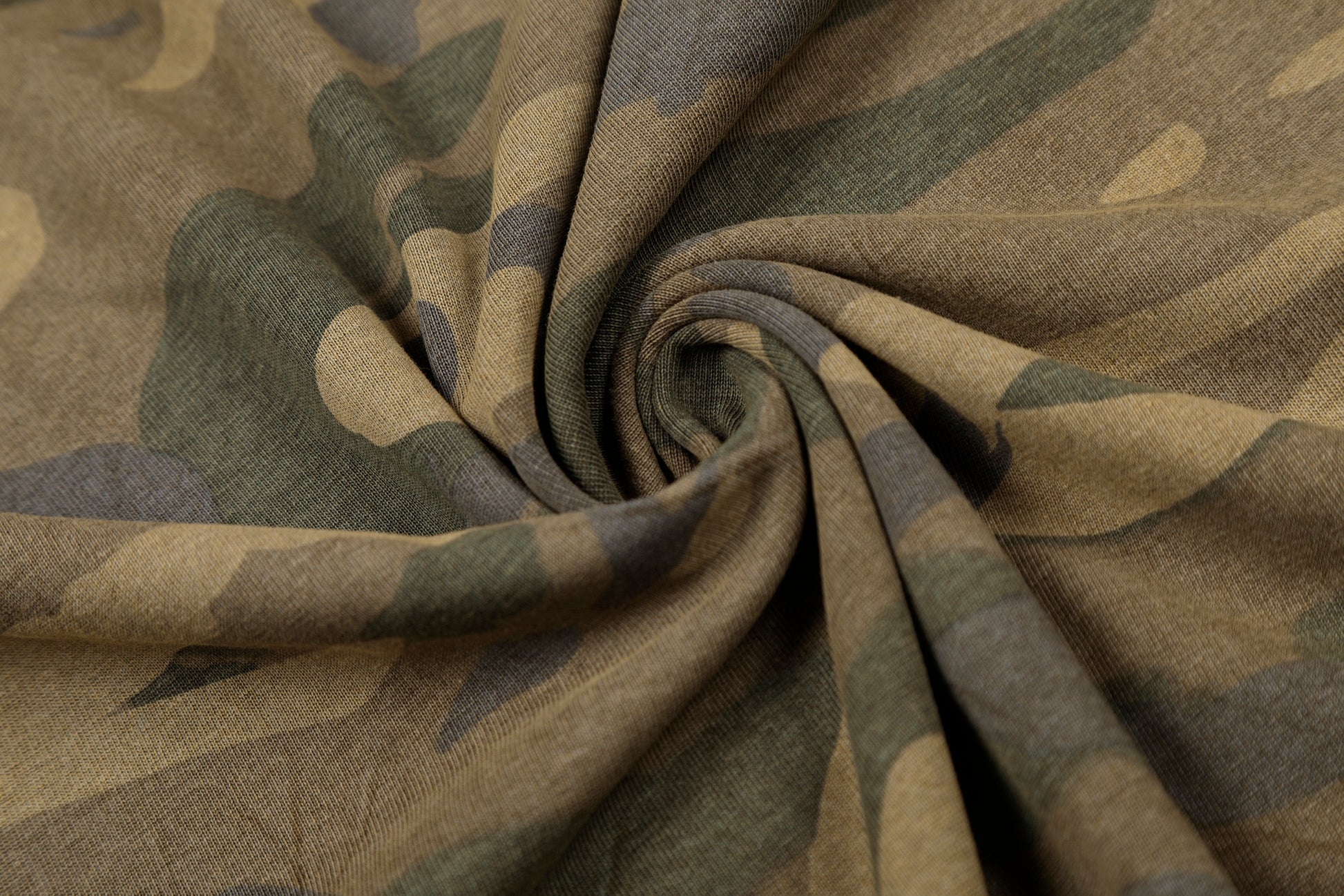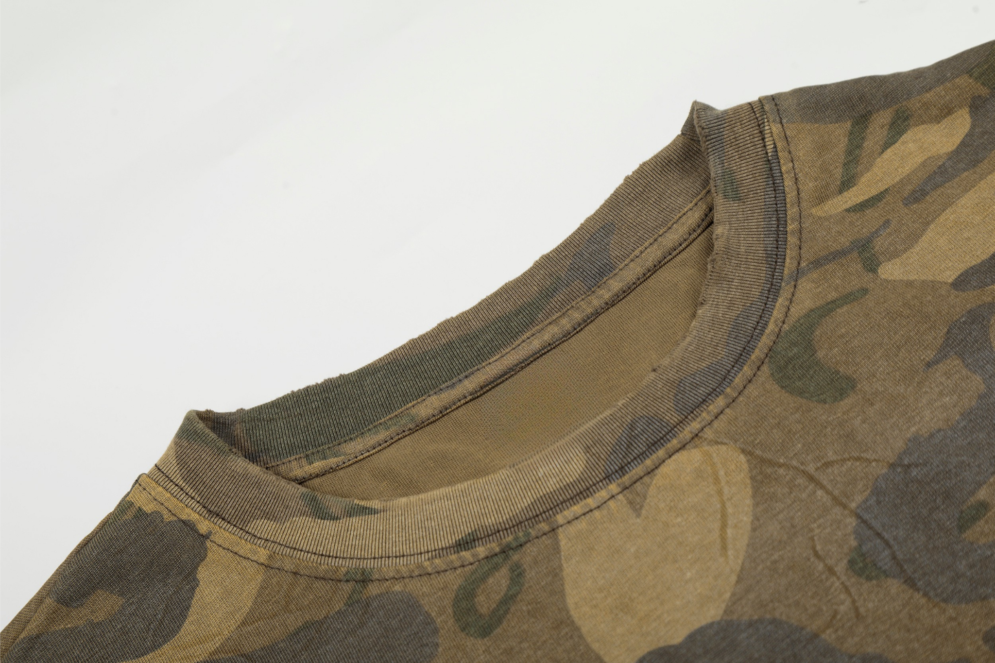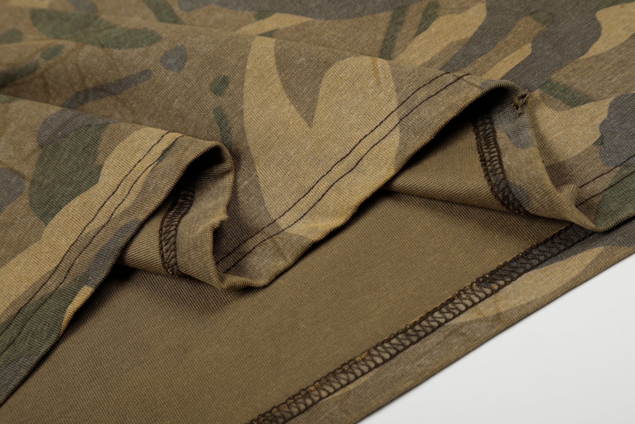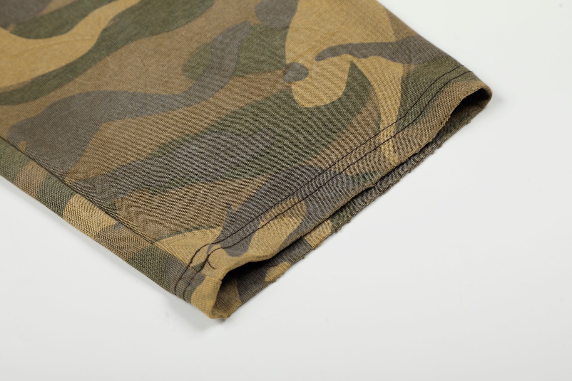 Clothing details: All-over camouflage pattern, front number graphic print, classic crew neckline, long sleeves, straight hem, relaxed fit.