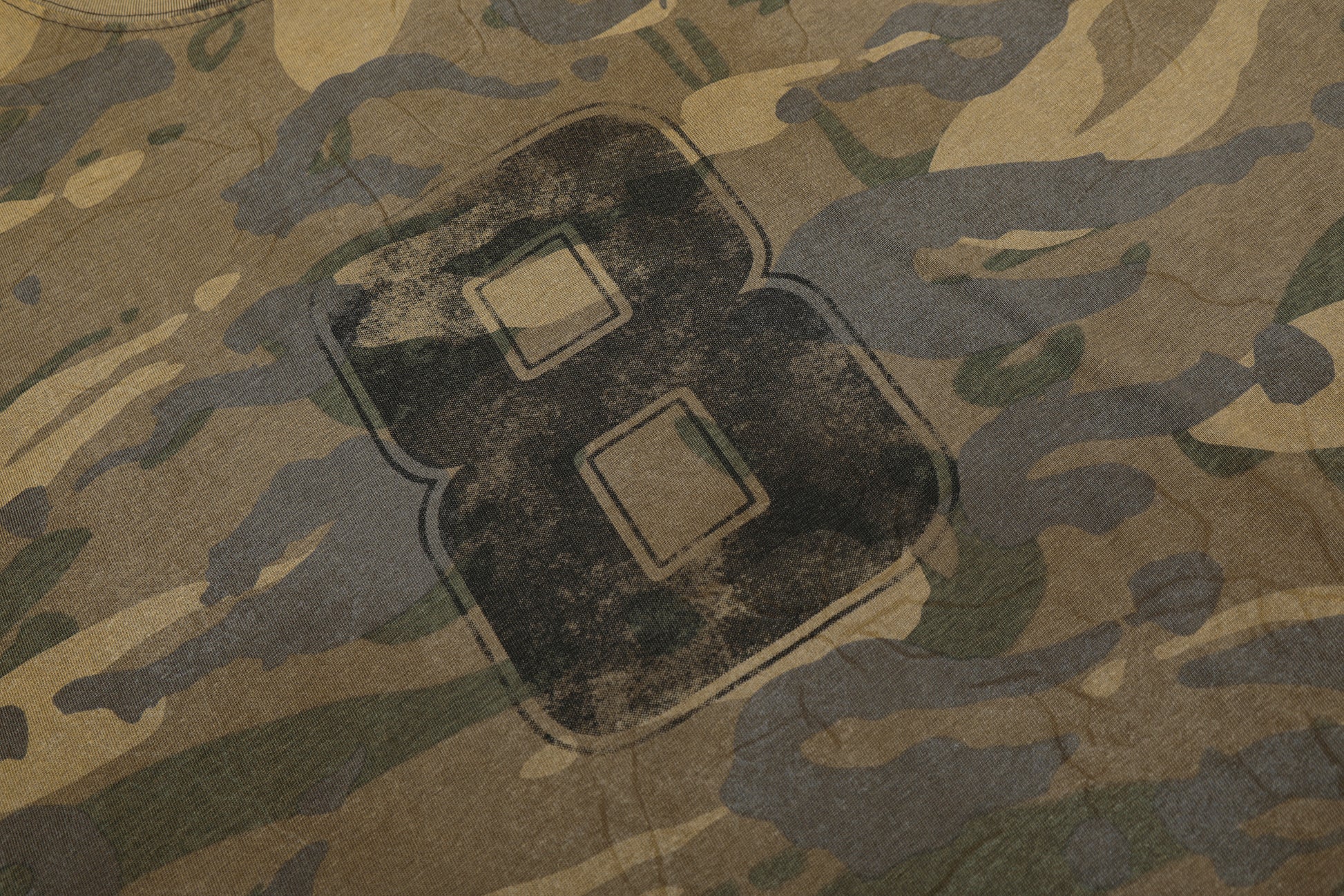 The Omirad Camo Graphic Long Sleeve Tee features an all-over camouflage cotton base with a faded front number print that adds a worn-in, military-inspired edge to a relaxed silhouette. Designed for everyday wear, this piece delivers effortless street style with a vintage feel.