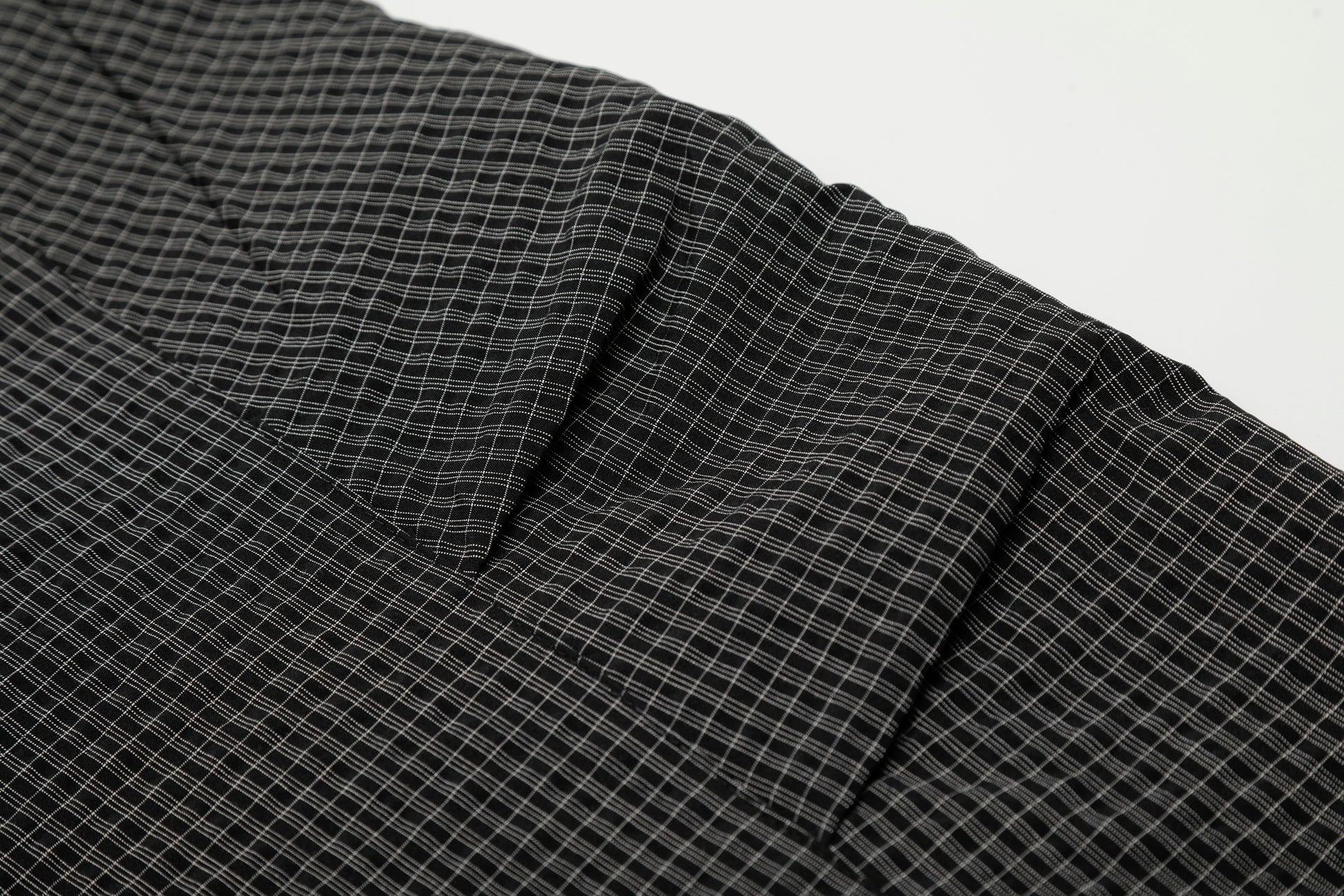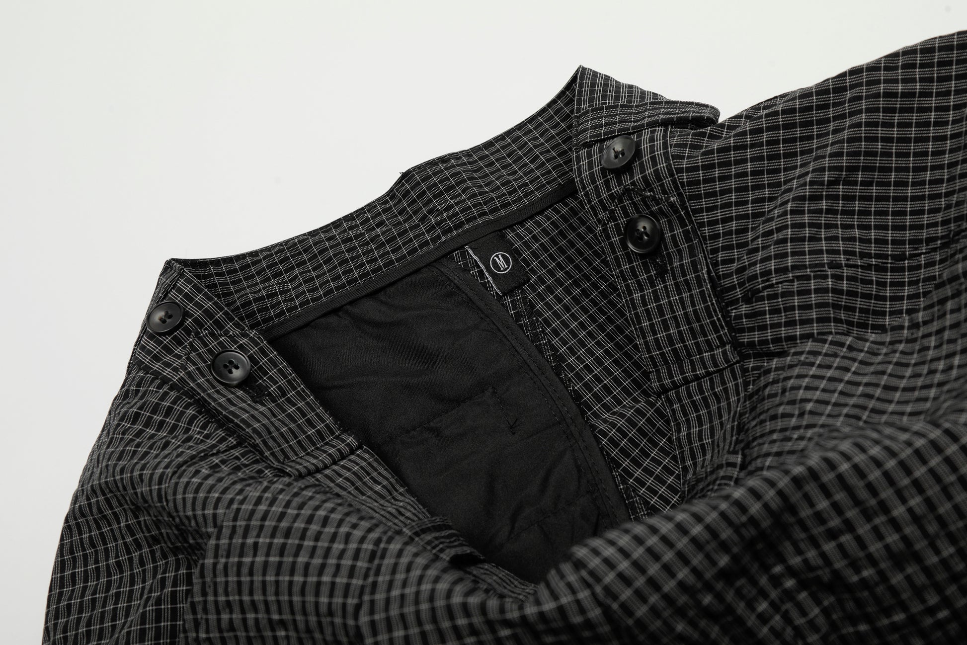 The Omirad Checked Curved-Leg Pants reinterpret classic tailoring with a modern oversized silhouette. Featuring subtle pleats at the waist and signature curved seams, the design blends streetwear ease with refined structure. The micro-check pattern adds a quiet sophistication, making it ideal for both casual and statement styling.