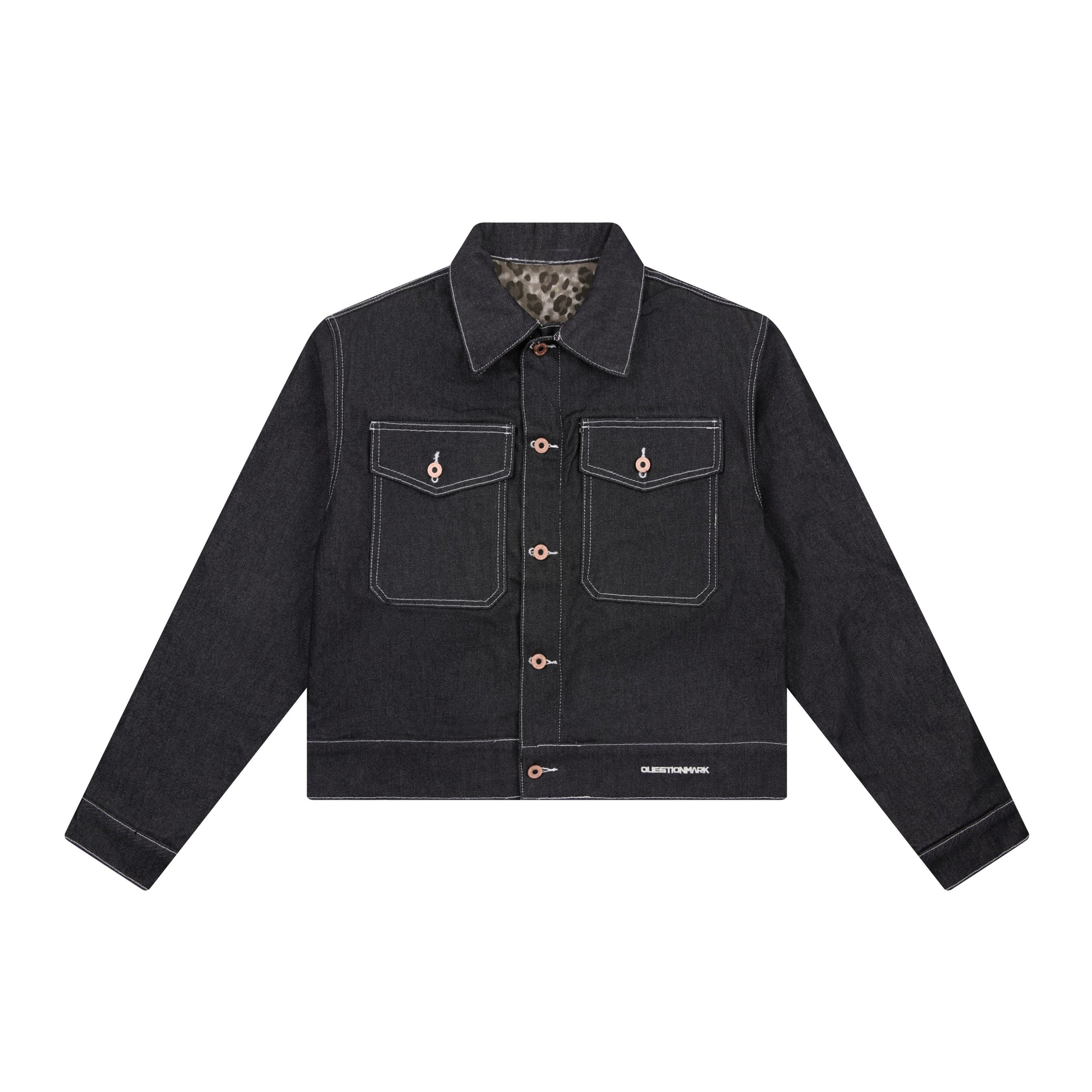 Contrast stitching highlights the sharp silhouette, while the dual flap chest pockets add a functional, workwear-inspired touch. A subtle leopard-print inner lining gives the piece an unexpected twist, making it both versatile and distinctive for layering across seasons.