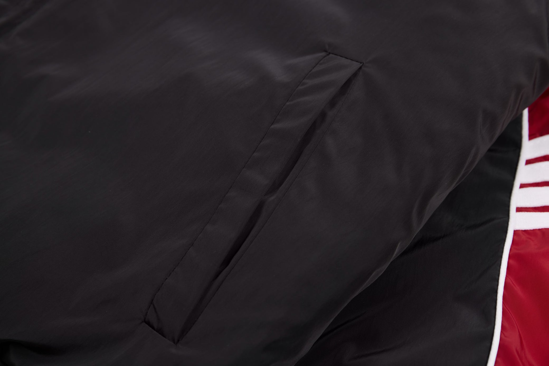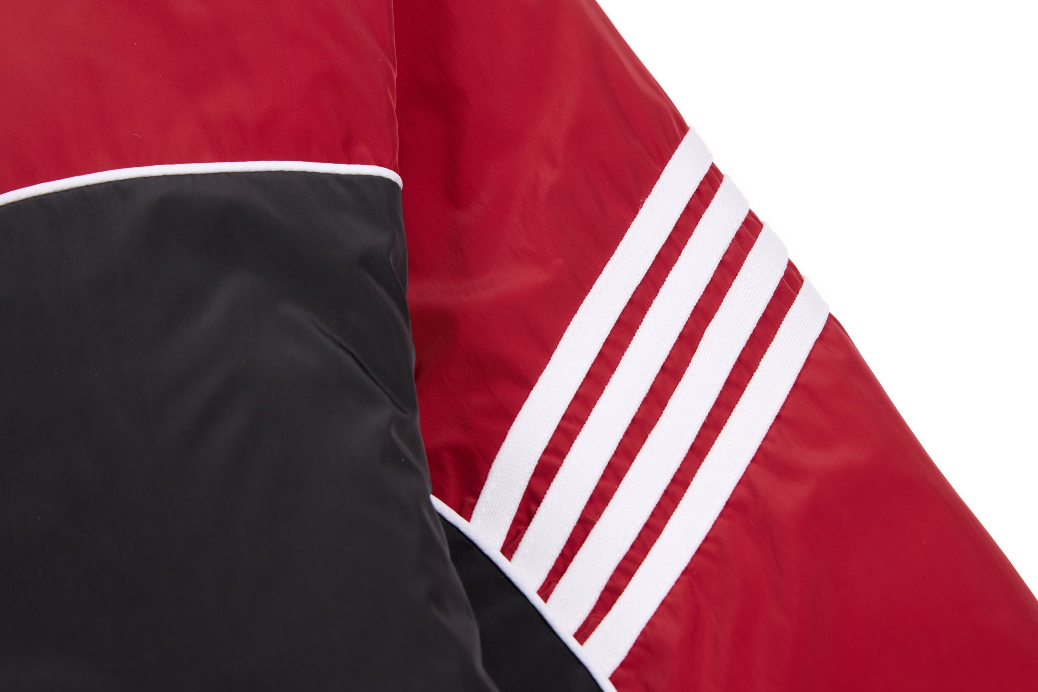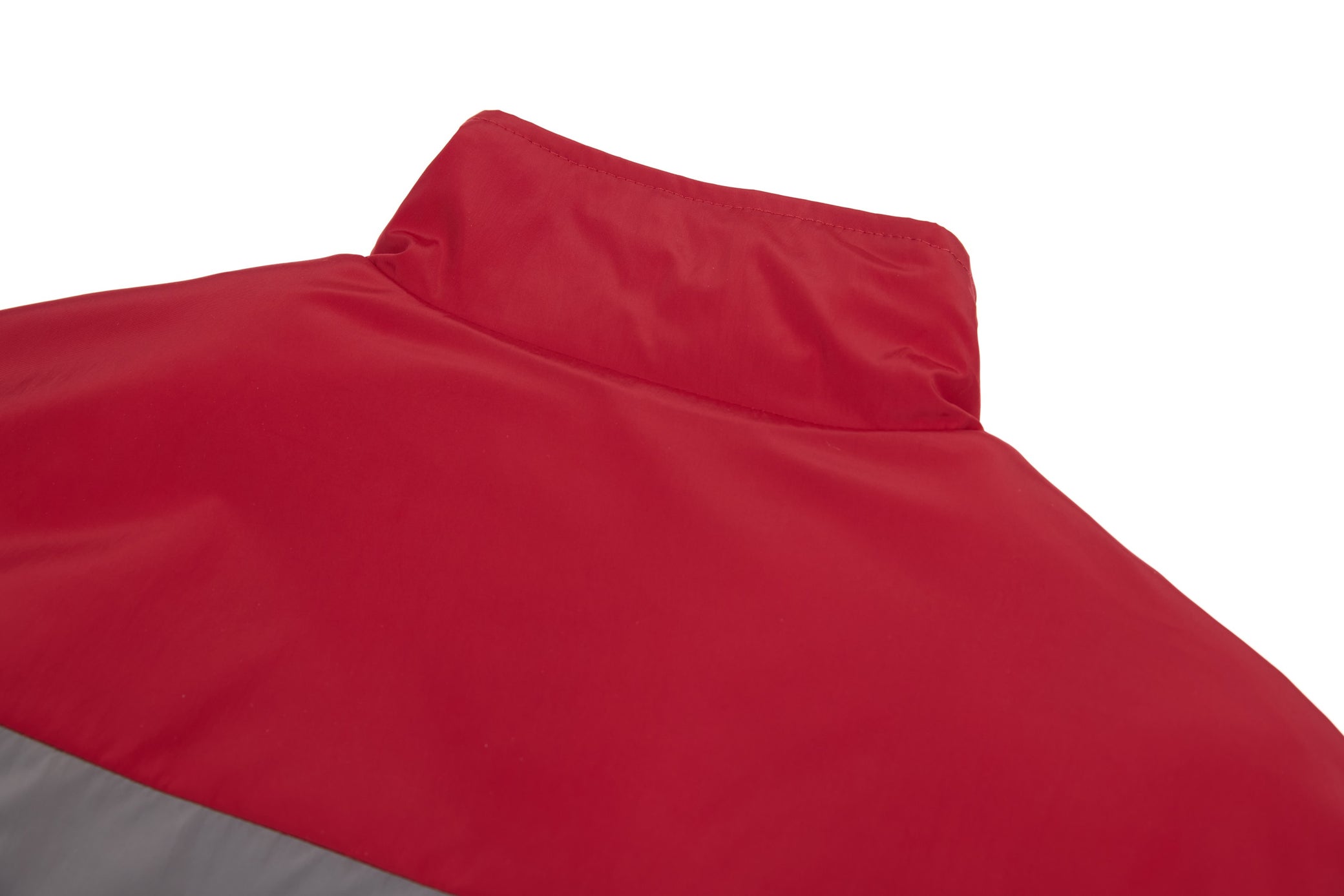 Clothing details: Colorblock construction, contrast stripe detailing on sleeves, stand collar design, full zip front closure, elasticated cuffs and hem, side hand pockets, relaxed athletic fit.