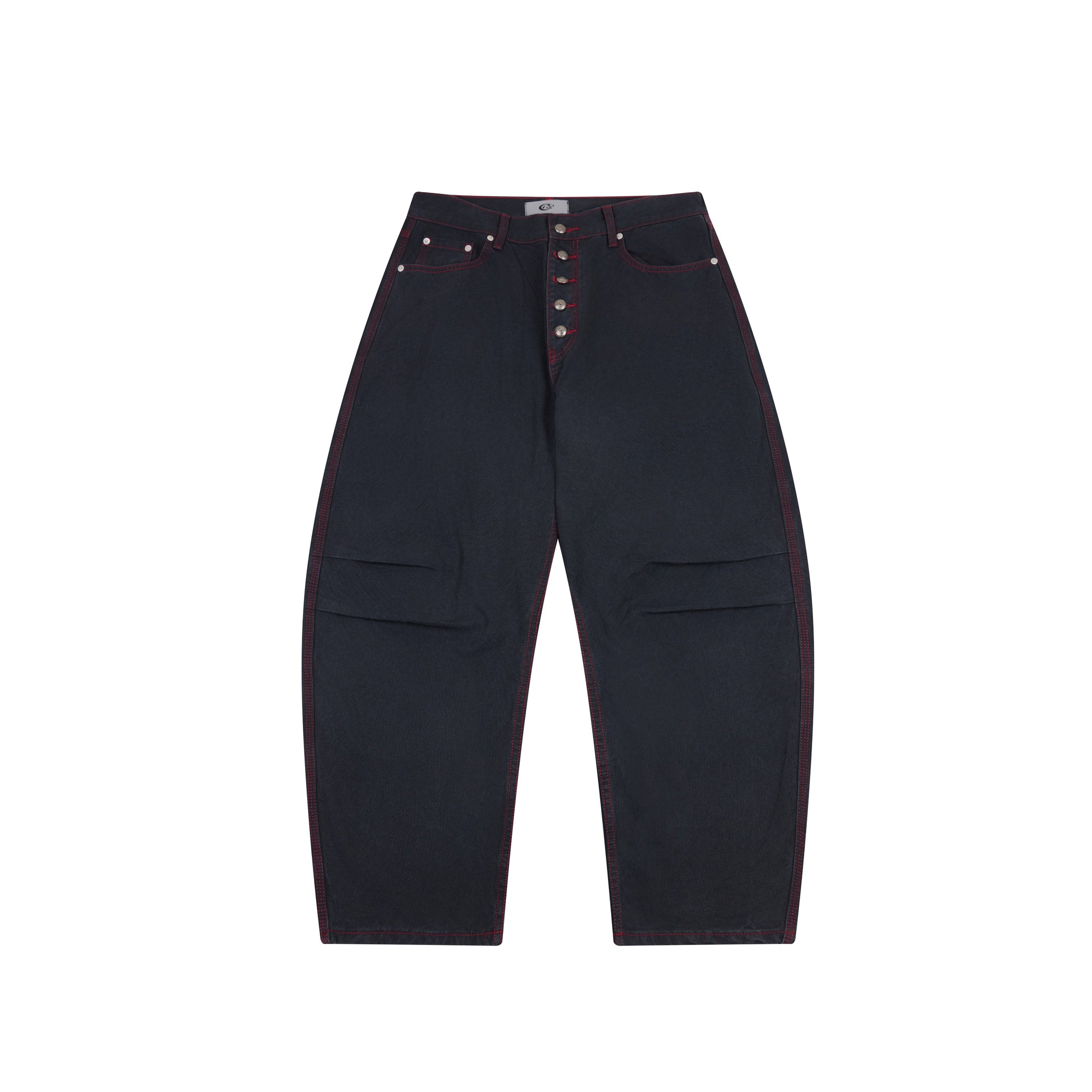 The Omirad Contrast-Stitch Barrel Denim Pants bring a modern silhouette to classic denim with their wide, curved leg design and bold contrast stitching. Crafted from 100% cotton, these pants offer a durable, heavyweight feel that gradually softens with wear.