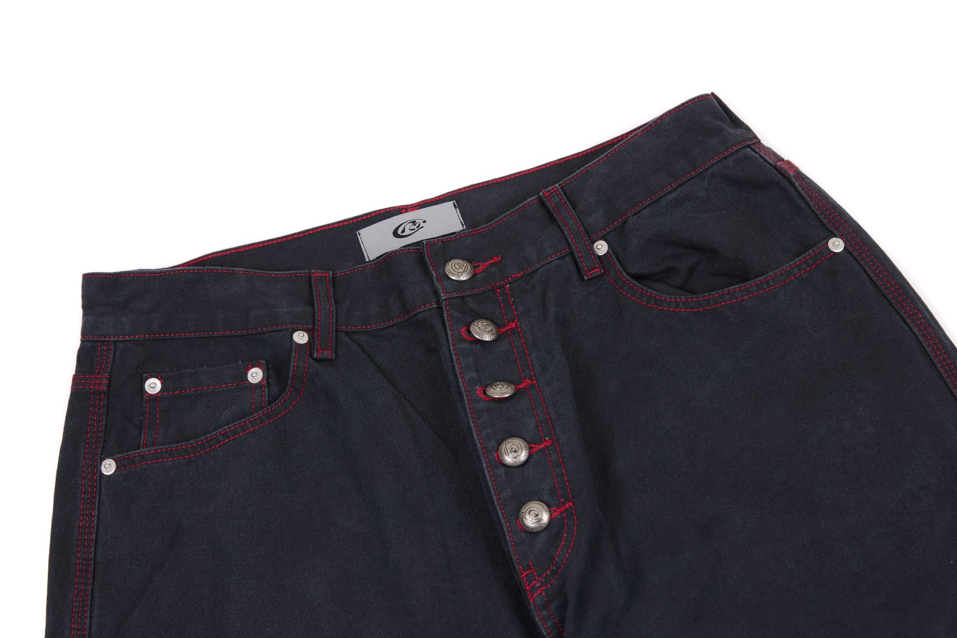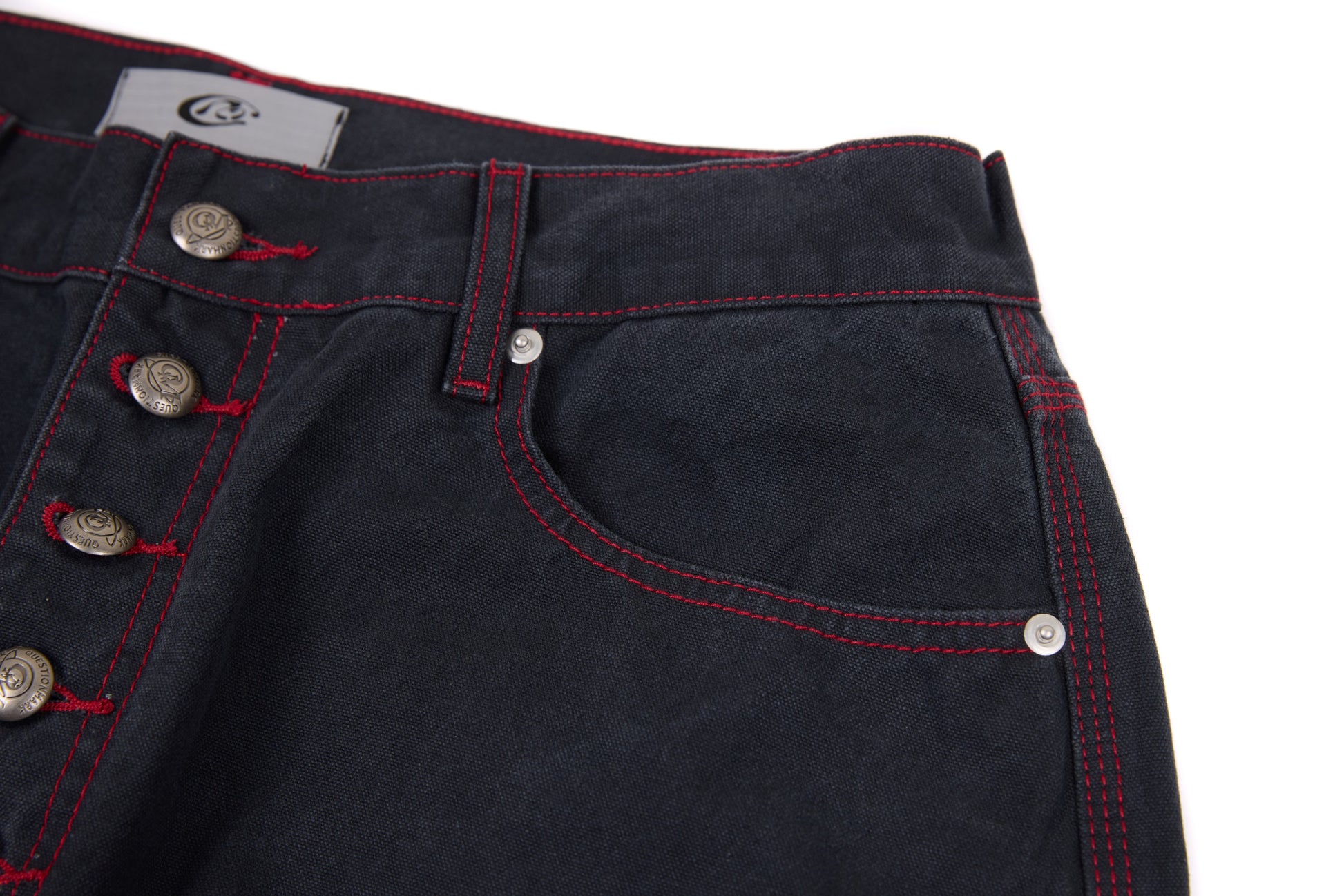 The button-fly closure adds a vintage touch, while the articulated knee panels provide subtle structure and a unique look. Designed for everyday comfort with a distinctive streetwear edge.