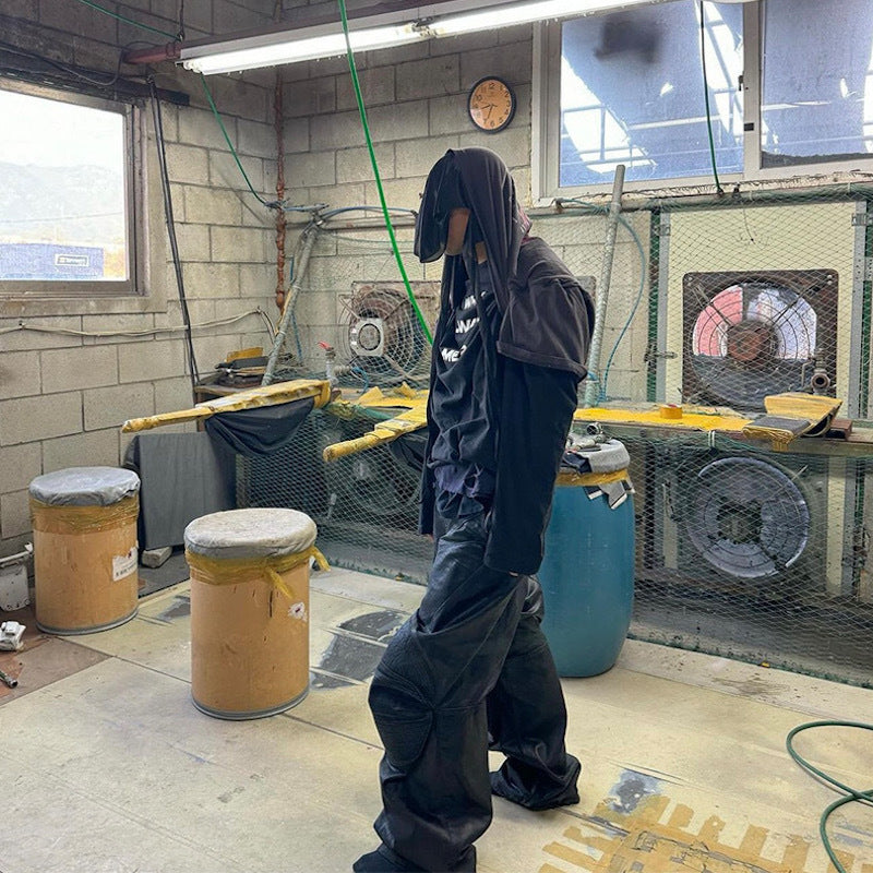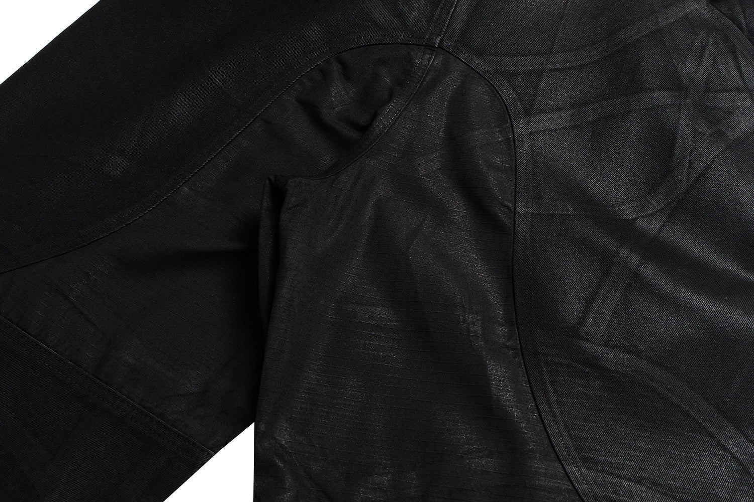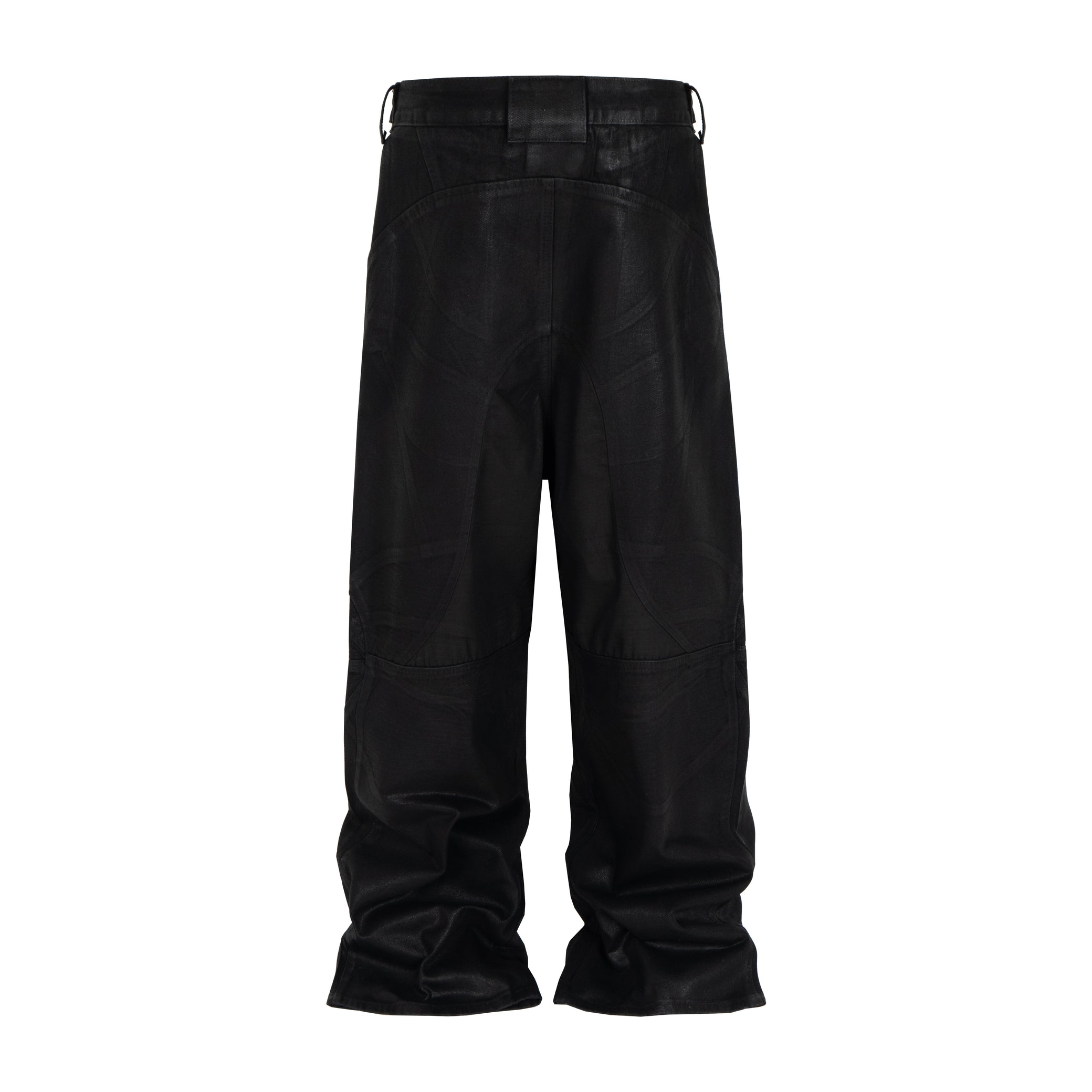 The Omirad Curved-Stitch Leather Denim Pants blend bold streetwear design with a structured denim foundation. Made from 100% cotton with a special leather-effect finish, these pants feature signature curved seam lines that contour the leg and create a dimensional shape. Metal belt adjusters on the waist add a utility edge, while the stacked leg opening enhances the modern oversized silhouette.