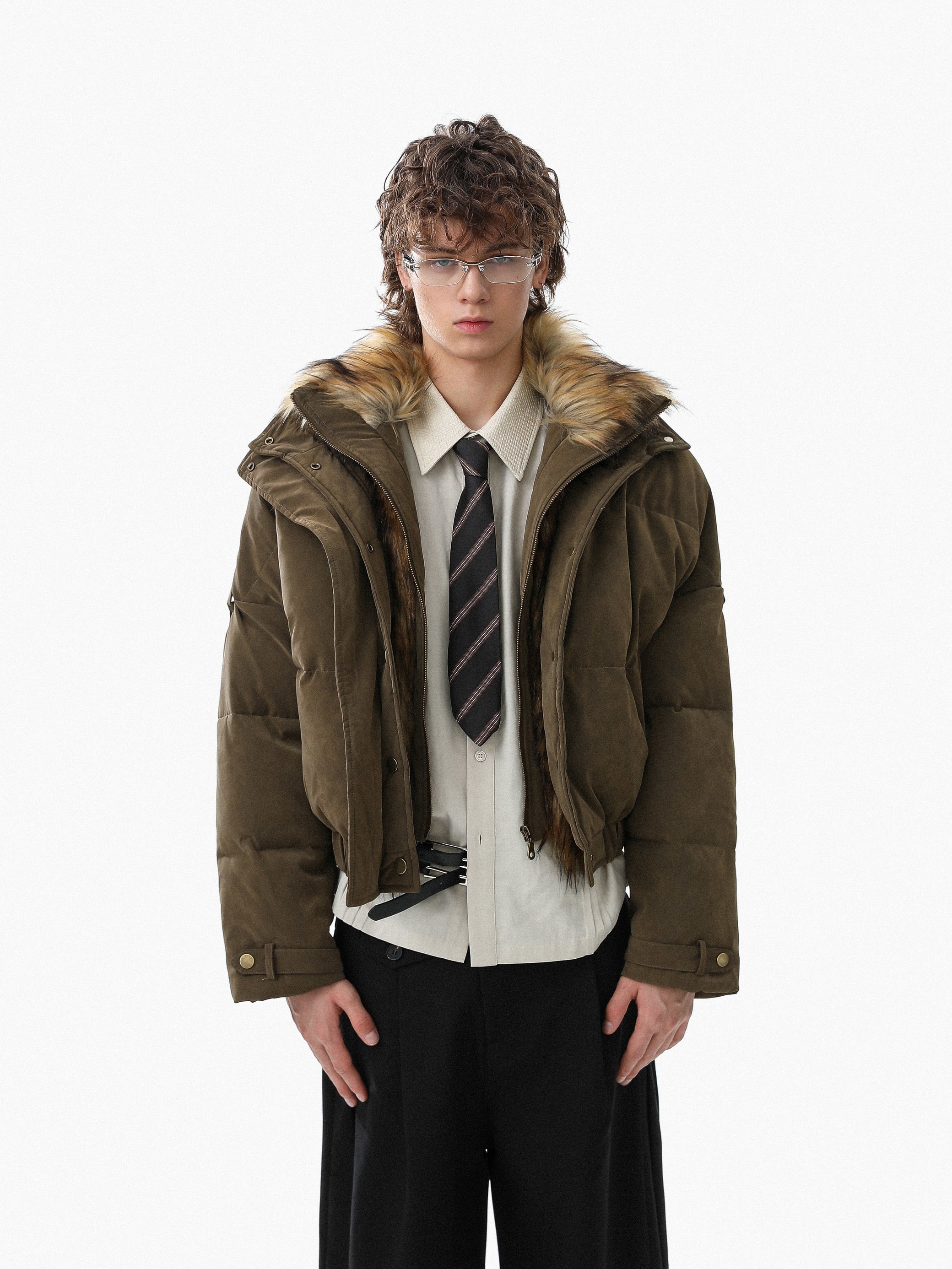 Omirad Detachable Faux Fur PU Puffer Jacket