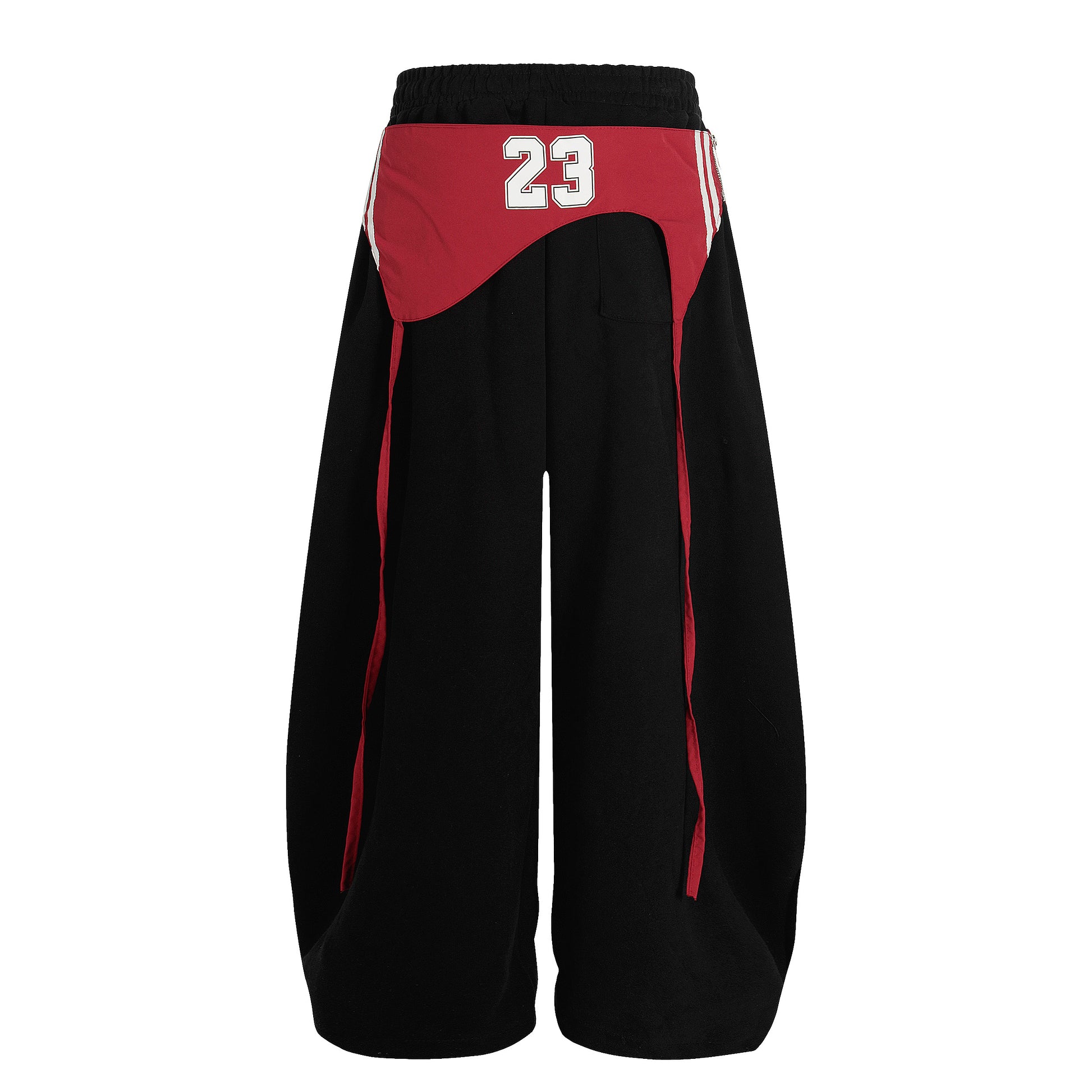 The Omirad Double-Waist Retro Print Track Pants fuse vintage athletic aesthetics with bold streetwear energy. Featuring a layered double-waist design with contrast color panels and varsity-style lettering, these pants deliver a standout silhouette inspired by early 2000s sports culture. The wide curved-leg cut and adjustable hems add volume and movement — crafted for those who play by their own rules.