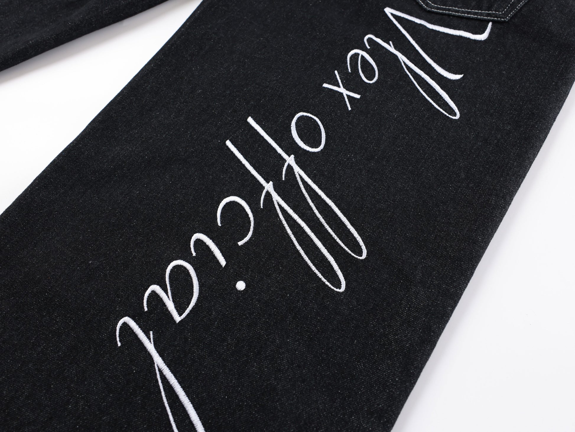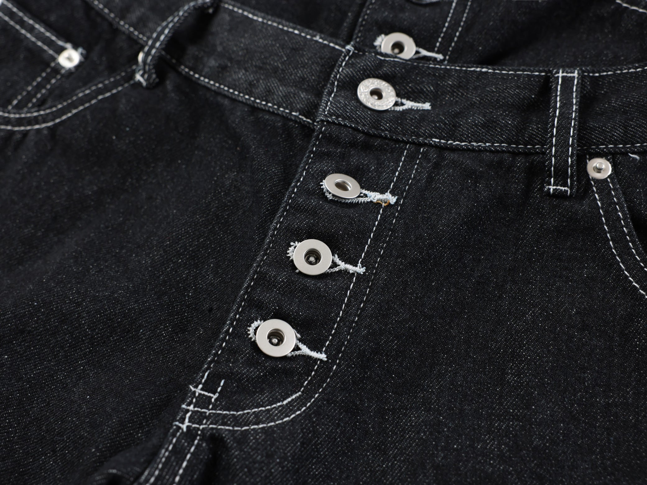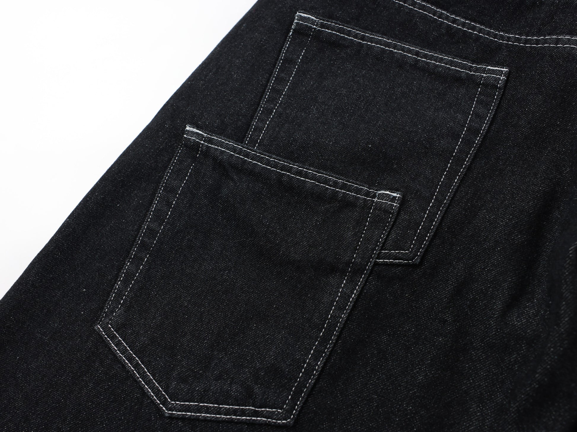 The Omirad Double-Waist Utility Denim Pants feature a layered waistband construction paired with exposed button detailing for a bold, architectural take on classic denim. Designed with contrast stitching, reinforced paneling, and oversized pockets, these pants deliver a rugged industrial aesthetic with modern streetwear attitude. Finished with a wide-leg silhouette and subtle script graphic at the back, they bring statement structure to everyday fits.