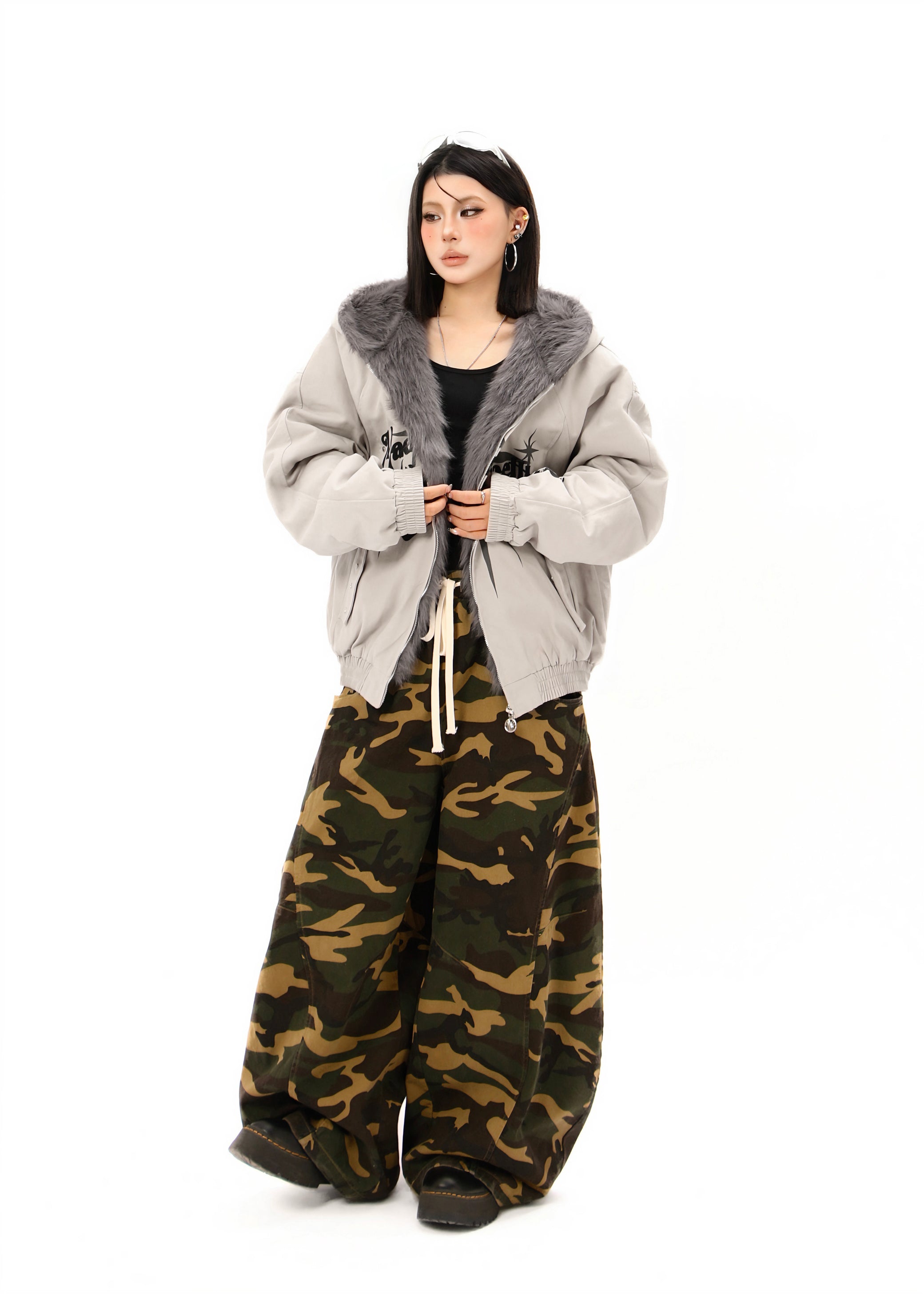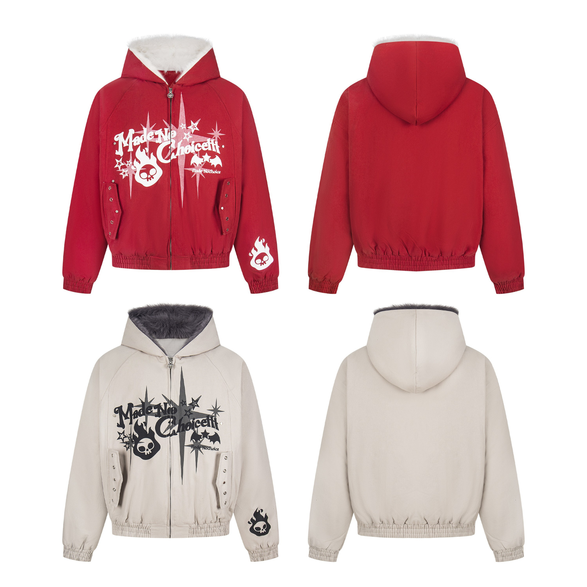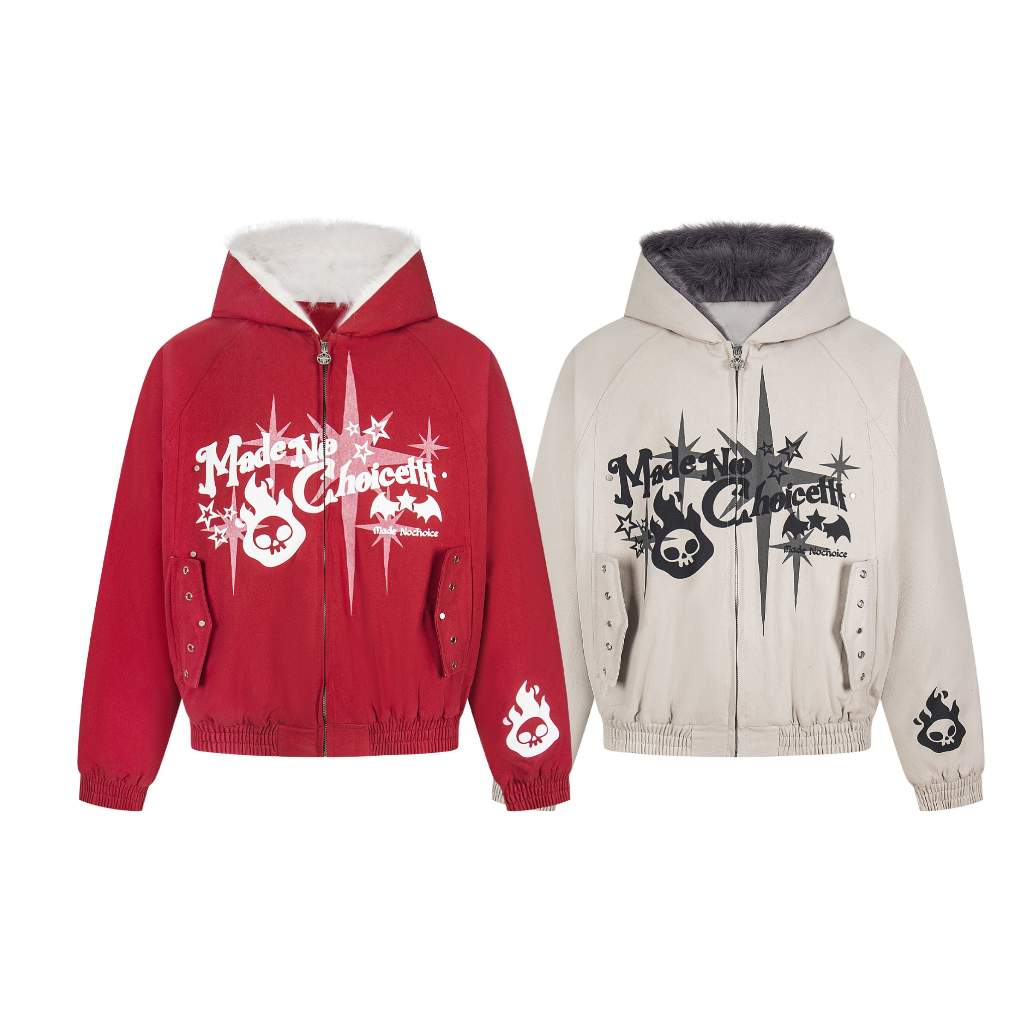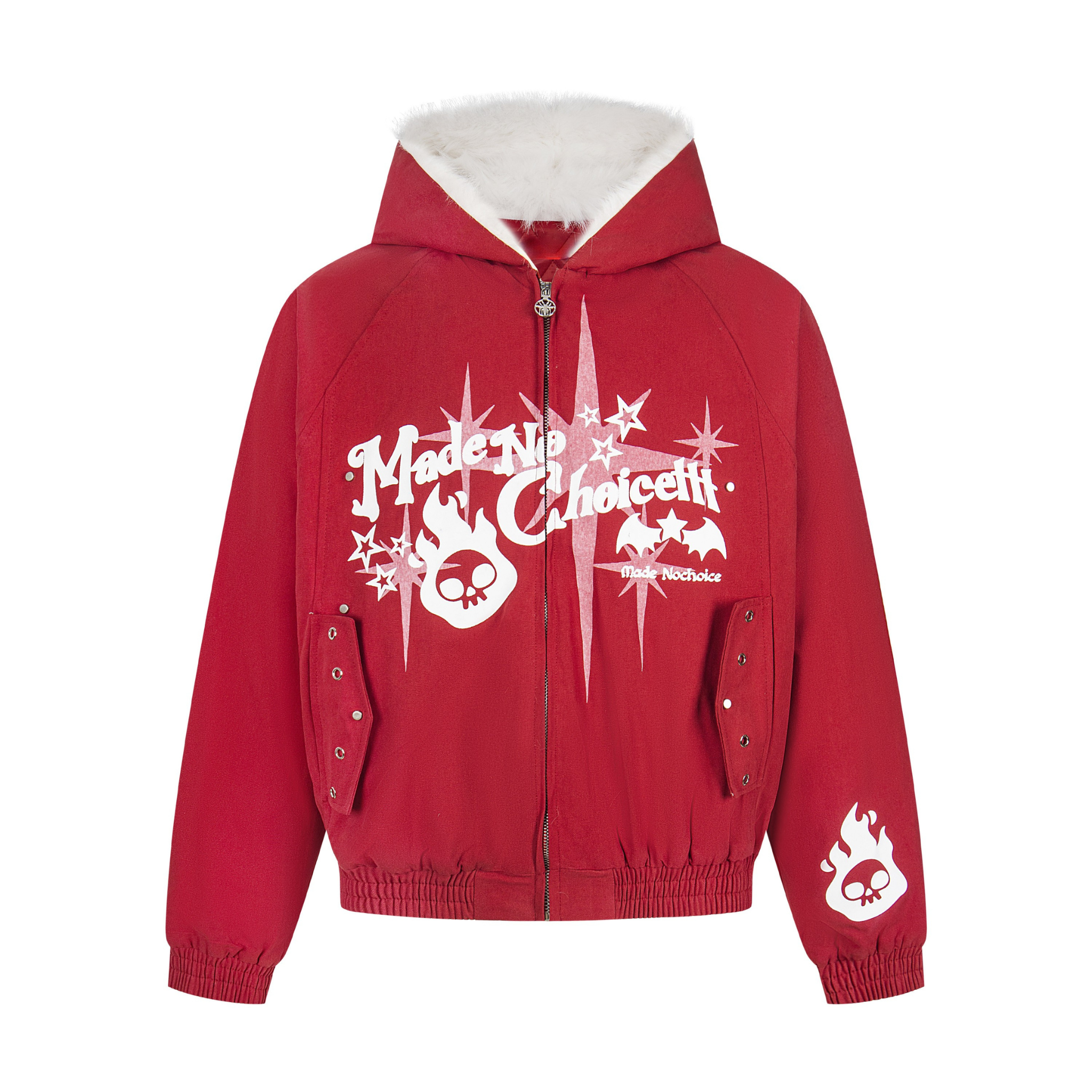 The Omirad Faux Fur Collar Quilted Jacket combines warmth and attitude in one standout streetwear piece. Crafted from 100% cotton with a thick quilted lining, it features a detachable faux fur collar and bold front graphics for a statement look. The cropped bomber silhouette and stud detailing on the pockets add a rebellious edge, while the dual color options let you switch up your winter aesthetic. Designed for those who bring street energy to cold-weather fits.