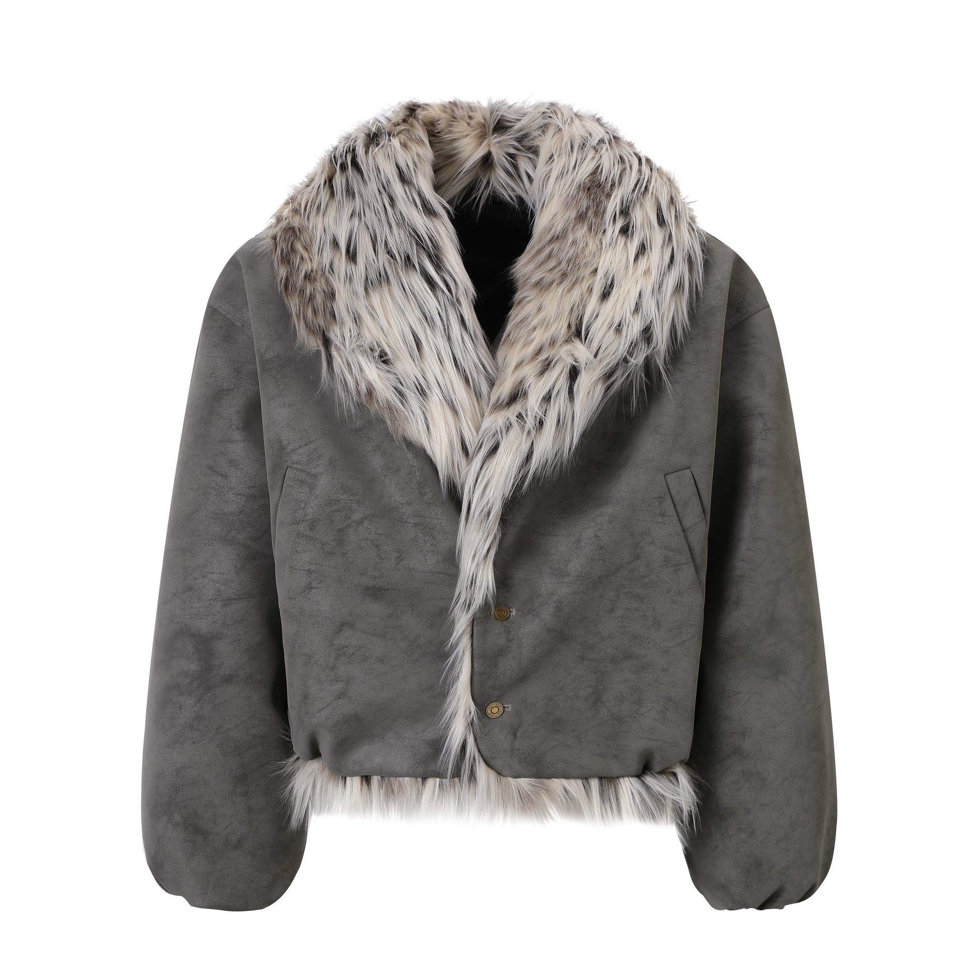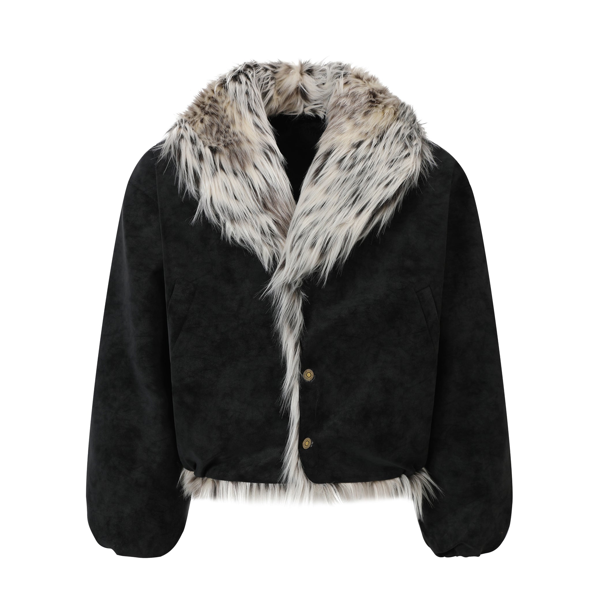 The Omirad Faux-Fur Collar Winter Jacket elevates cold-season style with a dramatic oversized fur collar and a plush suede-touch shell. Designed for standout streetwear layering, this jacket features a wide, structured silhouette, a soft brushed finish, and dense faux-fur trim that delivers both warmth and attitude. The premium PU-poly blend creates a rich, velvety handfeel while keeping the piece lightweight and durable for everyday wear.